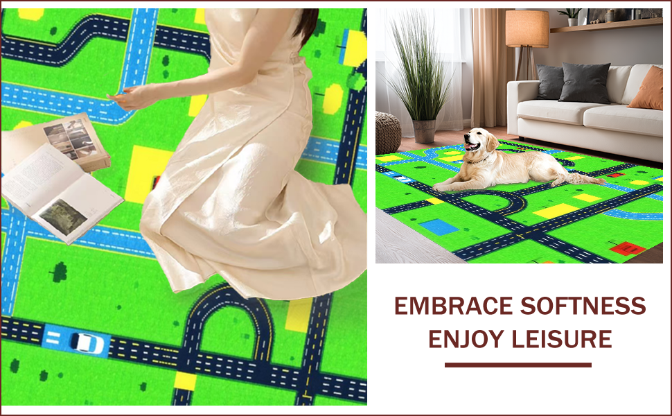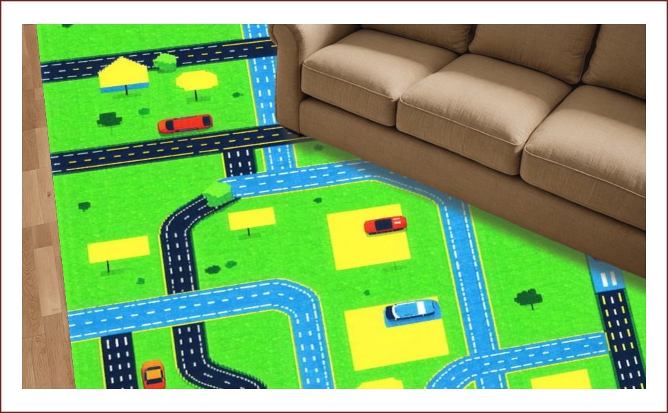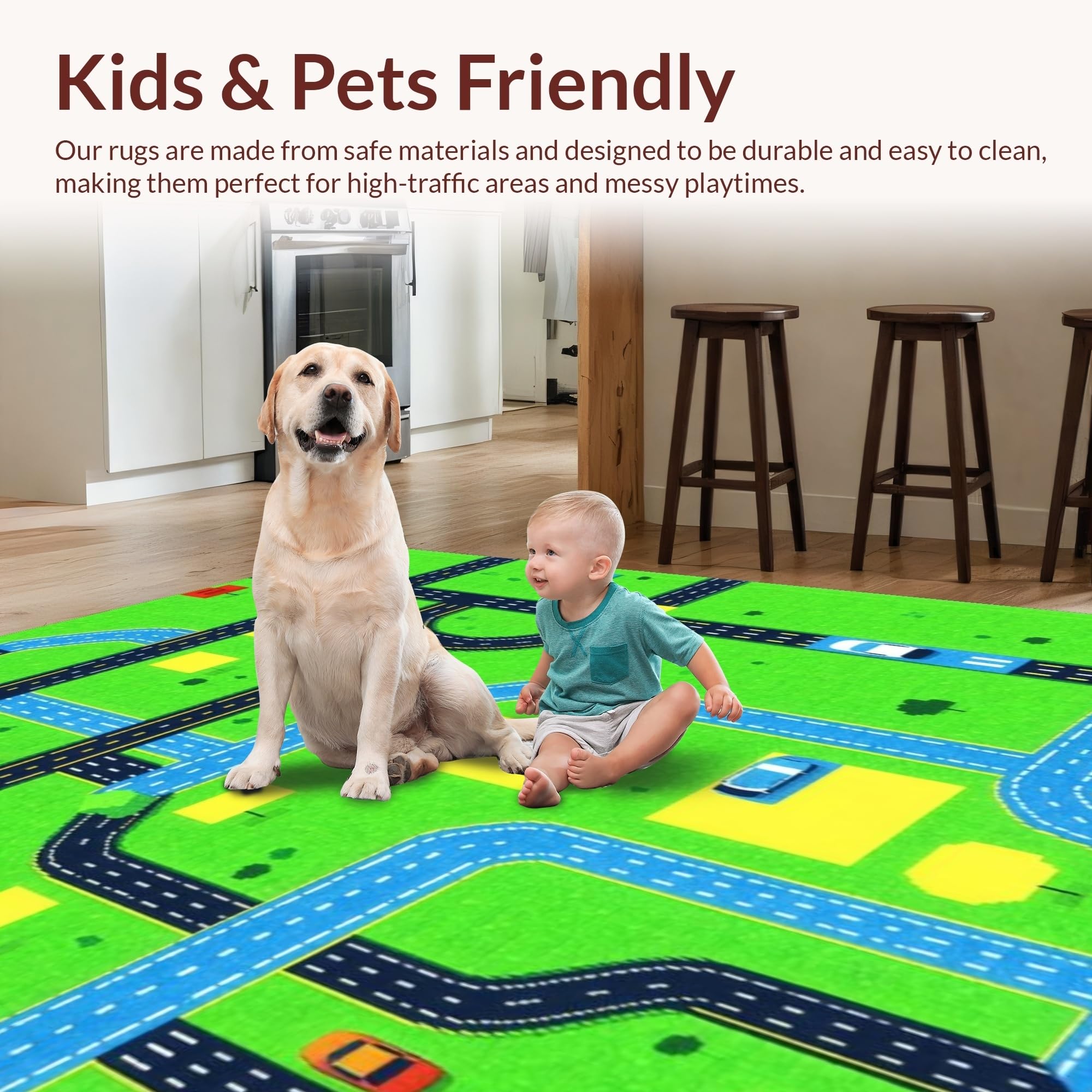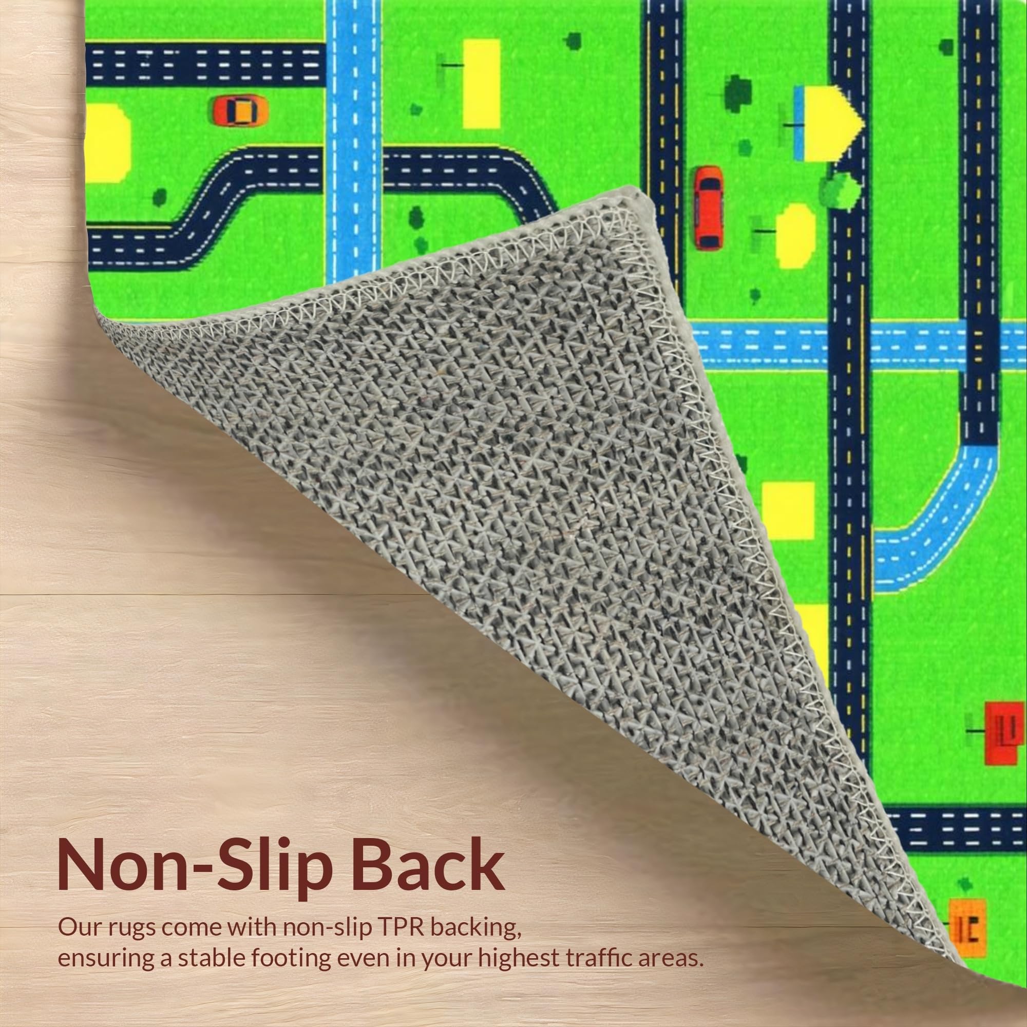 Ultra Soft Area Rug, Non Slip, Stain Resistant, Washable Area Rugs for Living Room, Bedroom, Dynamic Urban Traffic Scene Design(Green) Overview: