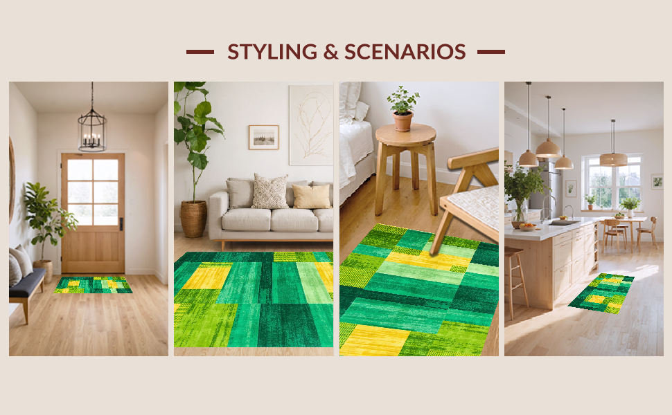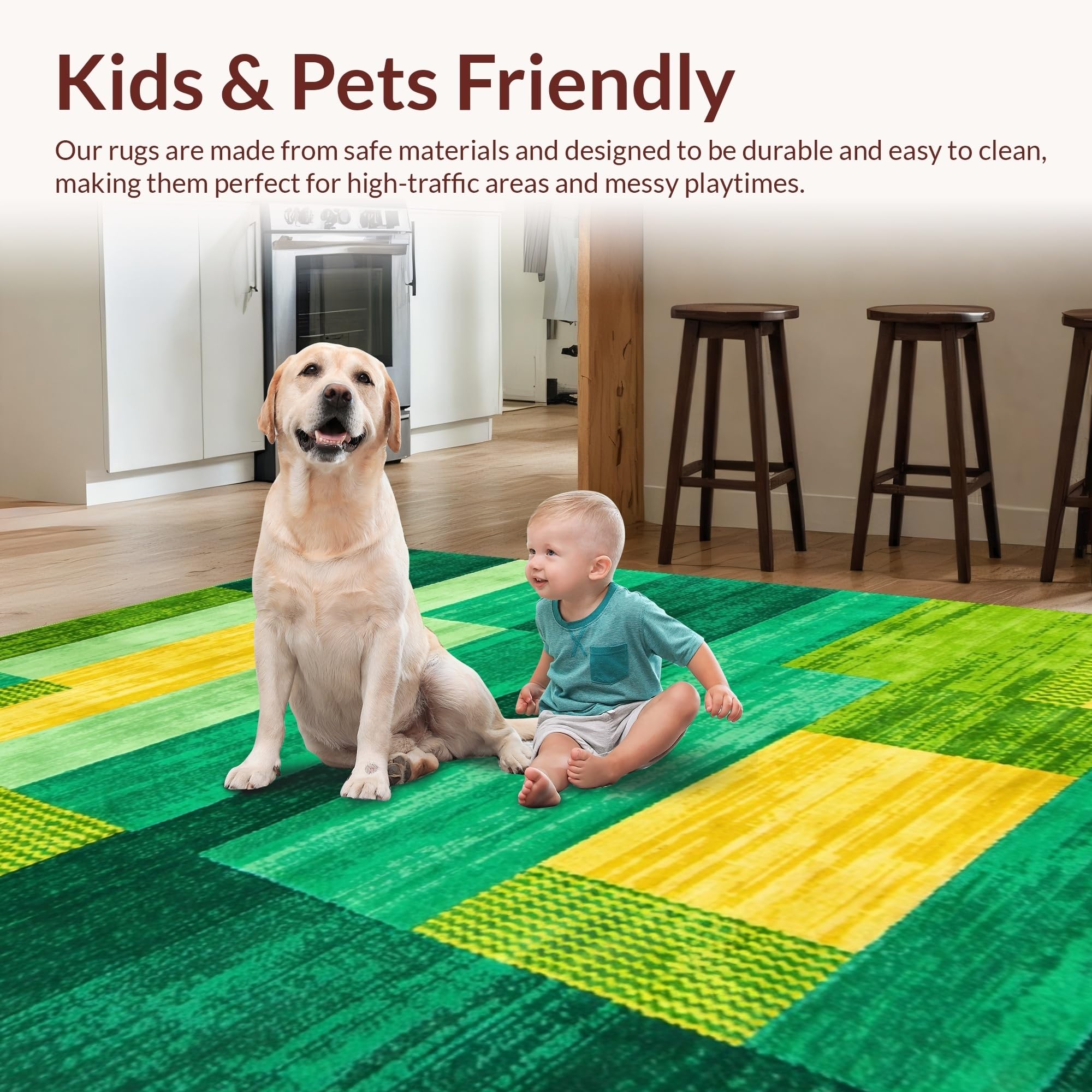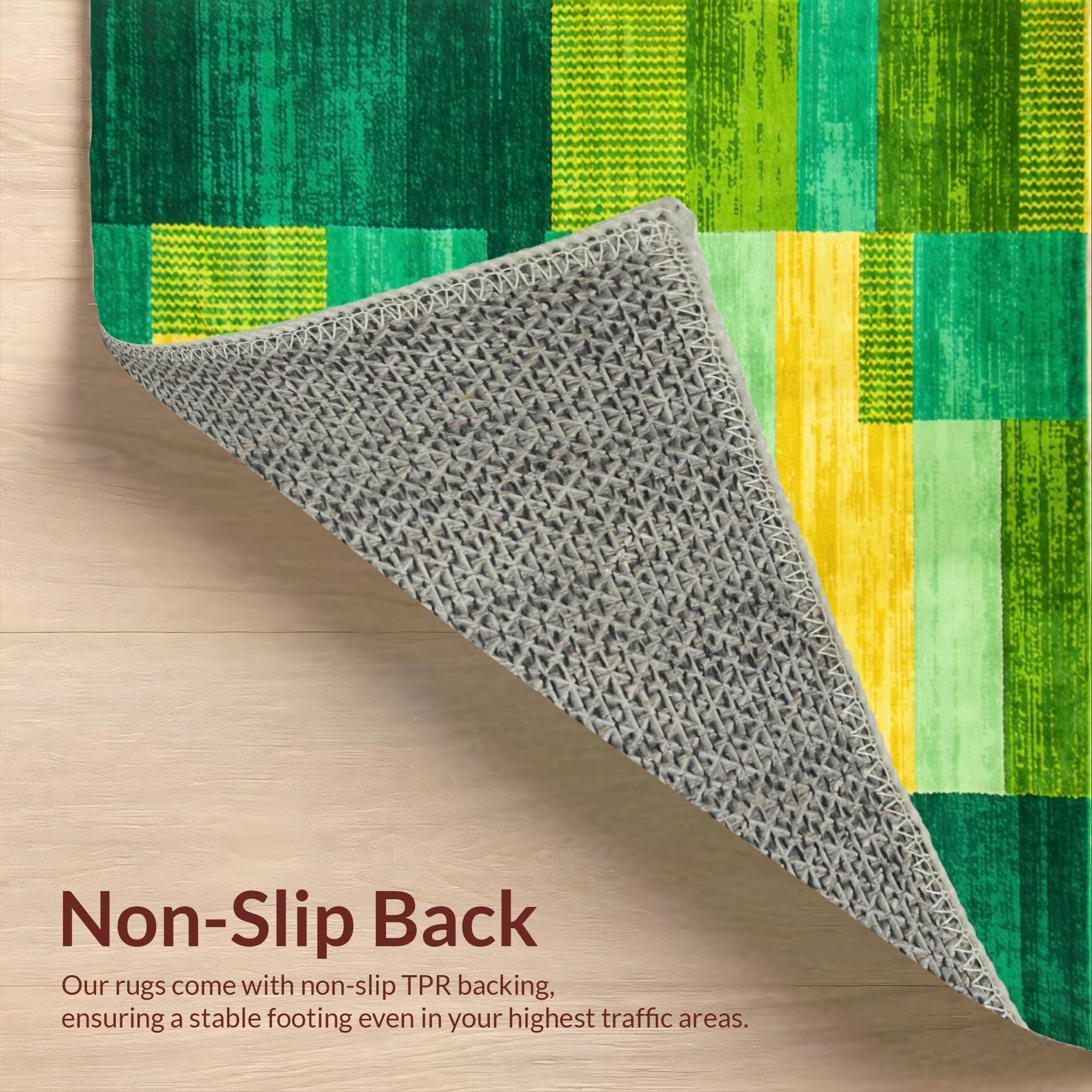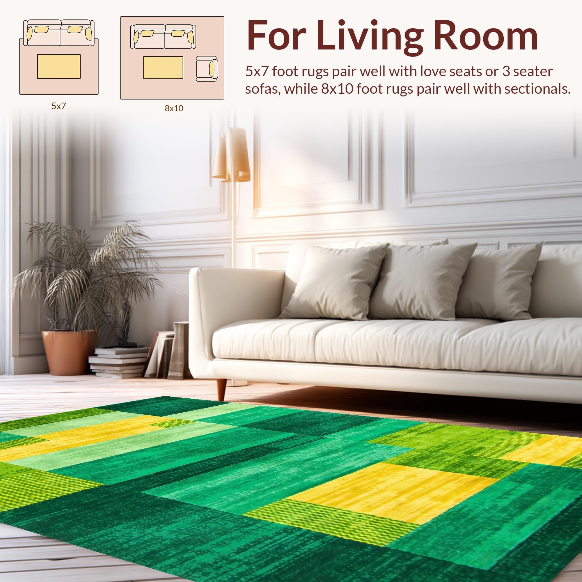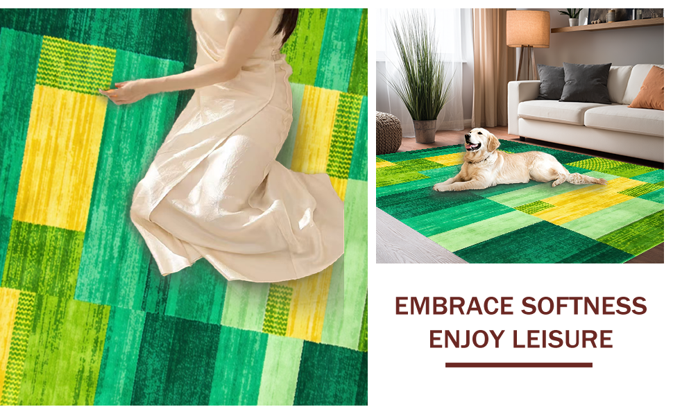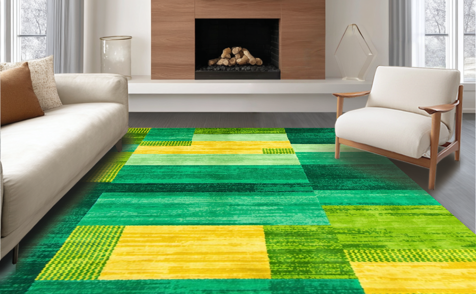 Ultra Soft Area Rug, Non Slip, Stain Resistant, Washable Area Rugs for Living Room, Bedroom, Dynamic Whimsical Curved Motifs(Green) Overview: