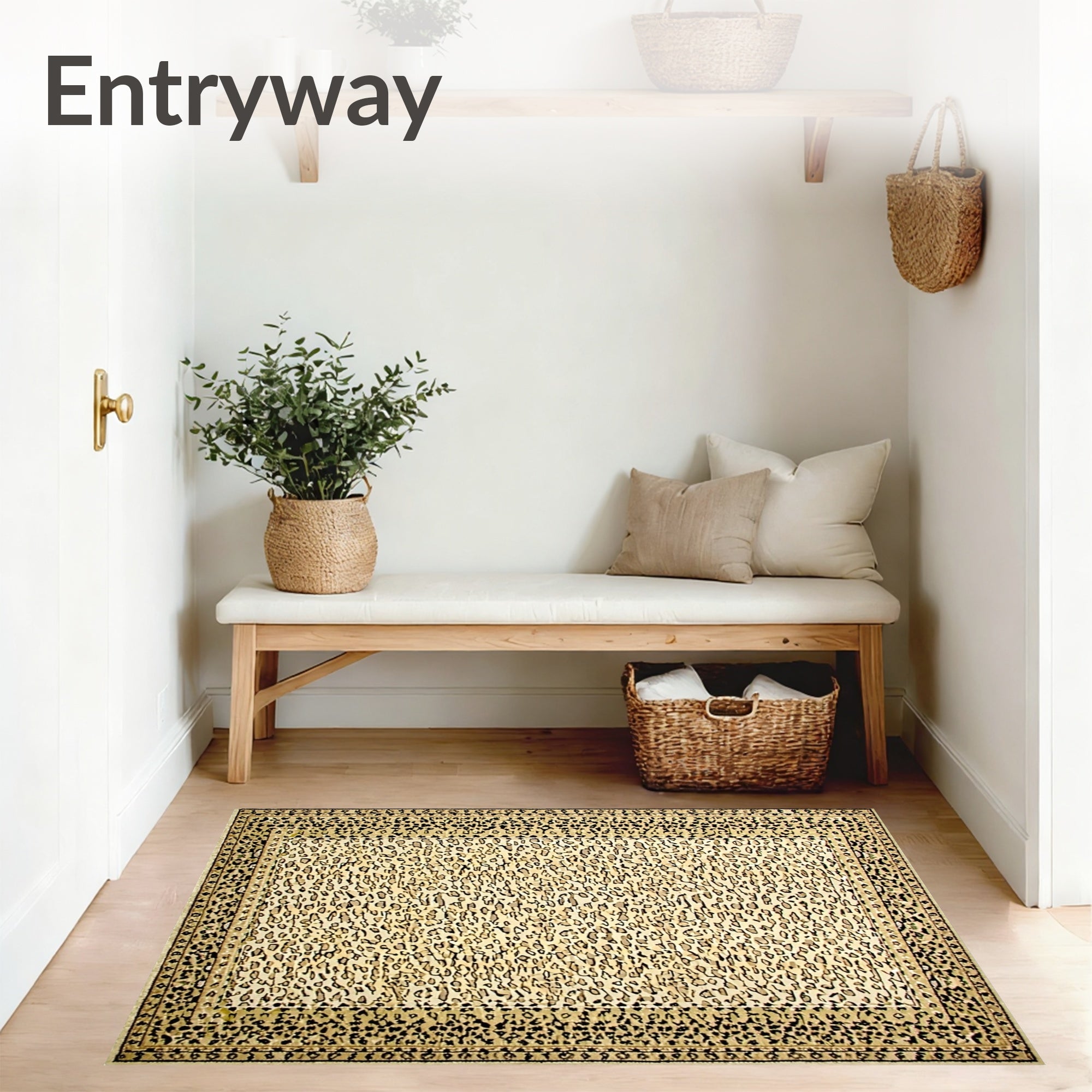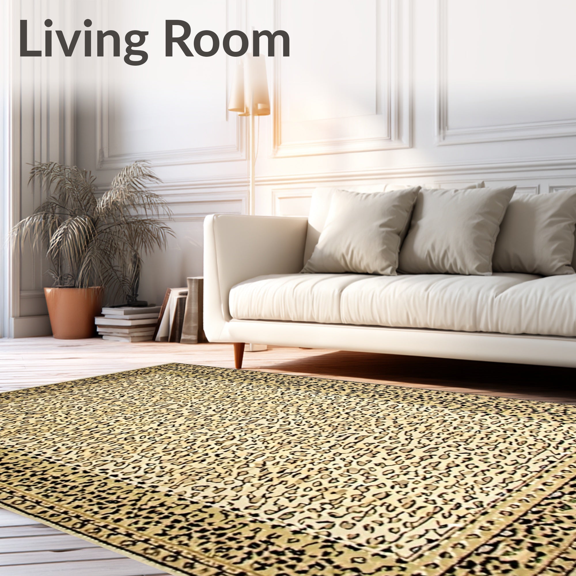 Ultra Soft Area Rug, Non Slip, Stain Resistant, Washable Area Rugs for Living Room, Bedroom, Dynamic Wild Animal Fabric Be Strong Beige Leopard Print Area(Beige) Overview: