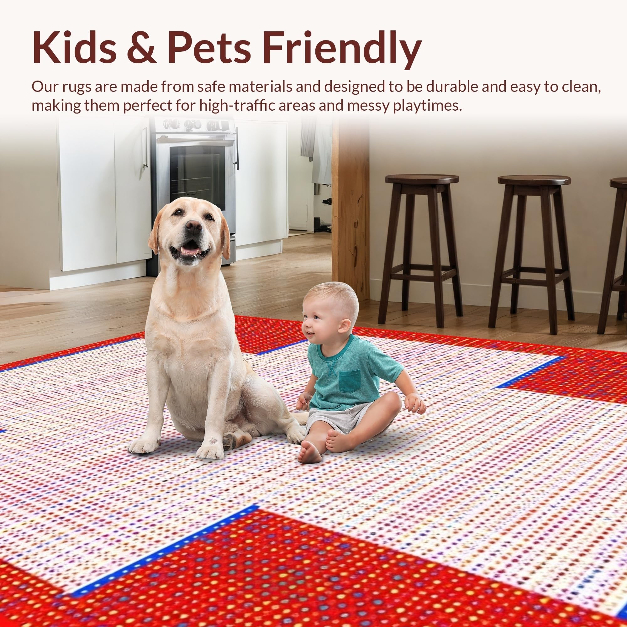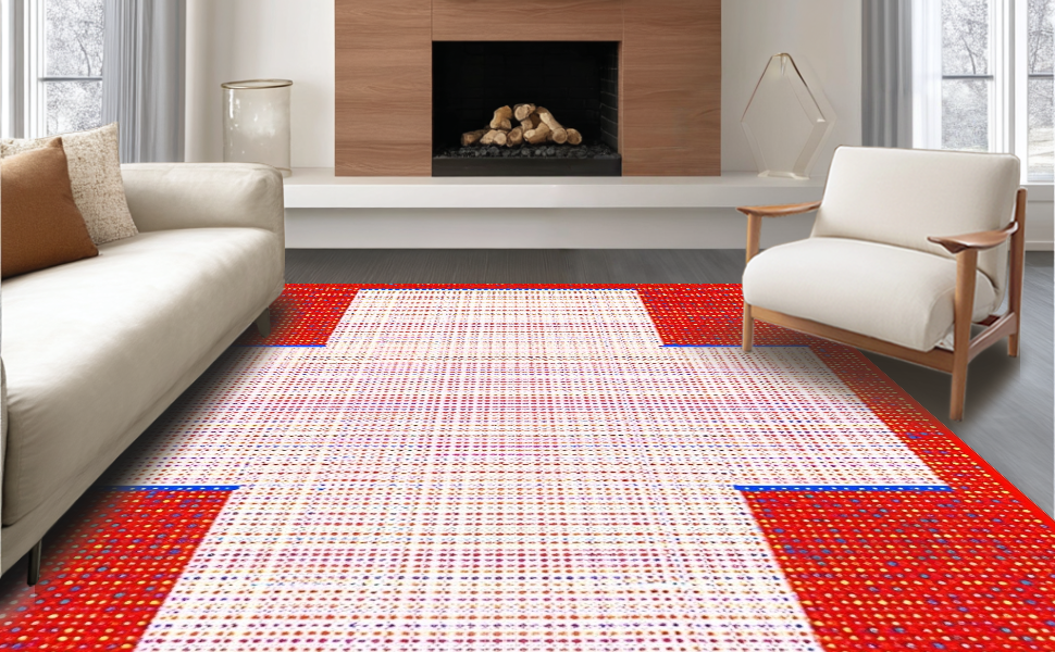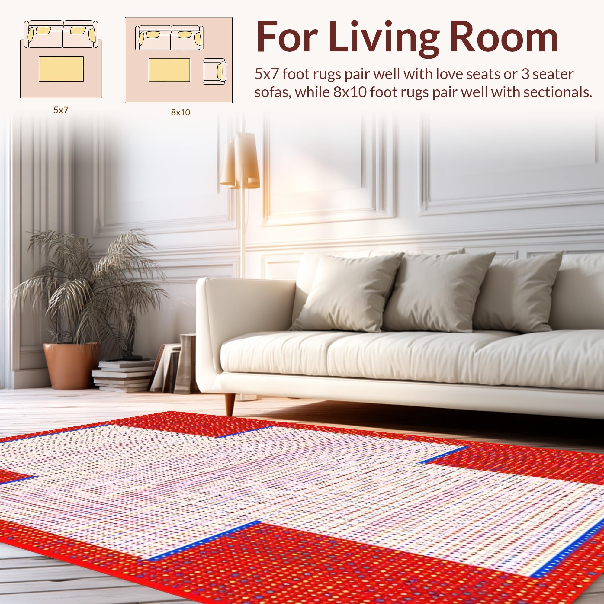 Ultra Soft Area Rug, Non Slip, Stain Resistant, Washable Area Rugs for Living Room, Bedroom, Dynamic Youthful Dotty Composition(Red) Overview: