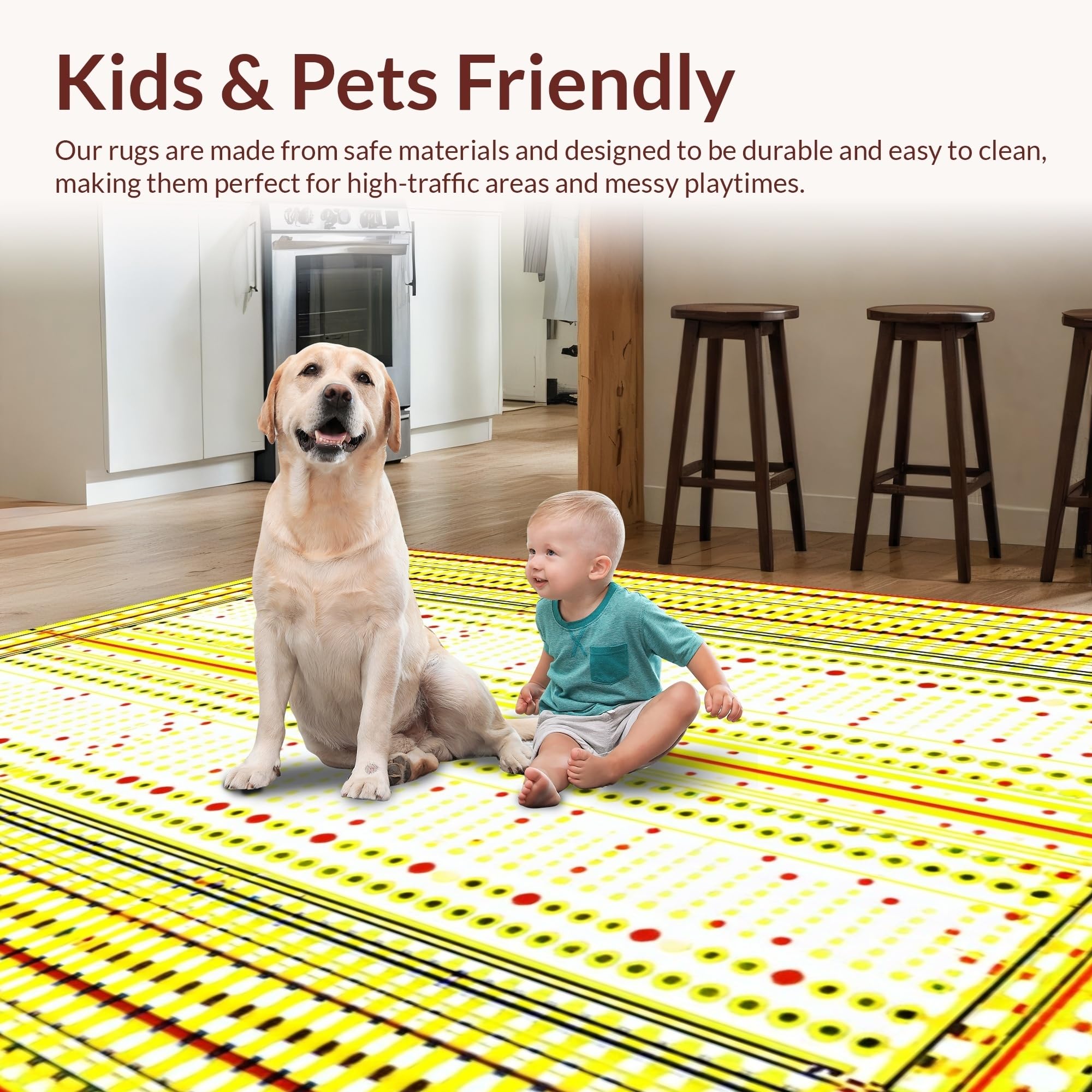 Ultra Soft Area Rug, Non Slip, Stain Resistant, Washable Area Rugs for Living Room, Bedroom, Dynamic Youthful Patterned Delight(Yellow) Overview: