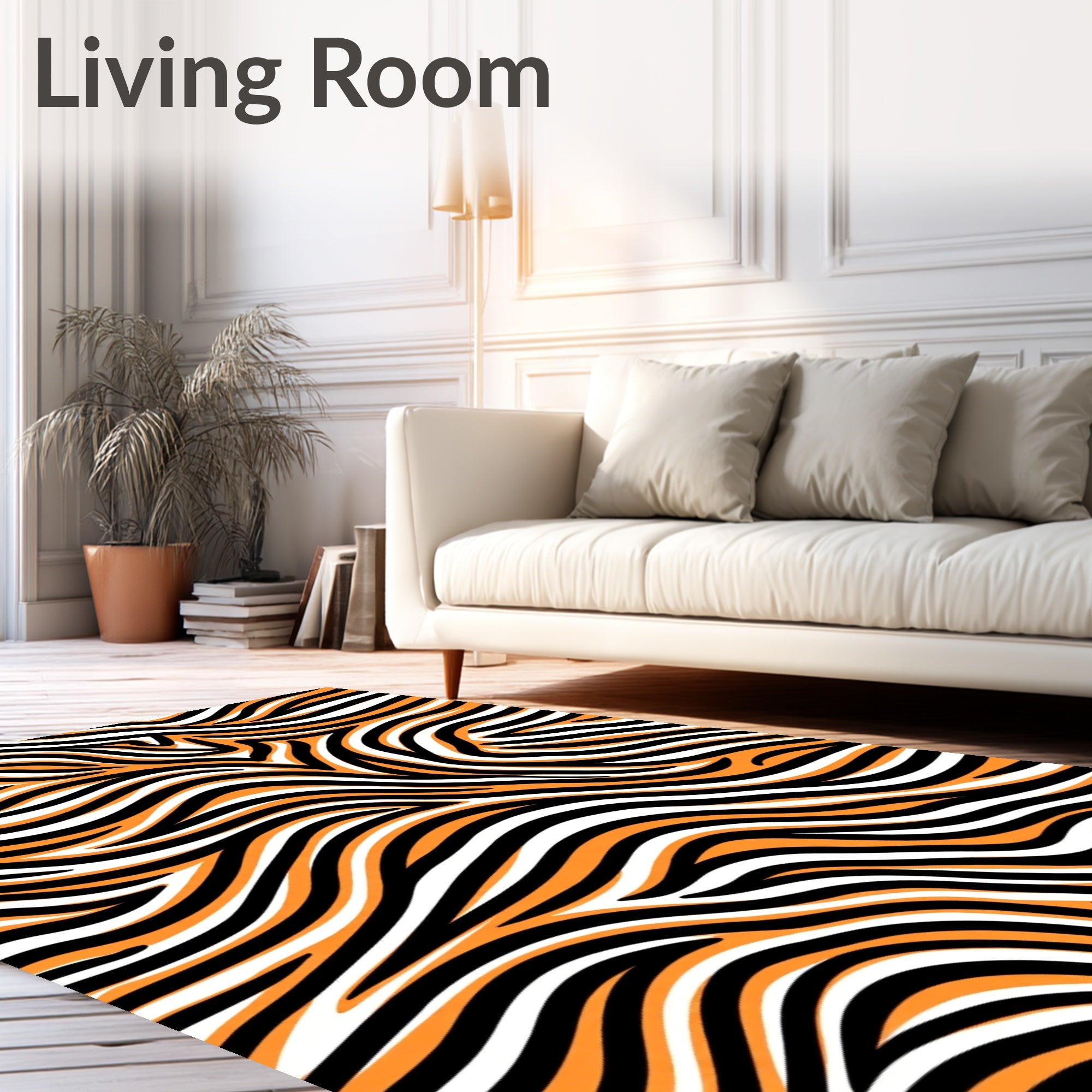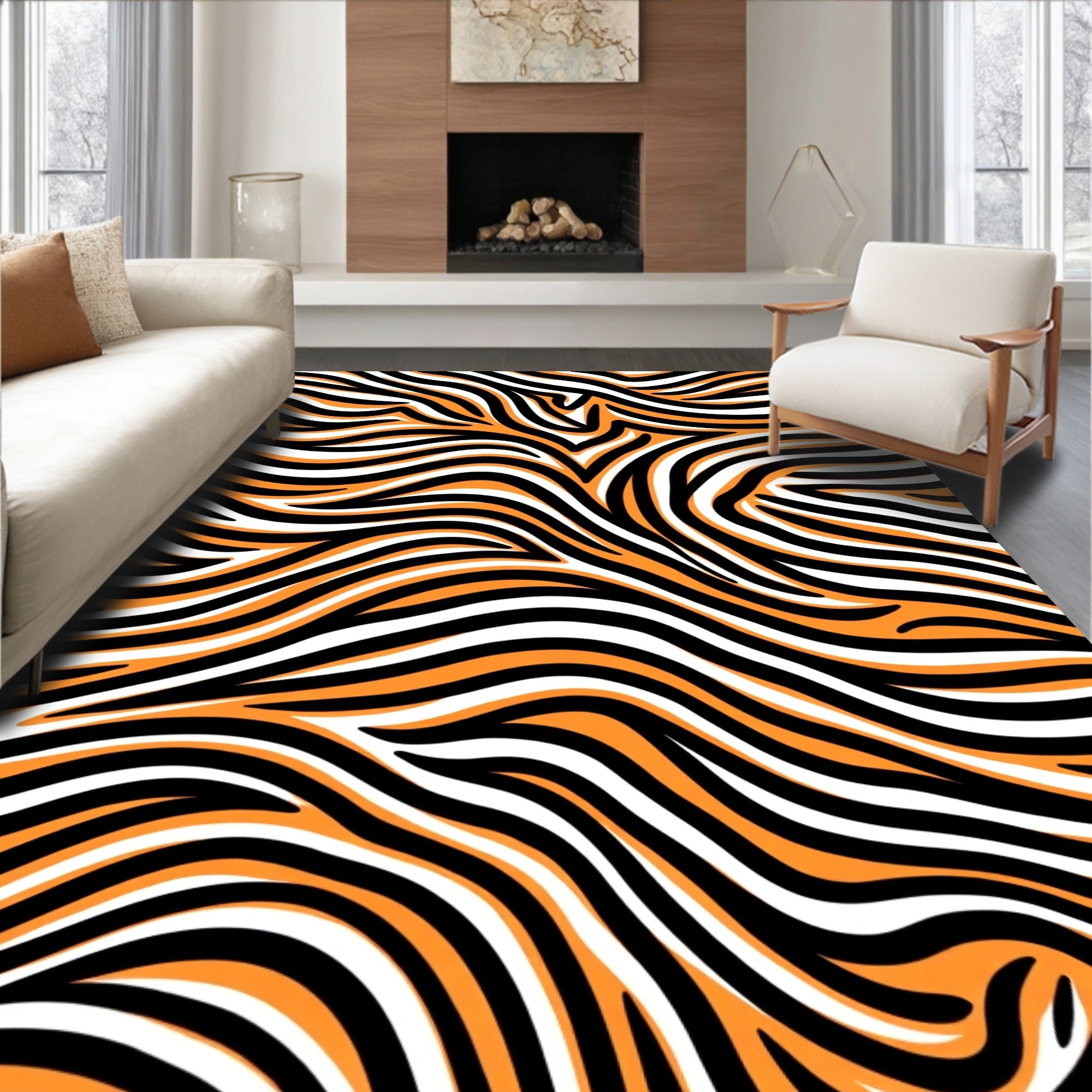 Ultra Soft Area Rug, Non Slip, Stain Resistant, Washable Area Rugs for Living Room, Bedroom, Dynamic Zebra Style Stripe with Asymmetric Flowing Lines(Orange) Overview: