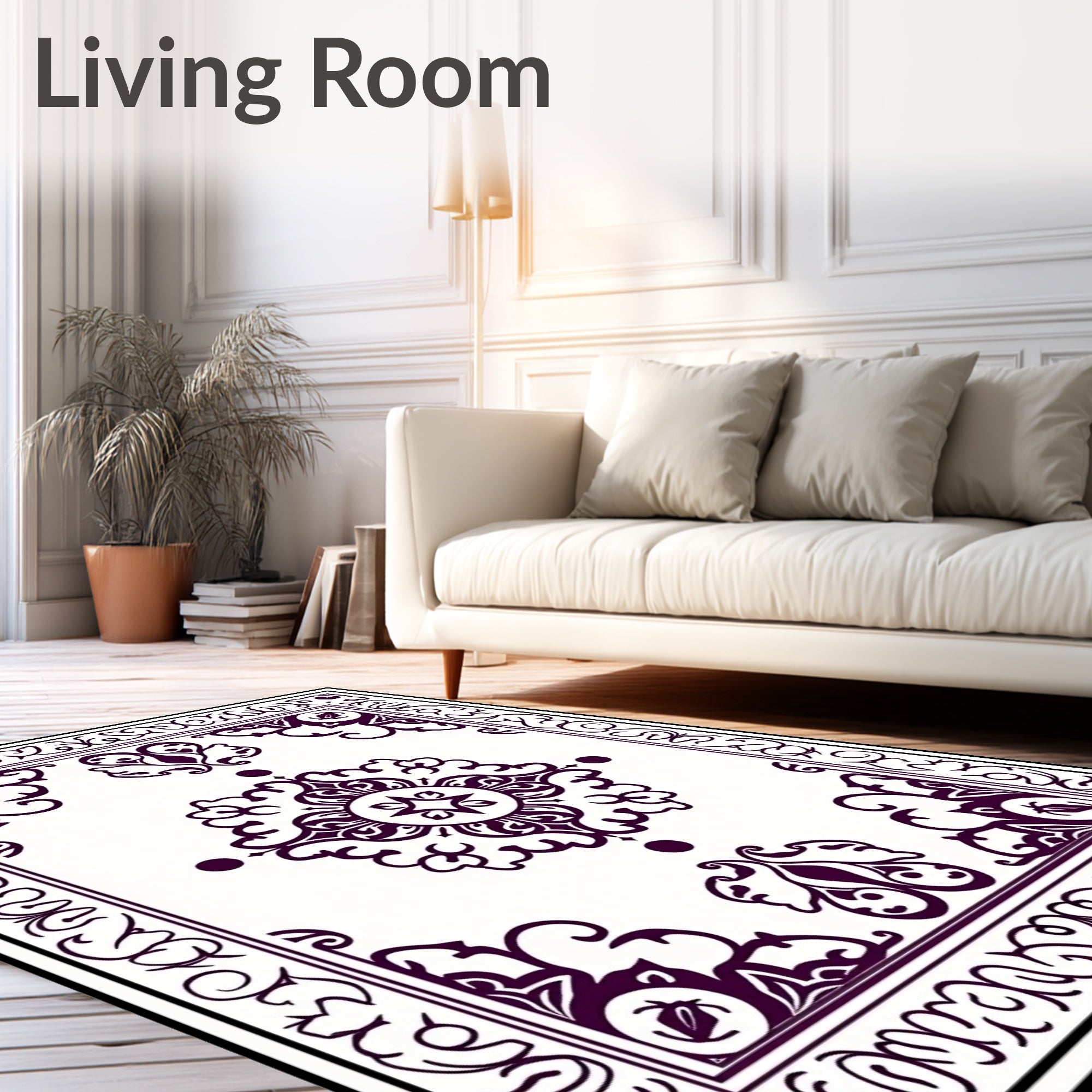 Ultra Soft Area Rug, Non Slip, Stain Resistant, Washable Area Rugs for Living Room, Bedroom, Dynasty Heirloom Arabesque Symmetrical Embellishment(White) Overview: