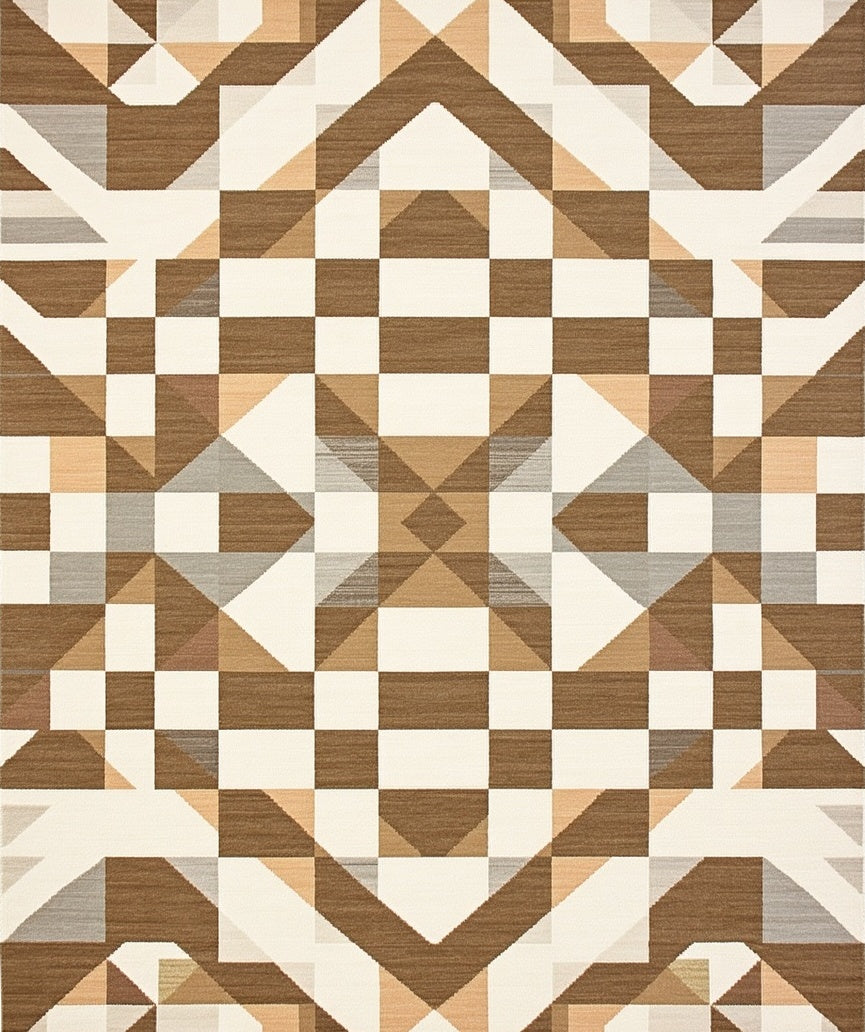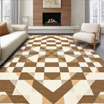 Earth Tone Geometric Non Slip Entryway Printed Faux Wool Mat(Beige)