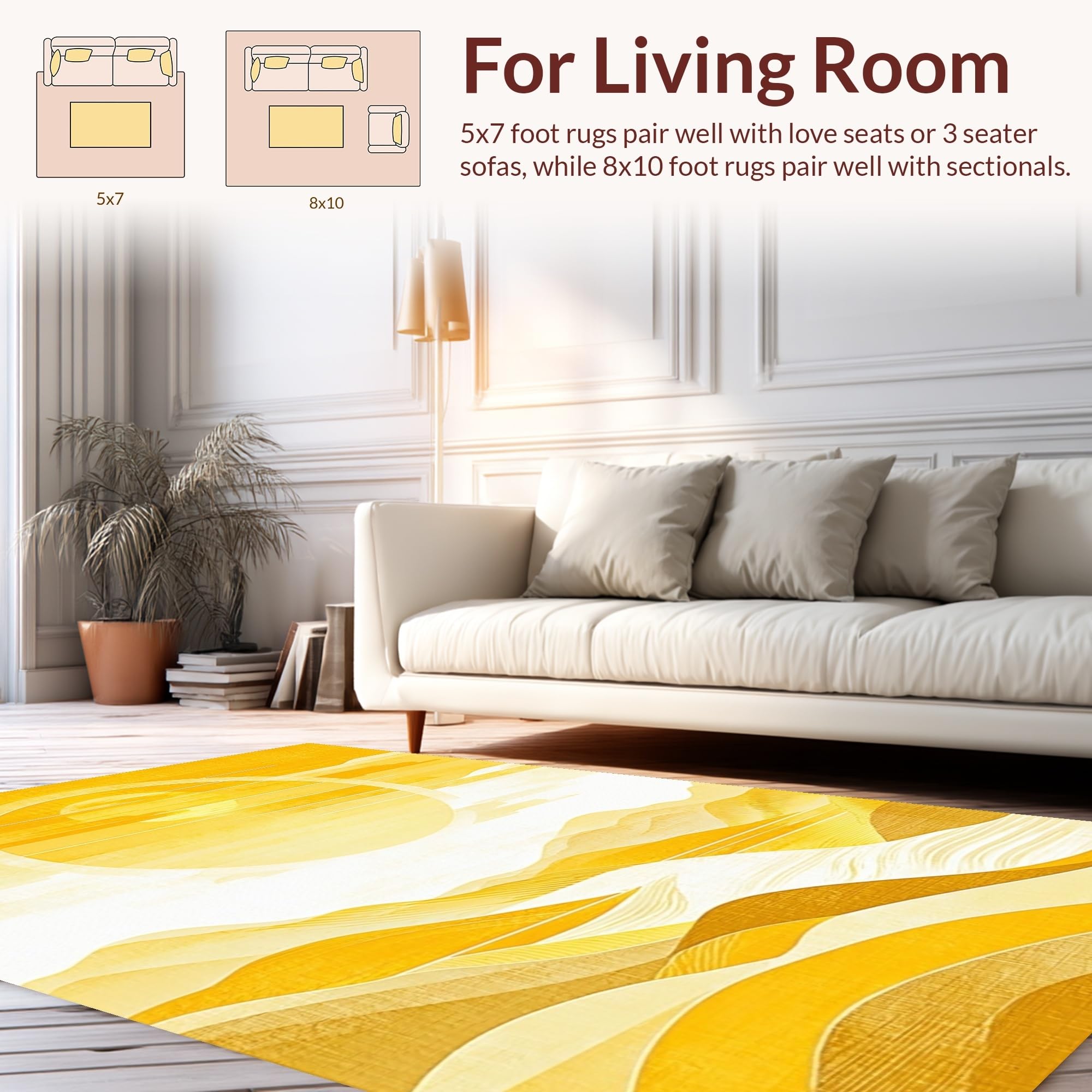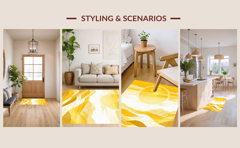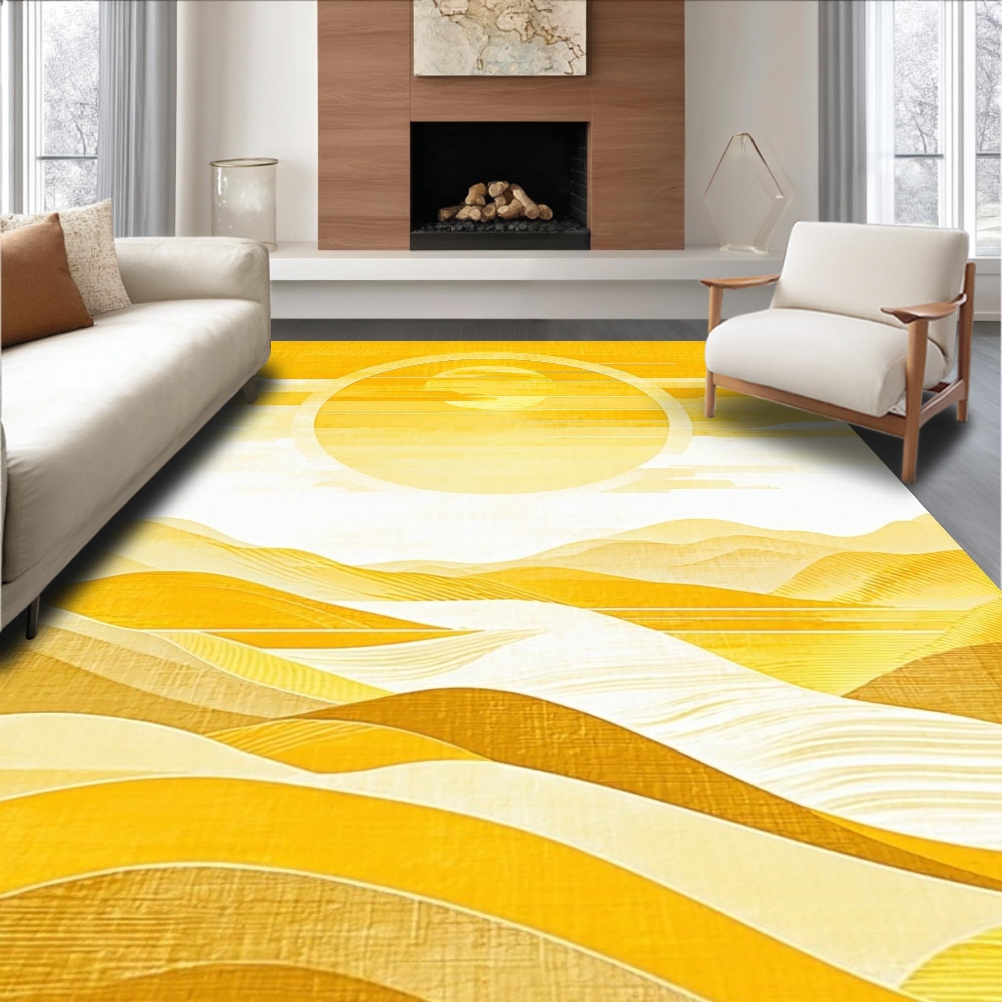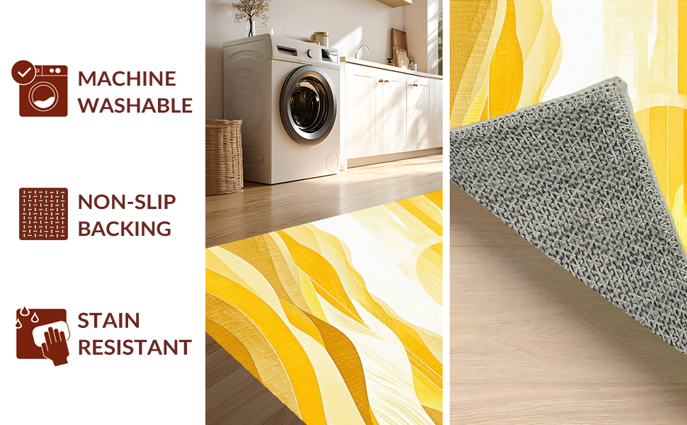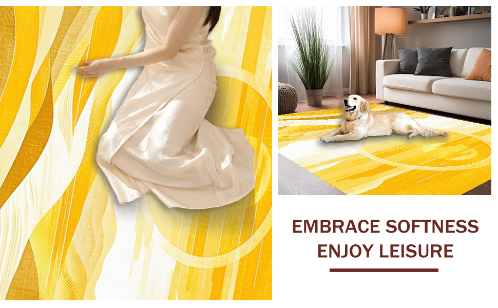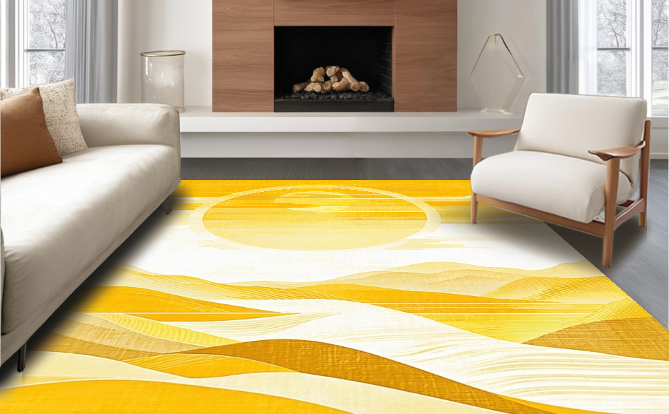 Ultra Soft Area Rug, Non Slip, Stain Resistant, Washable Area Rugs for Living Room, Bedroom, Earthy Abstract Wavy Essence(Yellow) Overview: