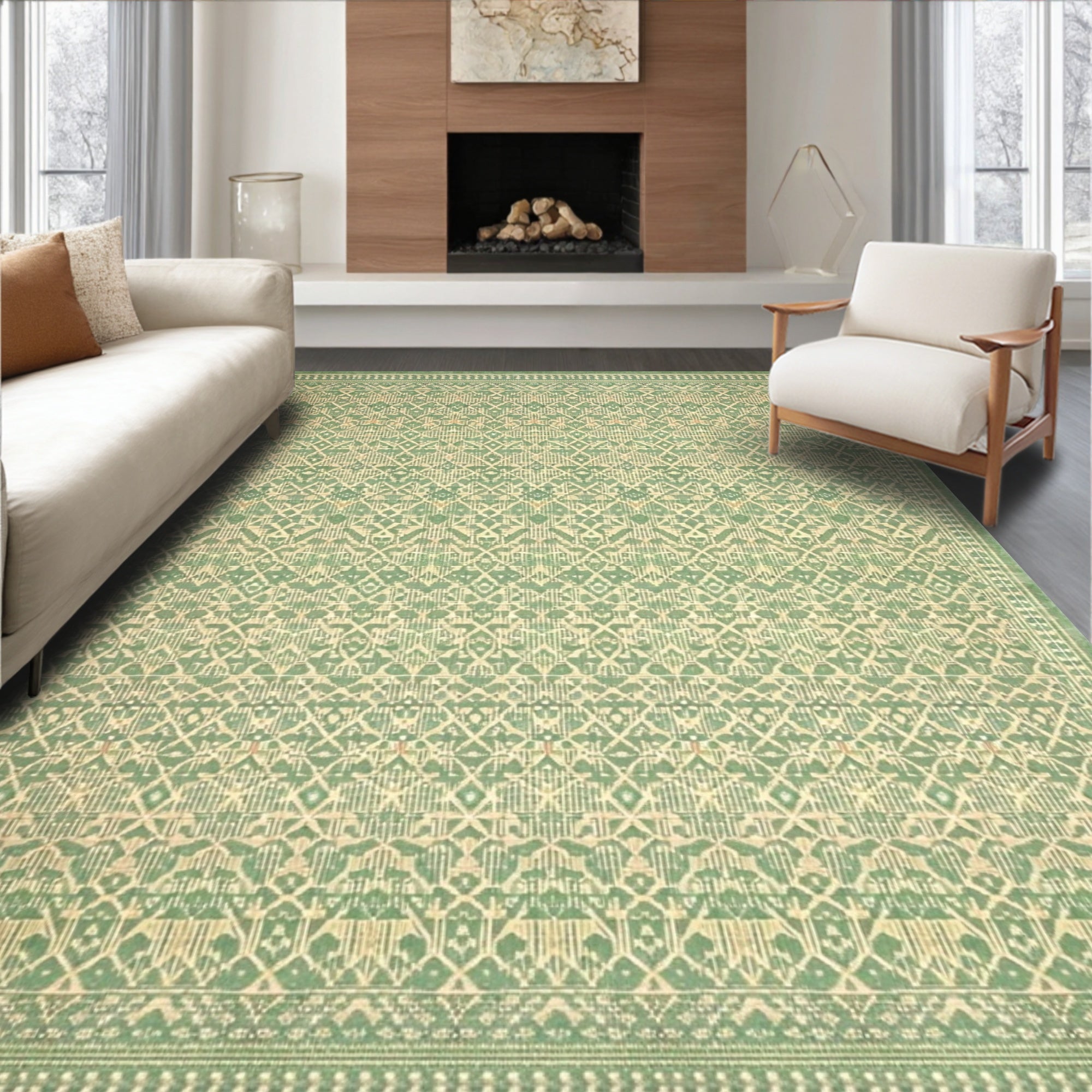 Ultra Soft Area Rug, Non Slip, Stain Resistant, Washable Area Rugs for Living Room, Bedroom, Earthy Green Beige Feel Kid Pet Friendly(Green) Overview: