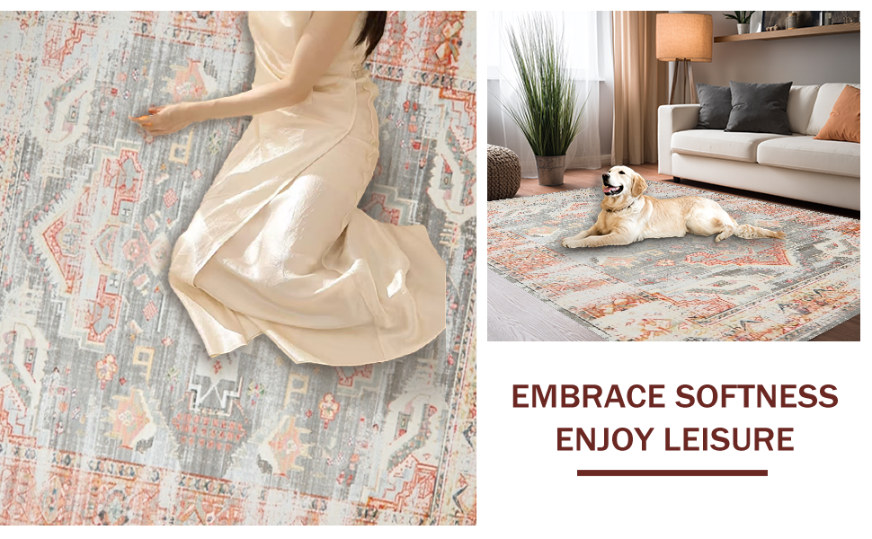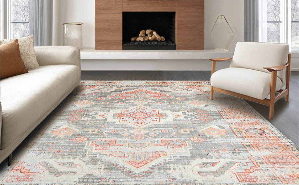 Ultra Soft Area Rug, Non Slip, Stain Resistant, Washable Area Rugs for Living Room, Bedroom, Earthy Minimalist Textured Motif(Gray) Overview: