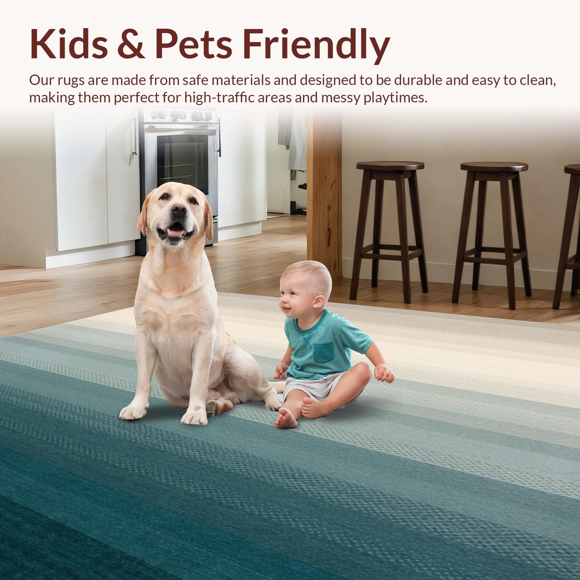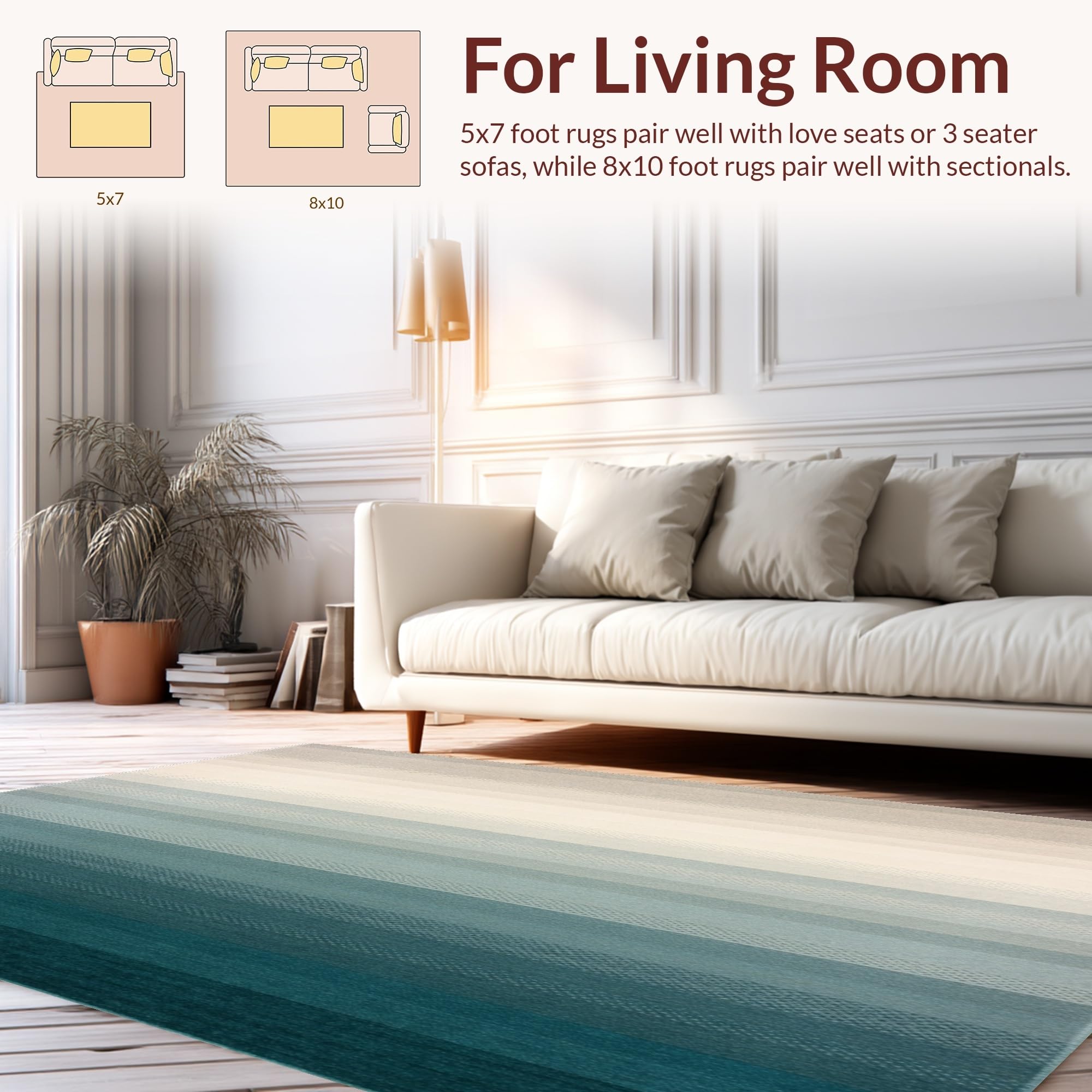 Ultra Soft Area Rug, Non Slip, Stain Resistant, Washable Area Rugs for Living Room, Bedroom, Earthy Ombre Beige Area Gradient Shaded(Blue) Overview: