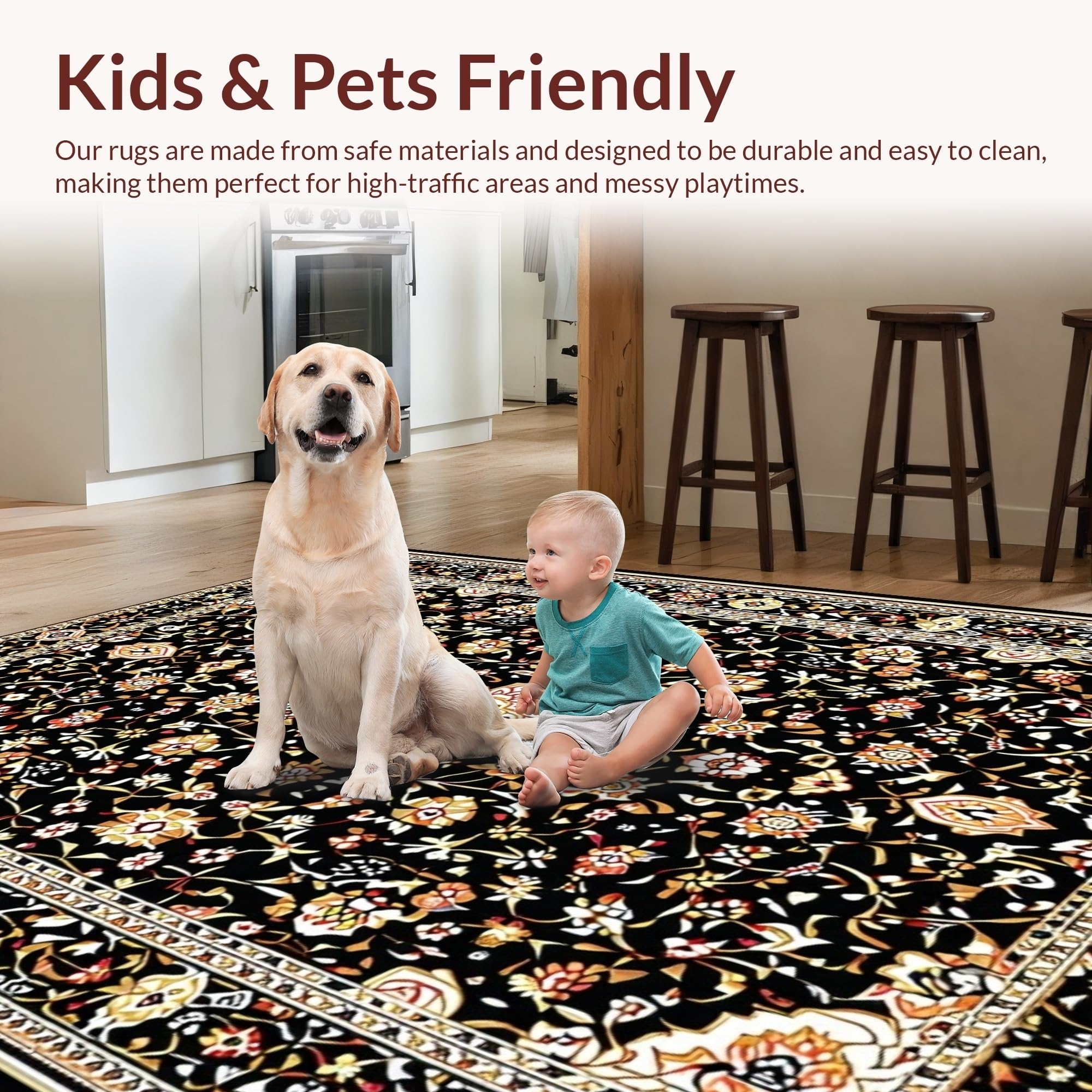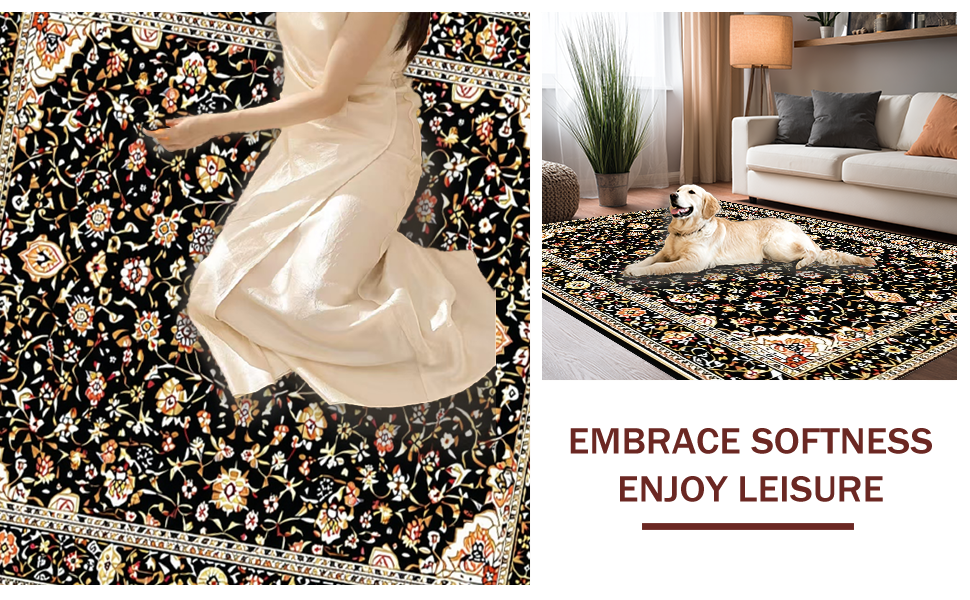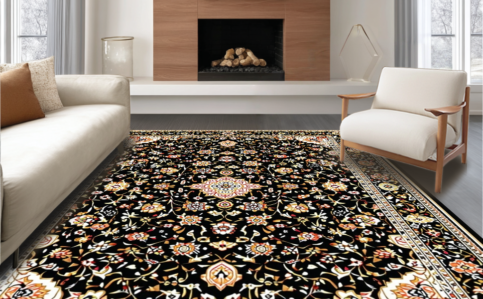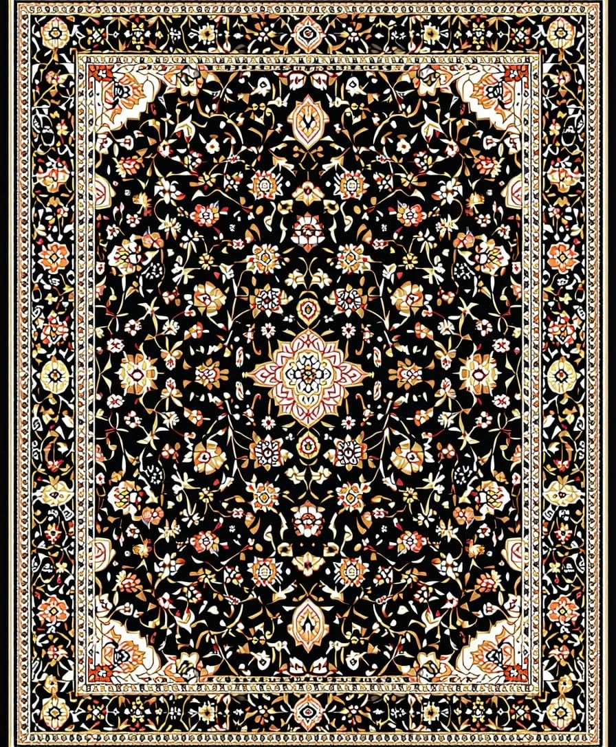 Ultra Soft Area Rug, Non Slip, Stain Resistant, Washable Area Rugs for Living Room, Bedroom, Earthy Retro Tiled Aesthetic(Black) Overview: