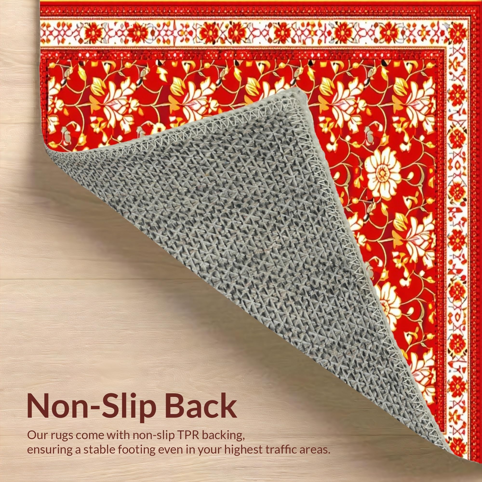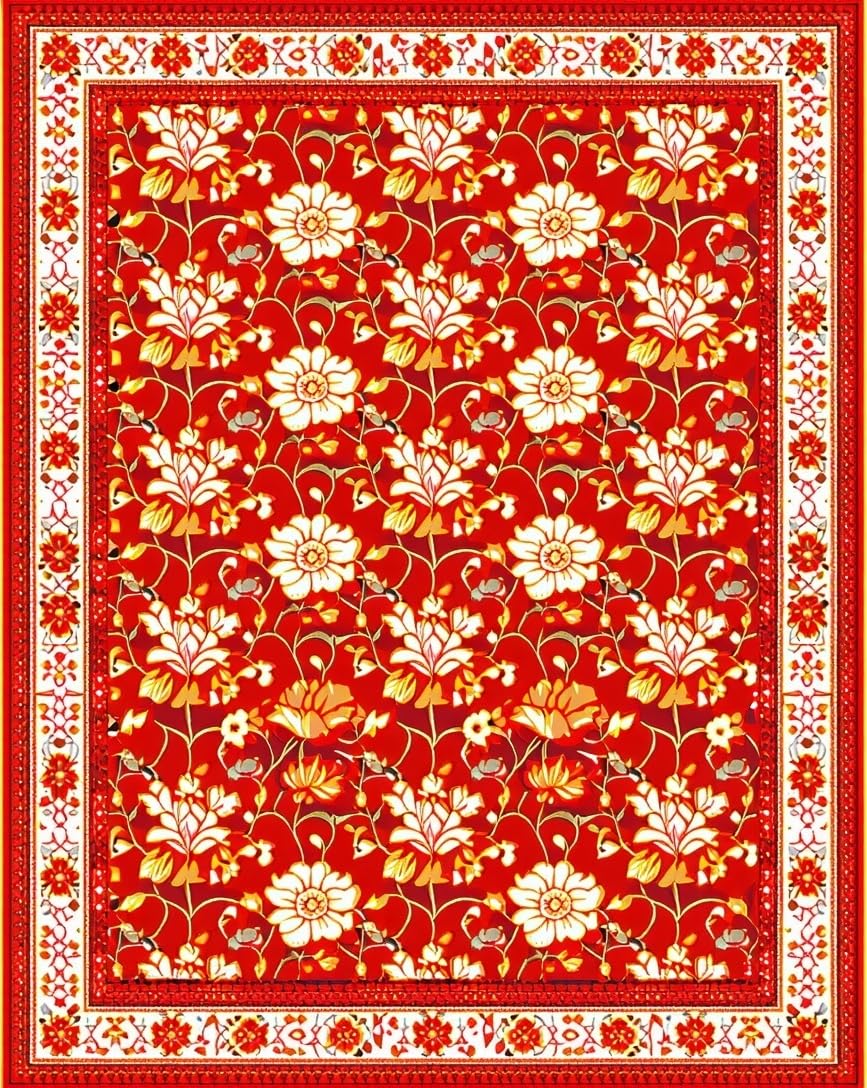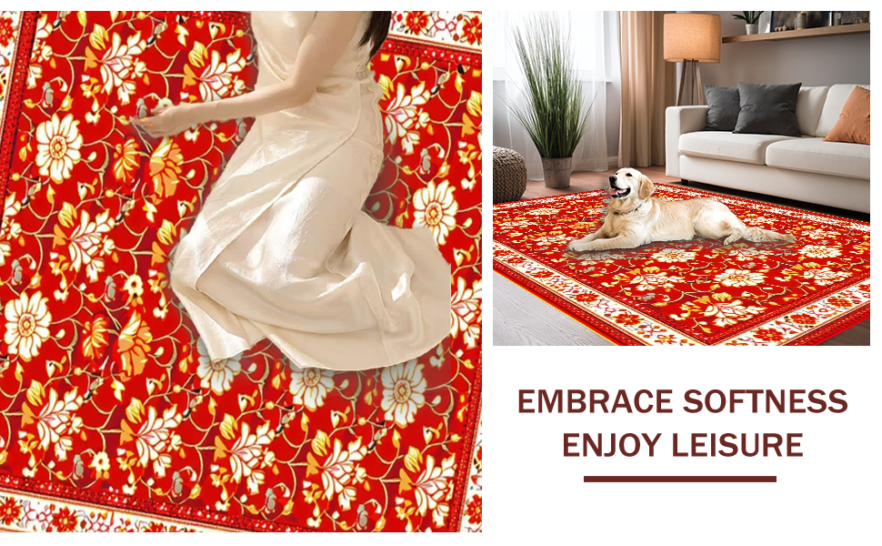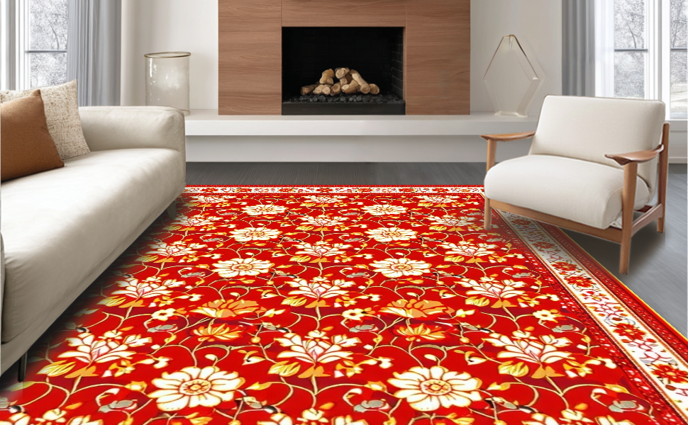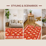 Ultra Soft Area Rug, Non Slip, Stain Resistant, Washable Area Rugs for Living Room, Bedroom, Earthy Textured Flower Arrangement(Red) Overview: