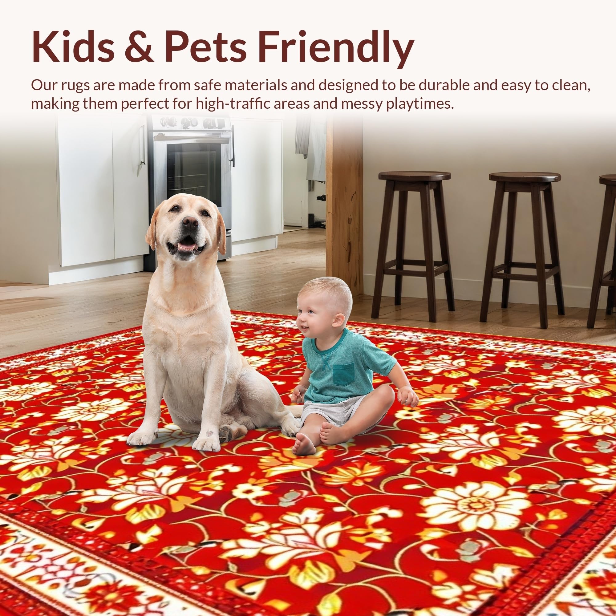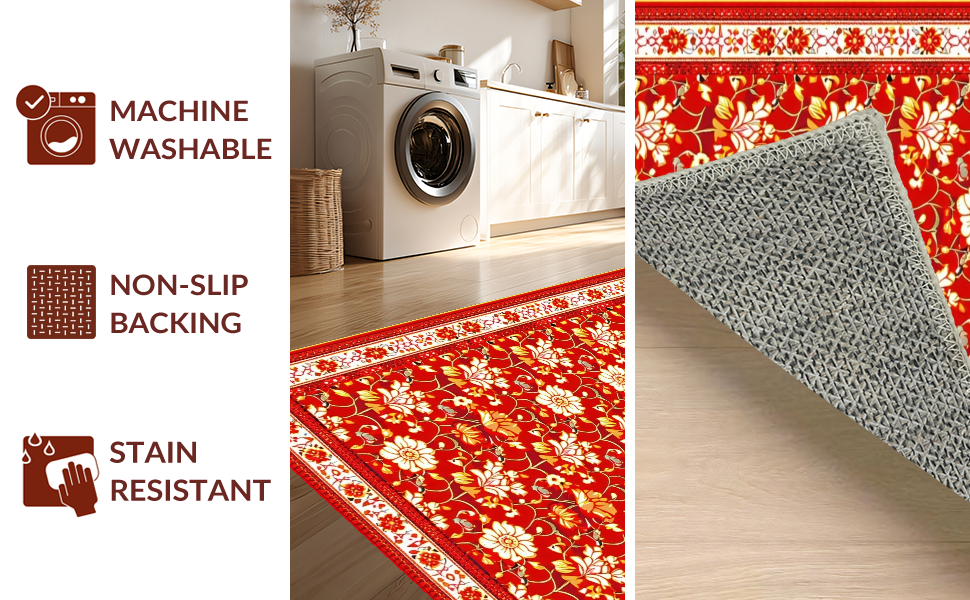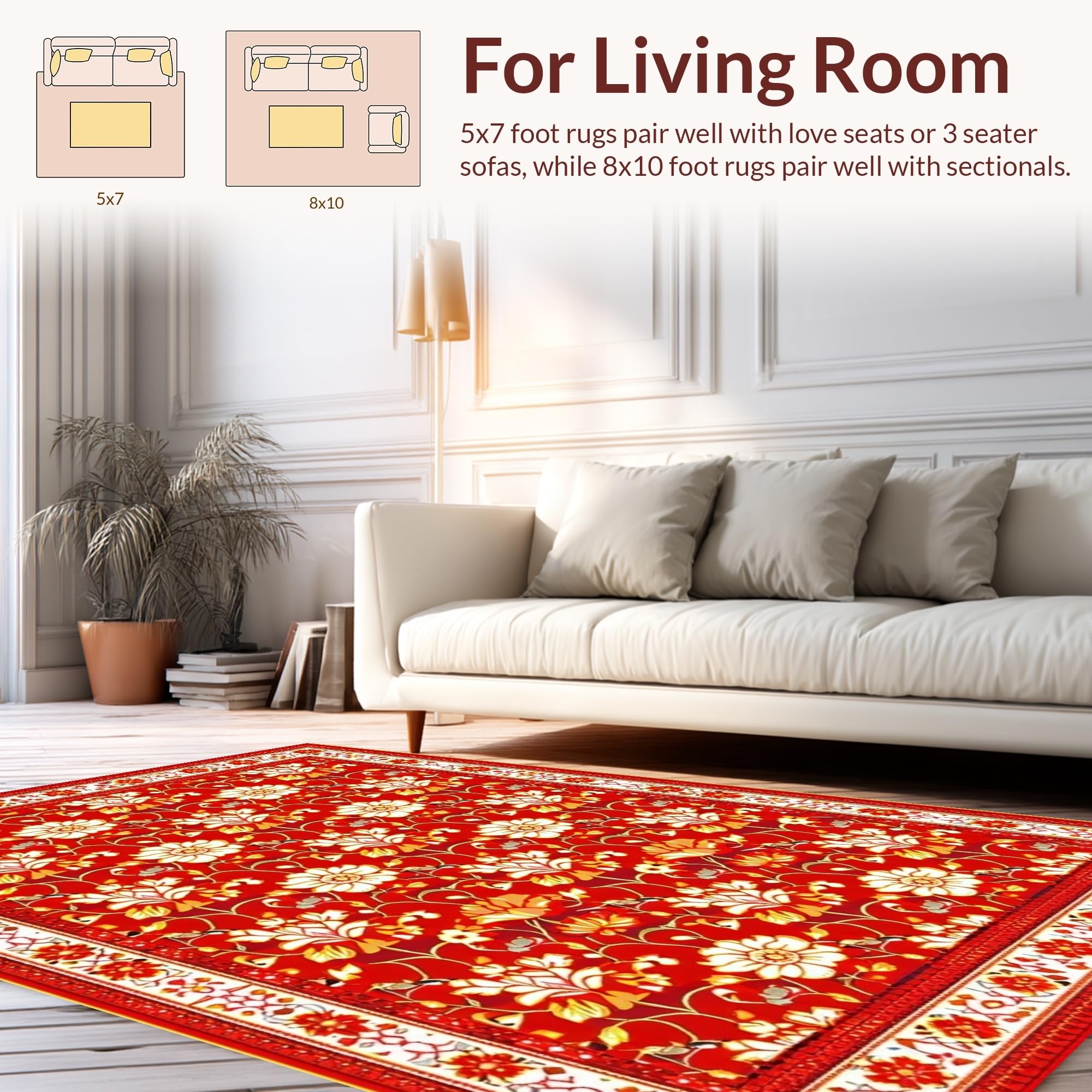 Ultra Soft Area Rug, Non Slip, Stain Resistant, Washable Area Rugs for Living Room, Bedroom, Earthy Textured Flower Arrangement(Red) Overview: