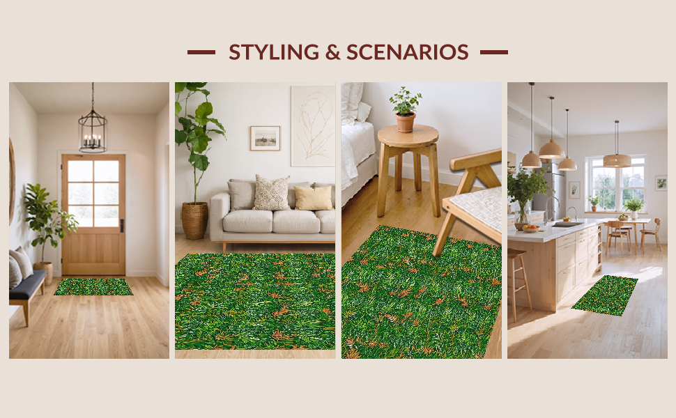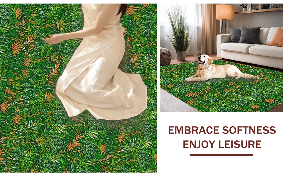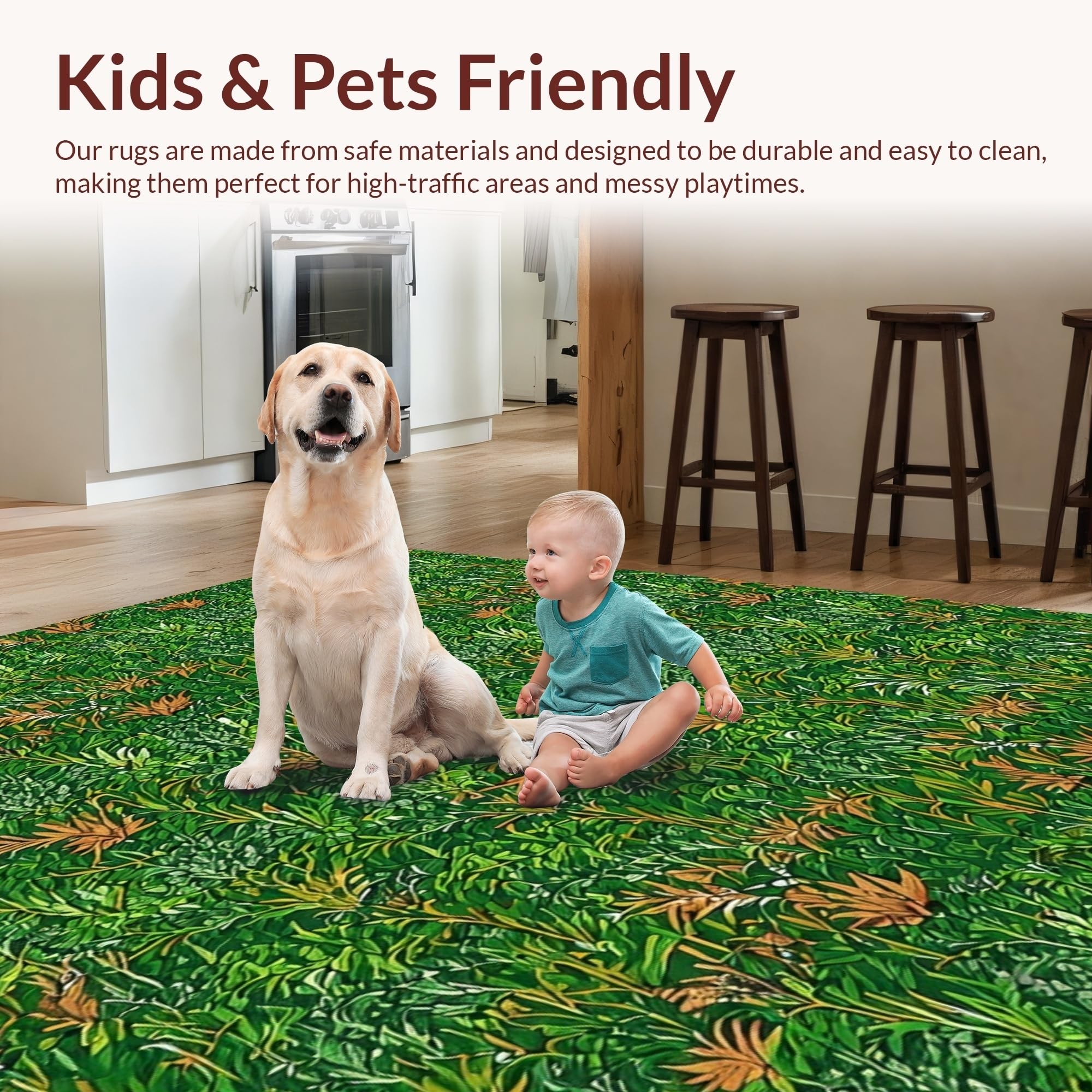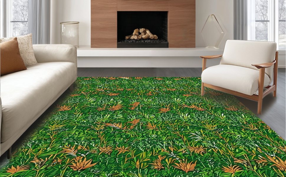 Ultra Soft Area Rug, Non Slip, Stain Resistant, Washable Area Rugs for Living Room, Bedroom, Earthy Toned Realistic Turf Design(Green) Overview: