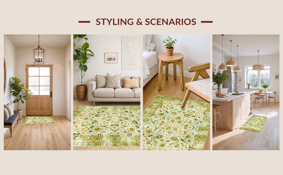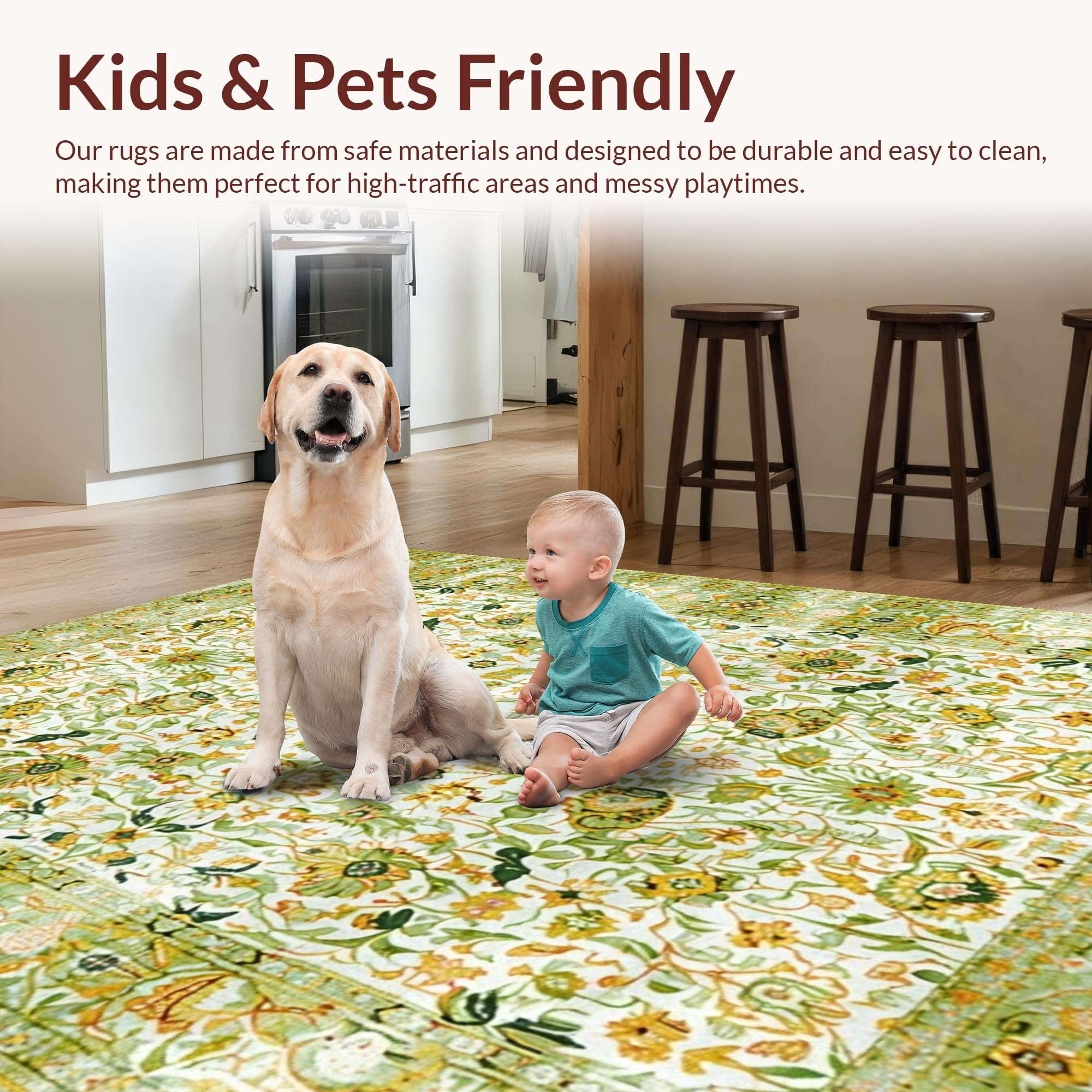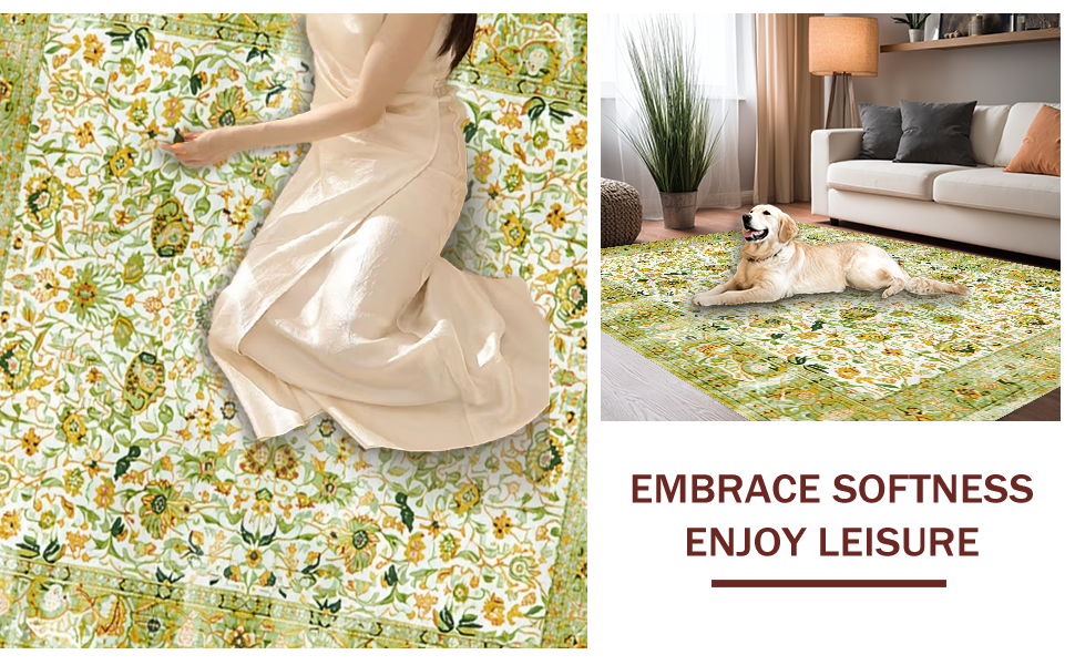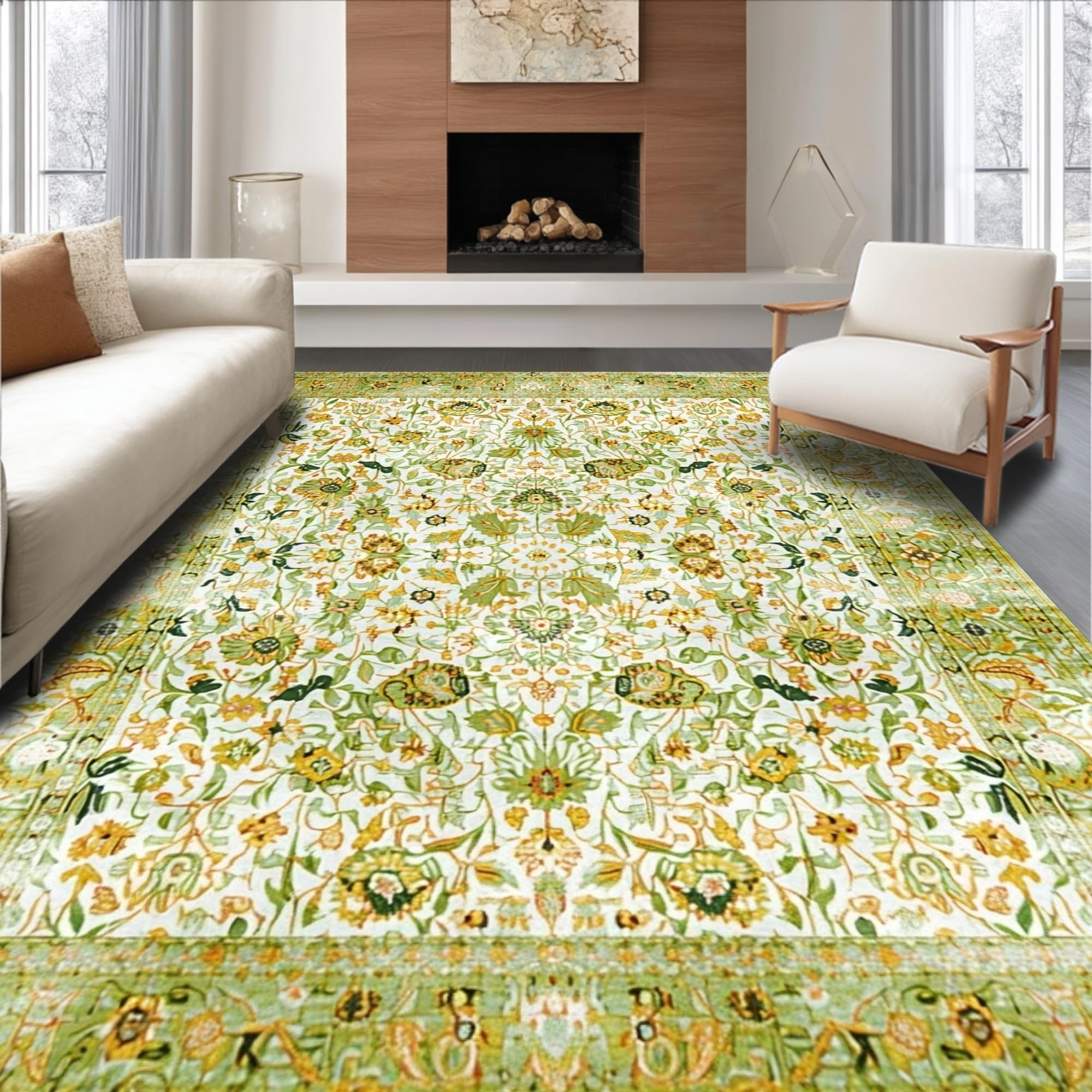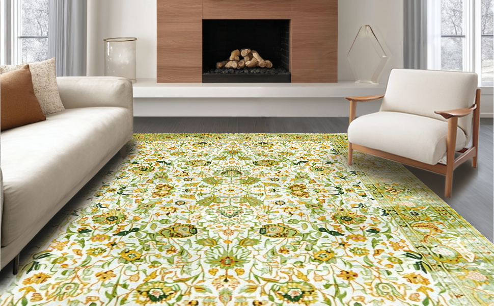 Ultra Soft Area Rug, Non Slip, Stain Resistant, Washable Area Rugs for Living Room, Bedroom, Earthy Toned Retro Design(Ivory) Overview: