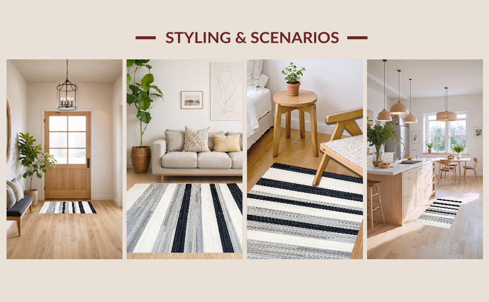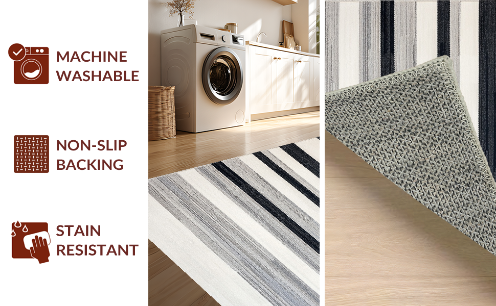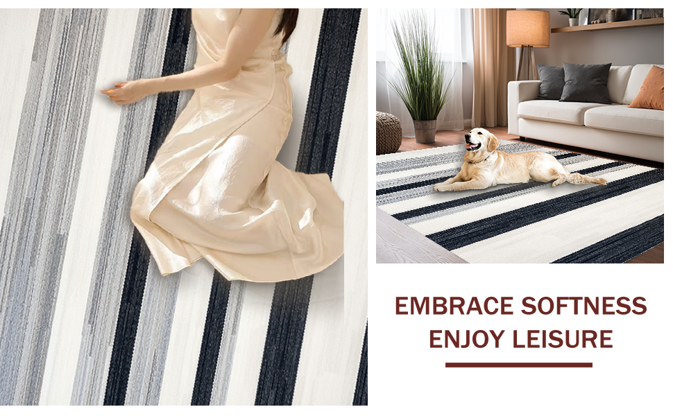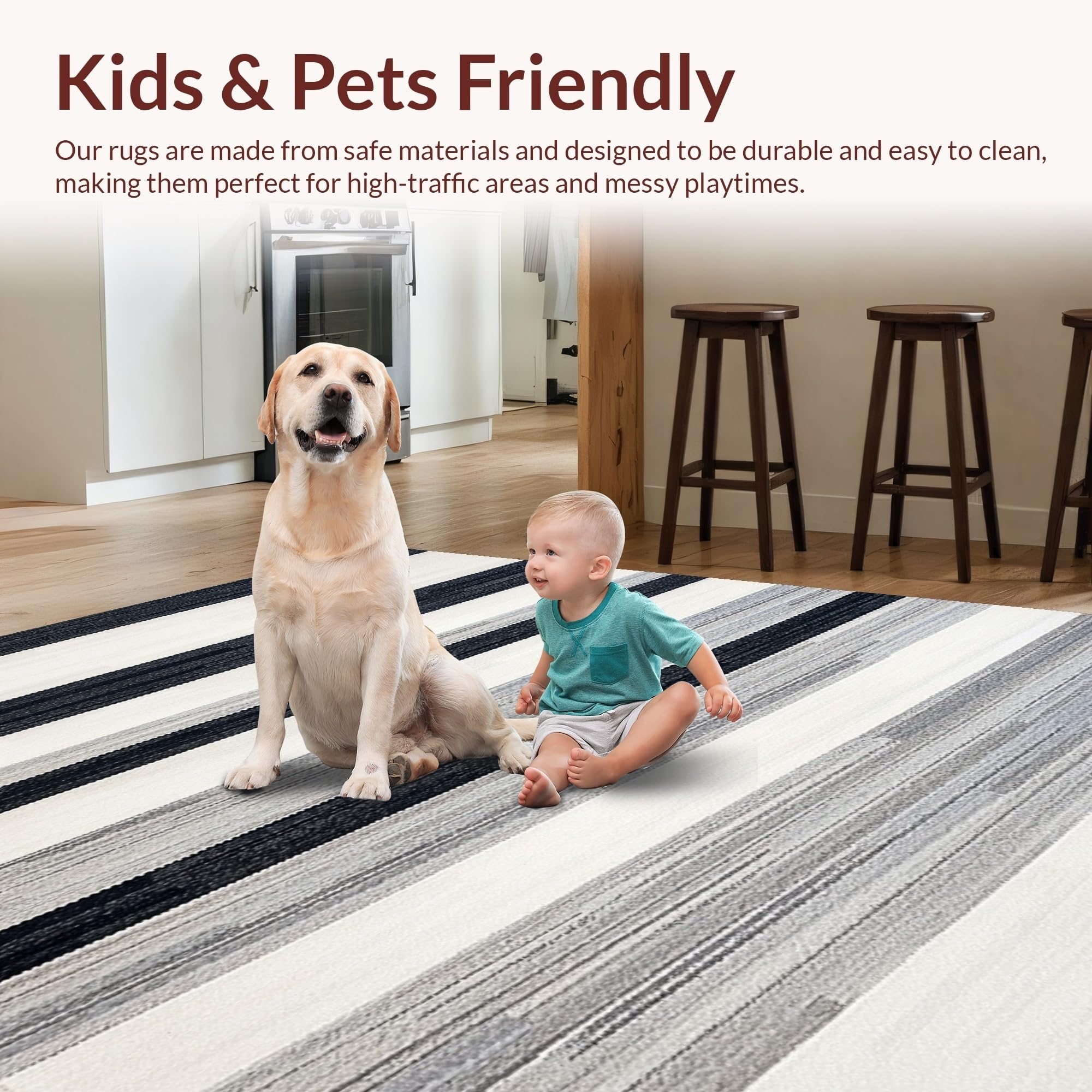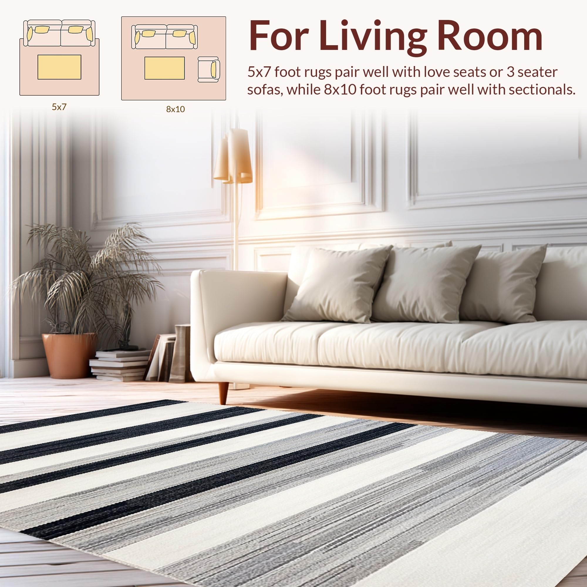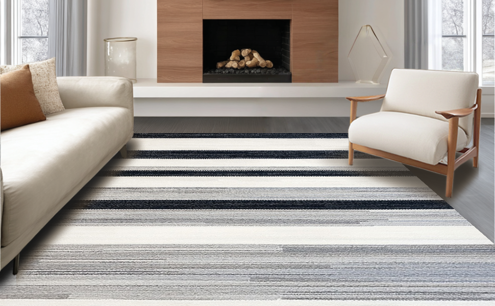 Ultra Soft Area Rug, Non Slip, Stain Resistant, Washable Area Rugs for Living Room, Bedroom, Earthy Toned Striped Leisure Rug(Black) Overview:
