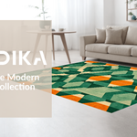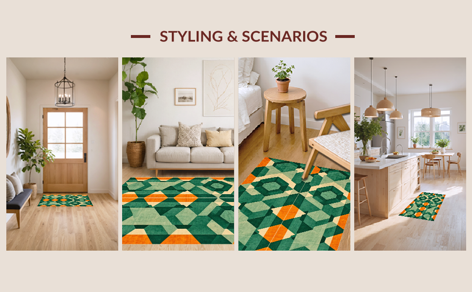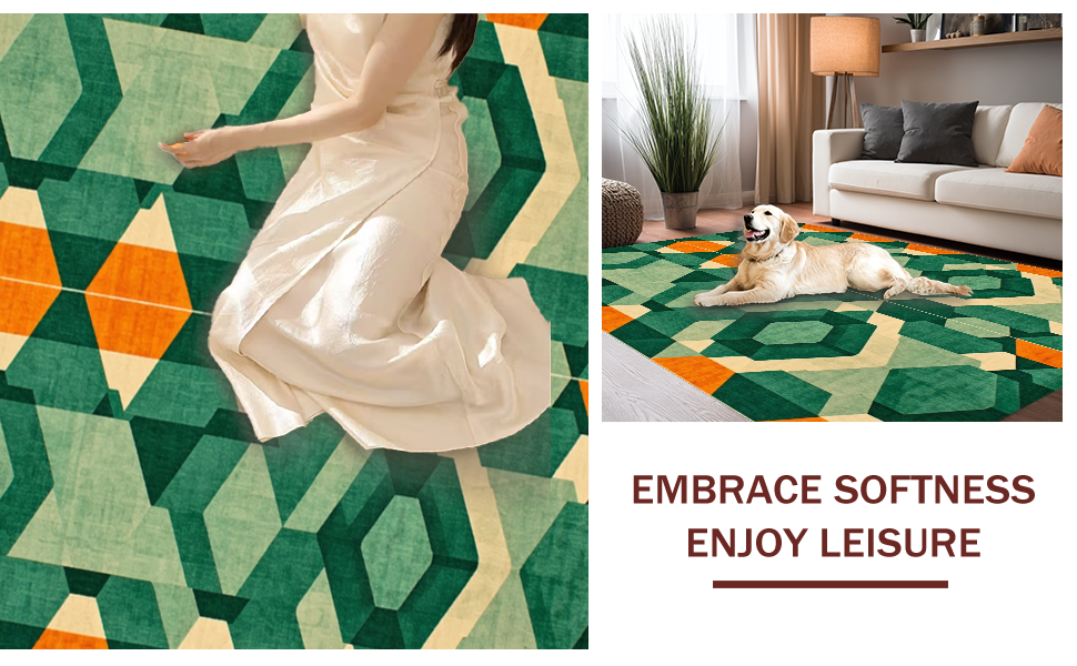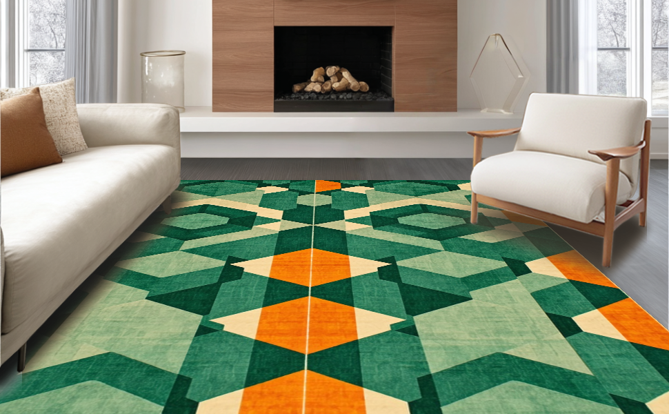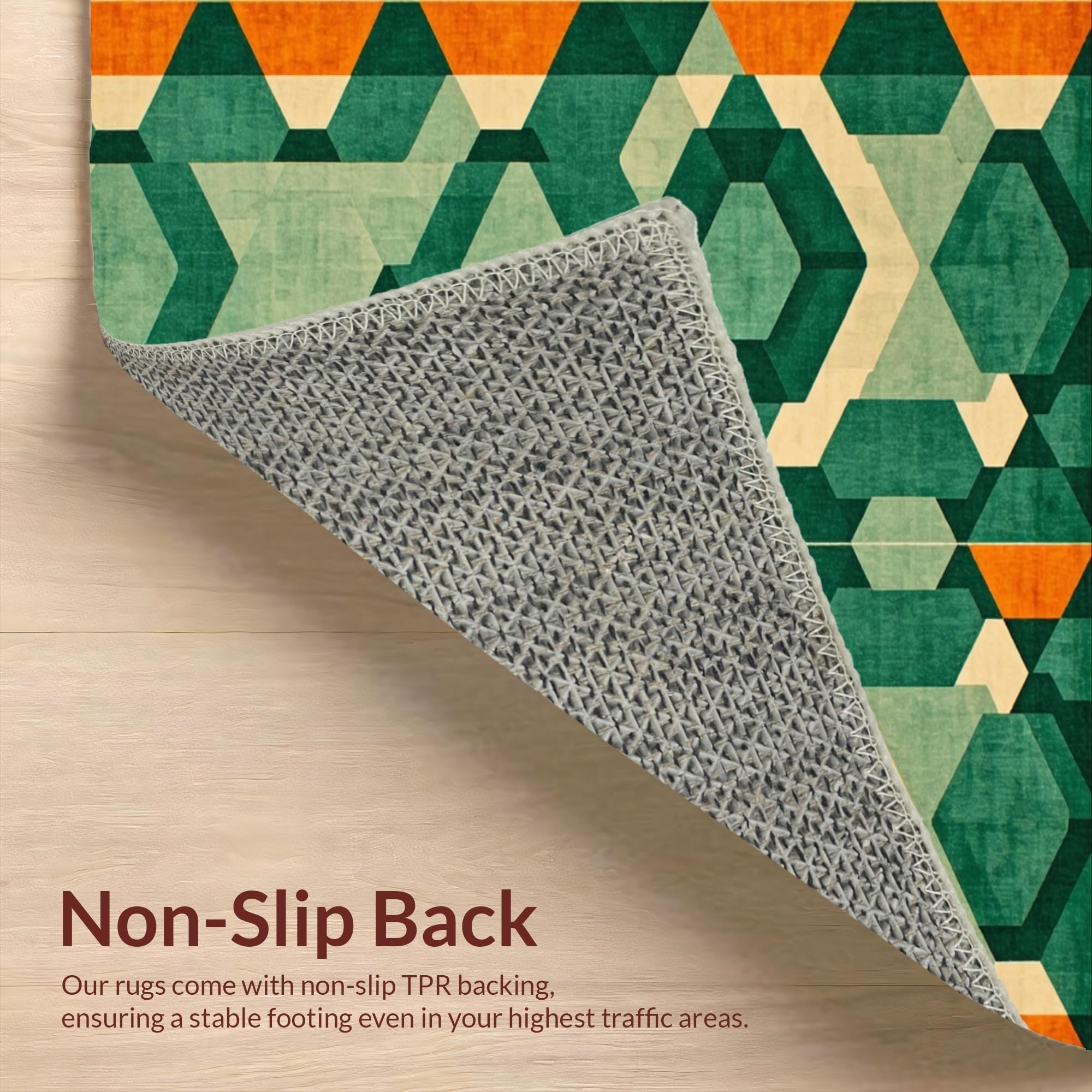 Ultra Soft Area Rug, Non Slip, Stain Resistant, Washable Area Rugs for Living Room, Bedroom, Earthy Tones Abstract Tiled Motif(Green) Overview: