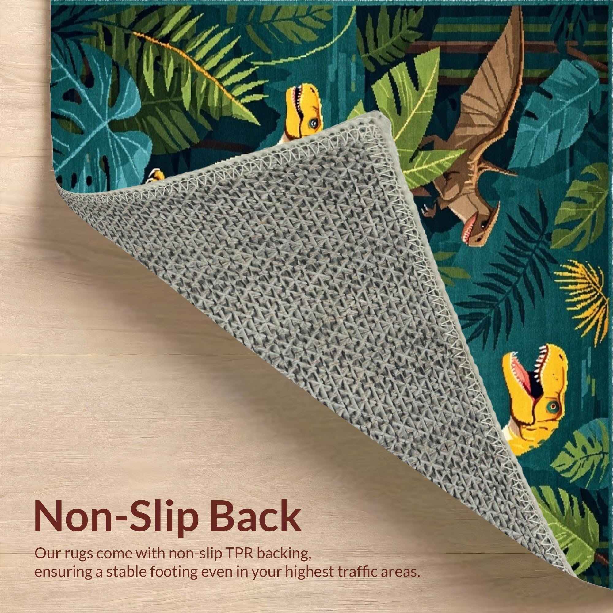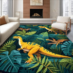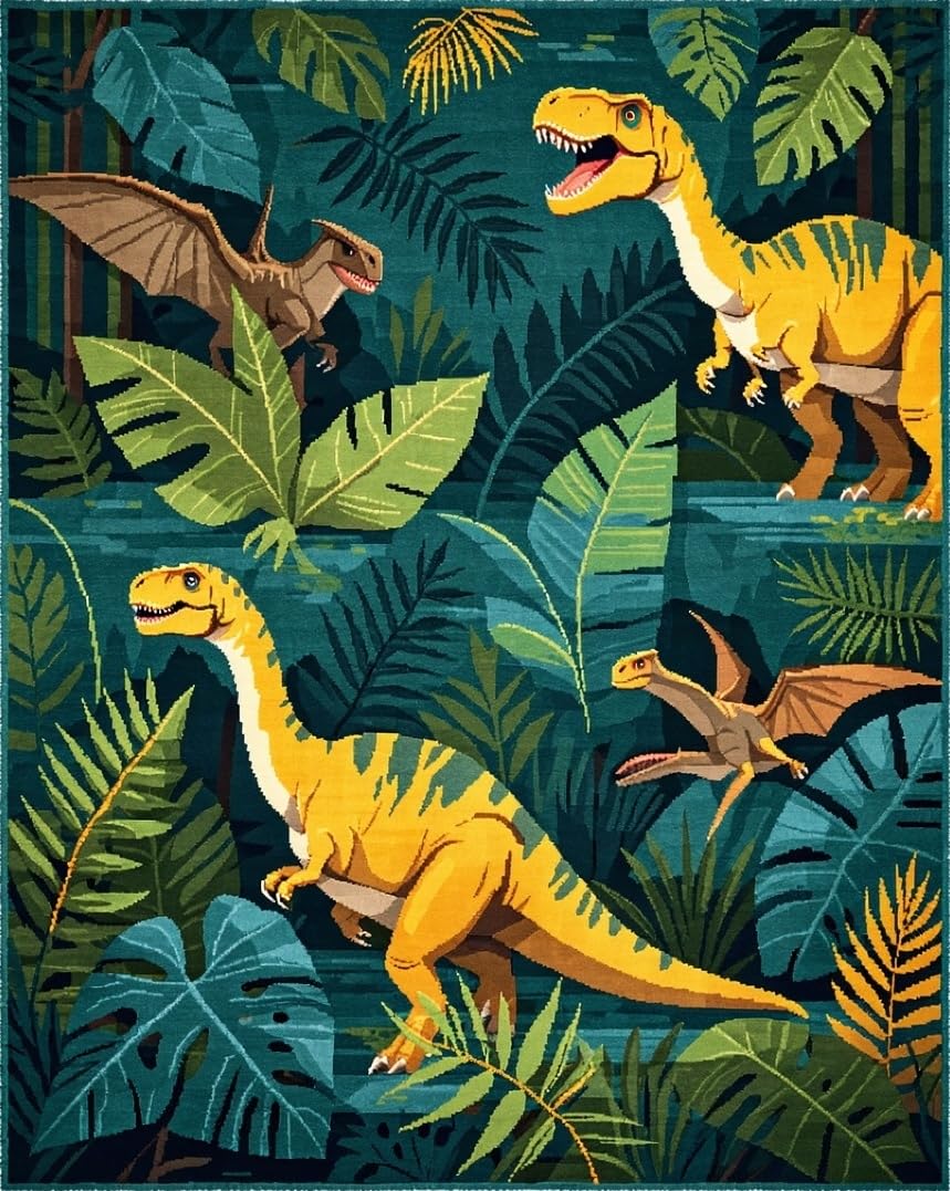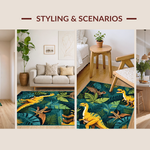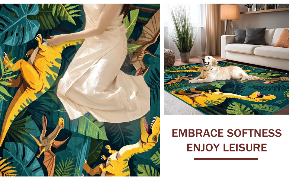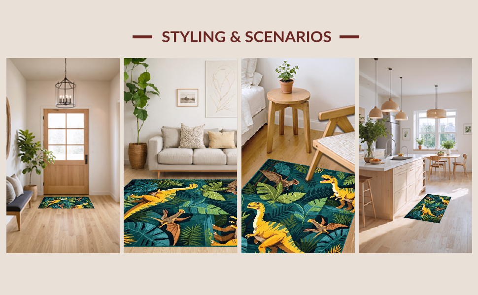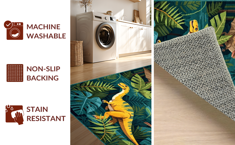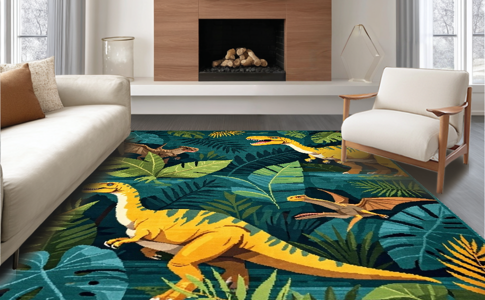 Ultra Soft Area Rug, Non Slip, Stain Resistant, Washable Area Rugs for Living Room, Bedroom, Earthy Tones Dinosaur Motif(Green) Overview: