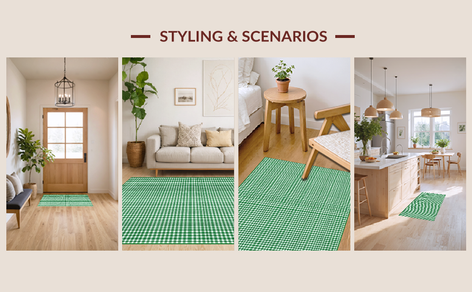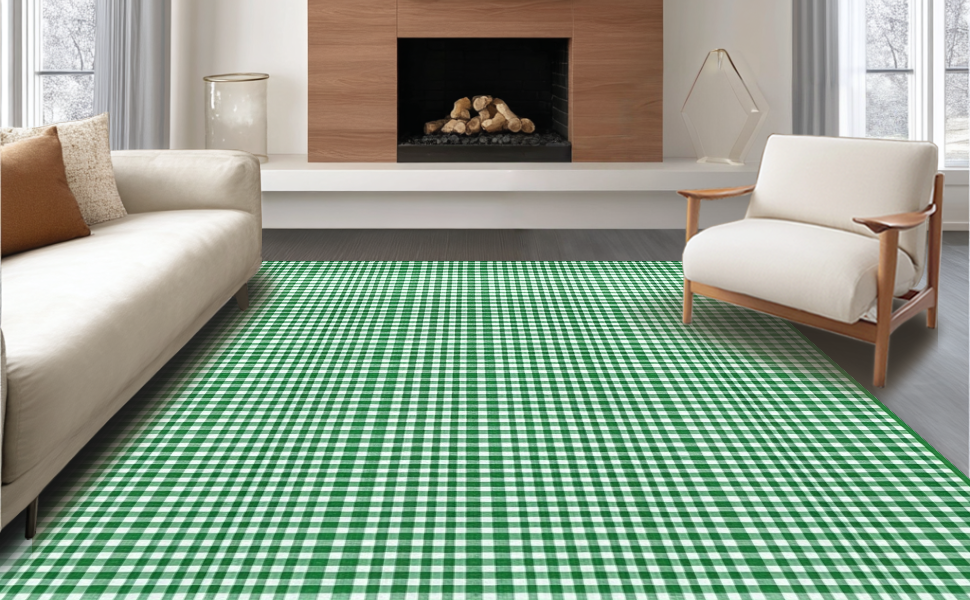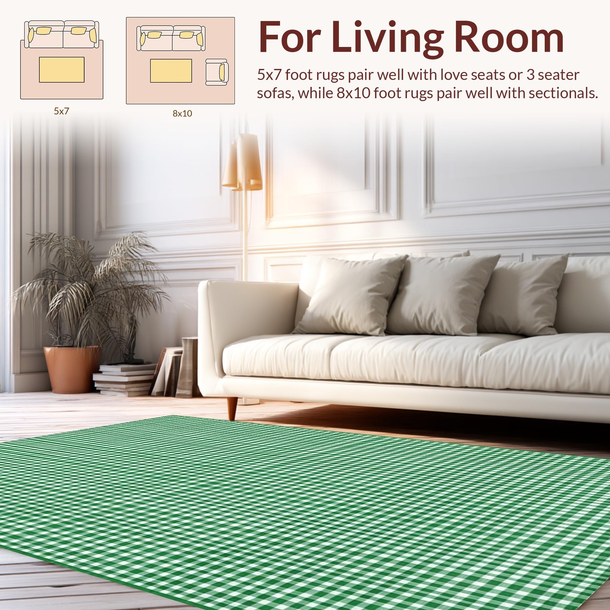 Ultra Soft Area Rug, Non Slip, Stain Resistant, Washable Area Rugs for Living Room, Bedroom, Earthy Tones Ogee Patterned Accent(Green) Overview: