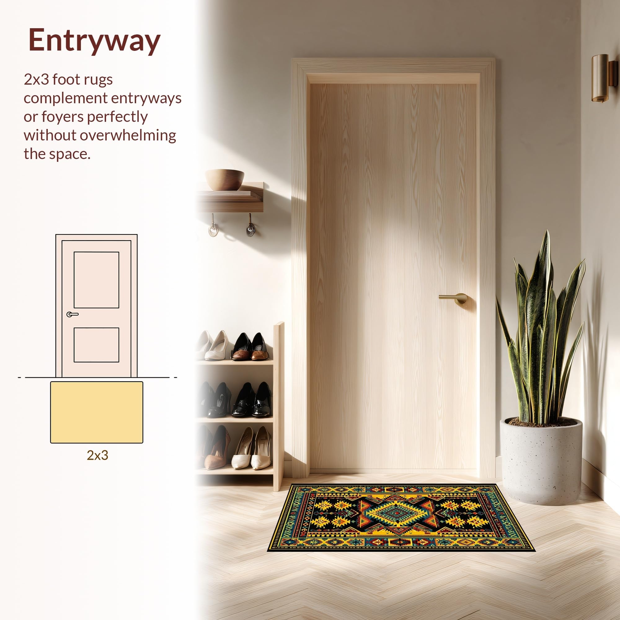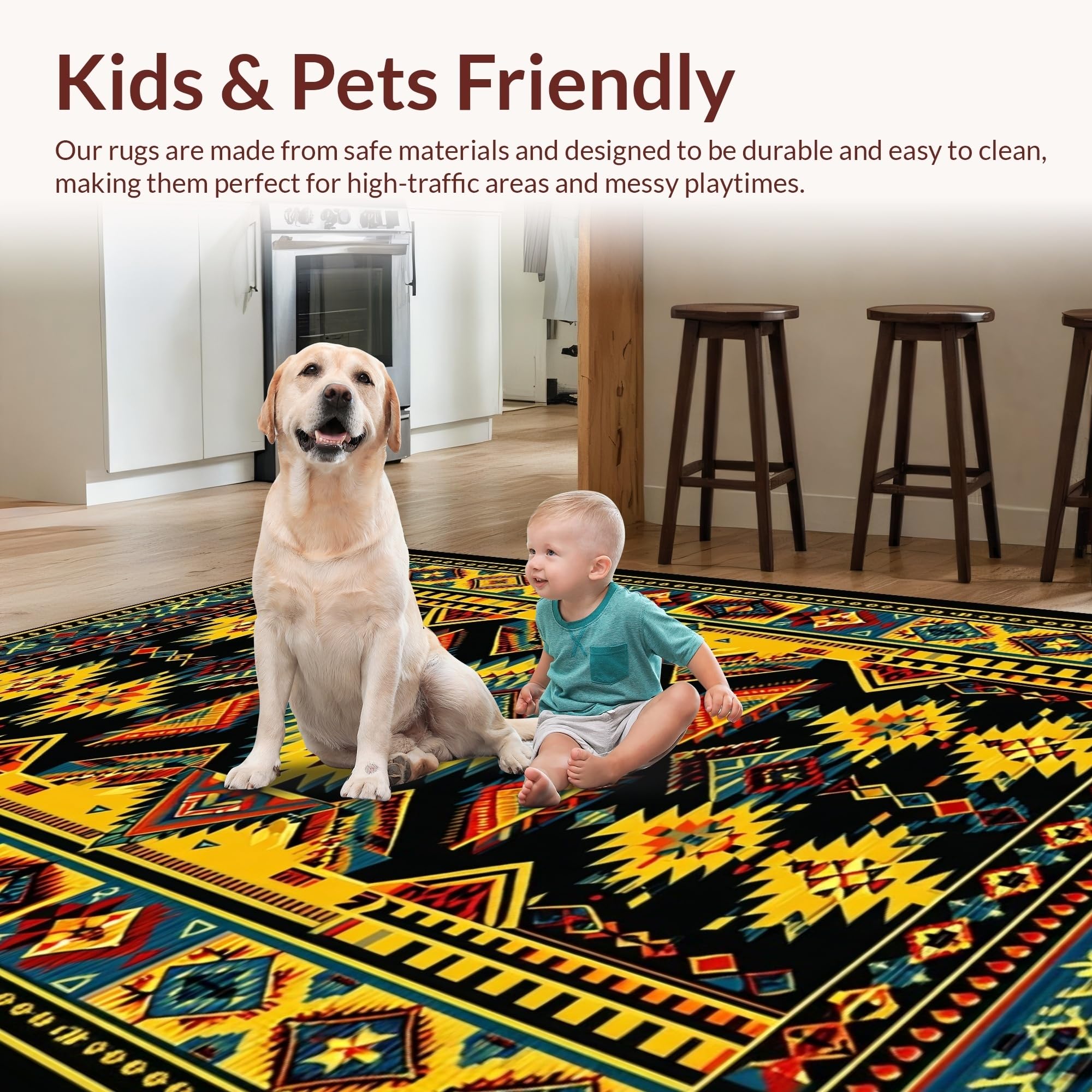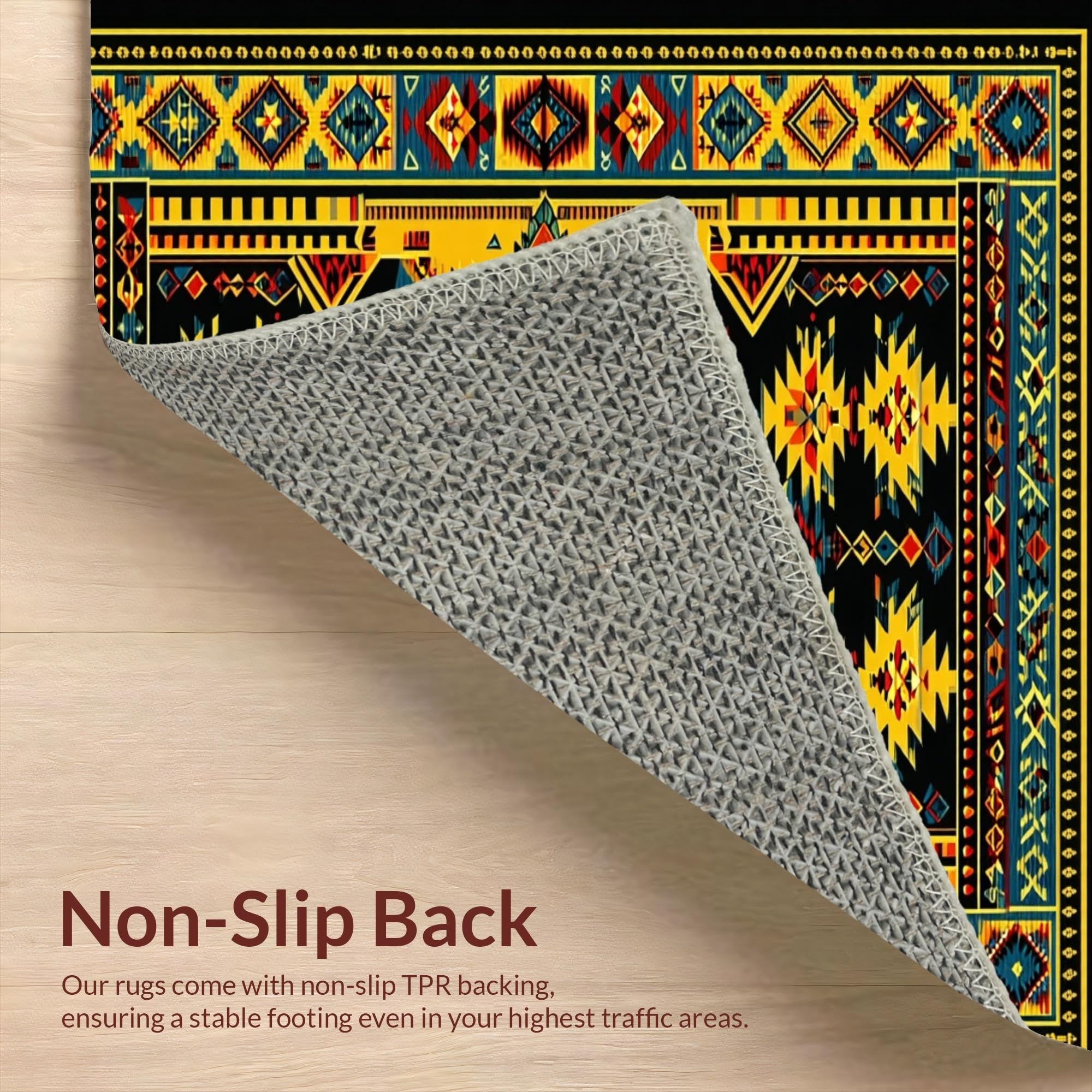 Ultra Soft Area Rug, Non Slip, Stain Resistant, Washable Area Rugs for Living Room, Bedroom, Earthy Tones with Rustic Appeal(Black) Overview: