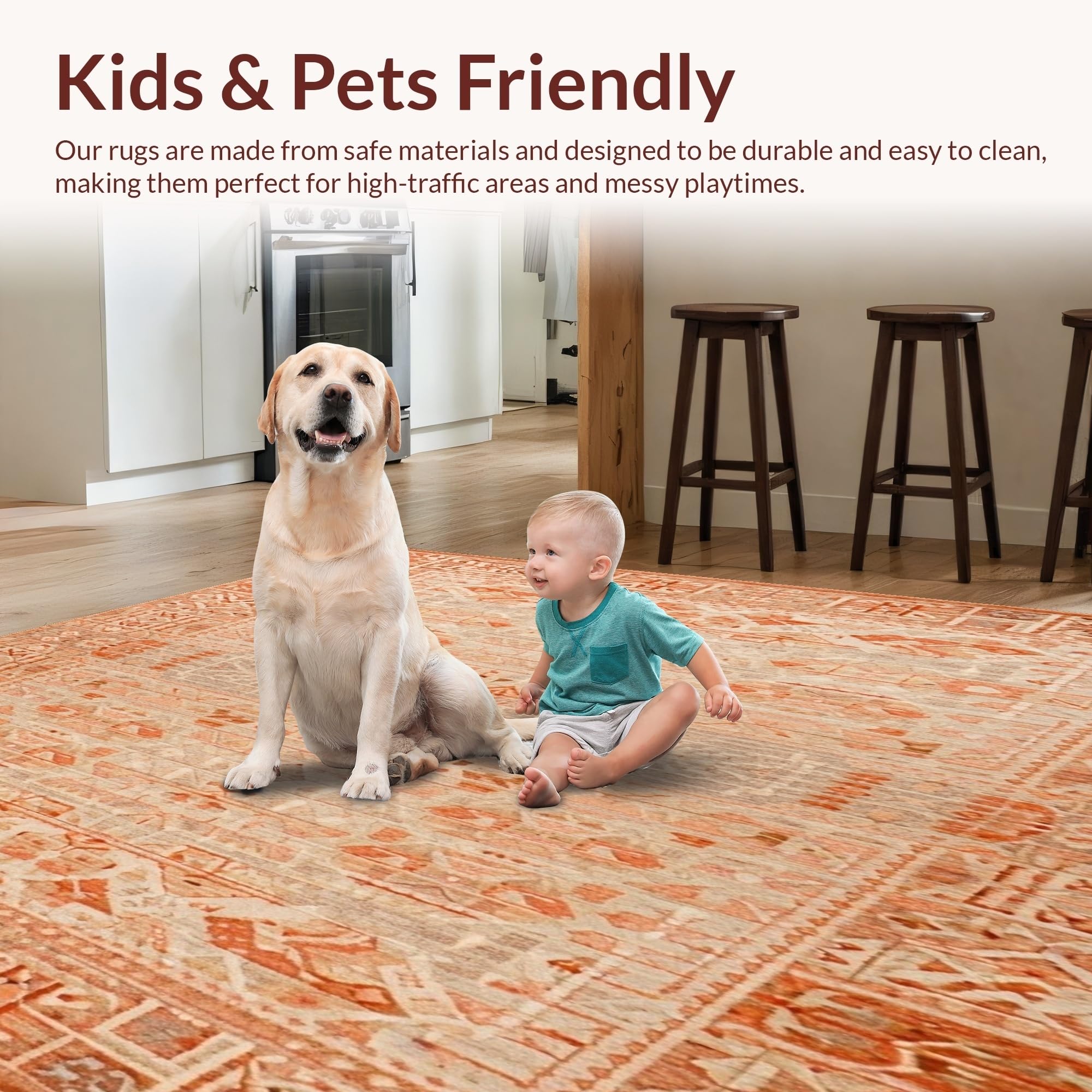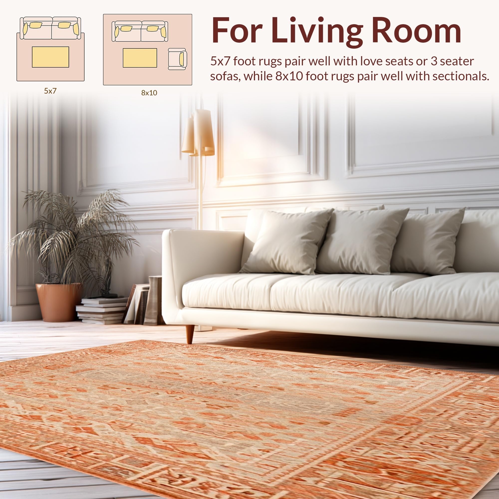 Ultra Soft Area Rug, Non Slip, Stain Resistant, Washable Area Rugs for Living Room, Bedroom, Earthy Tones(Orange) Overview: