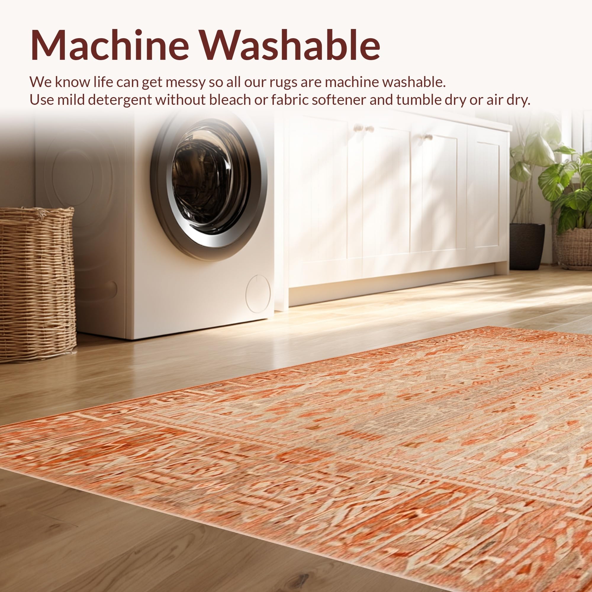 - Machine Washable: Our rugs can be easily thrown in the wash machine.