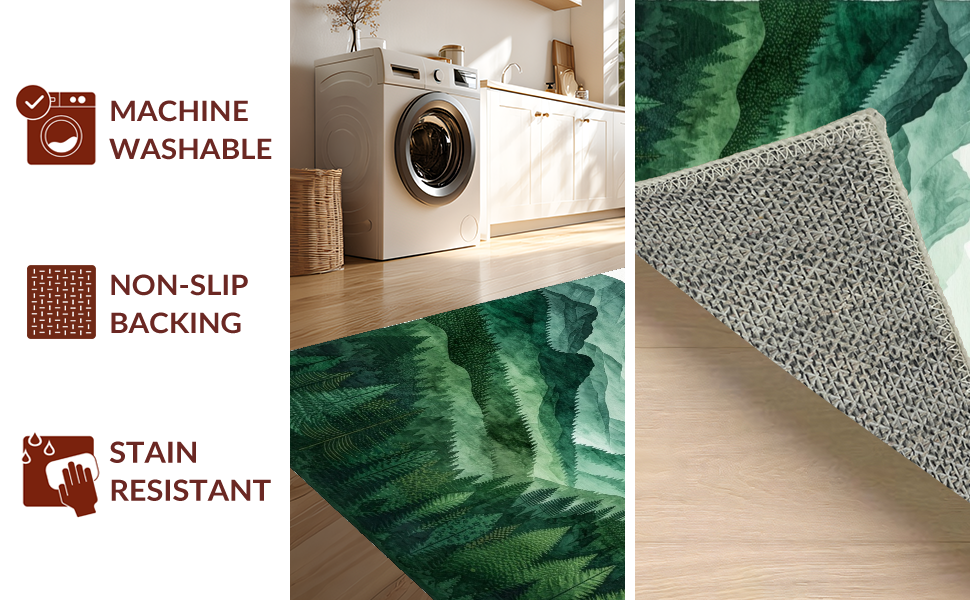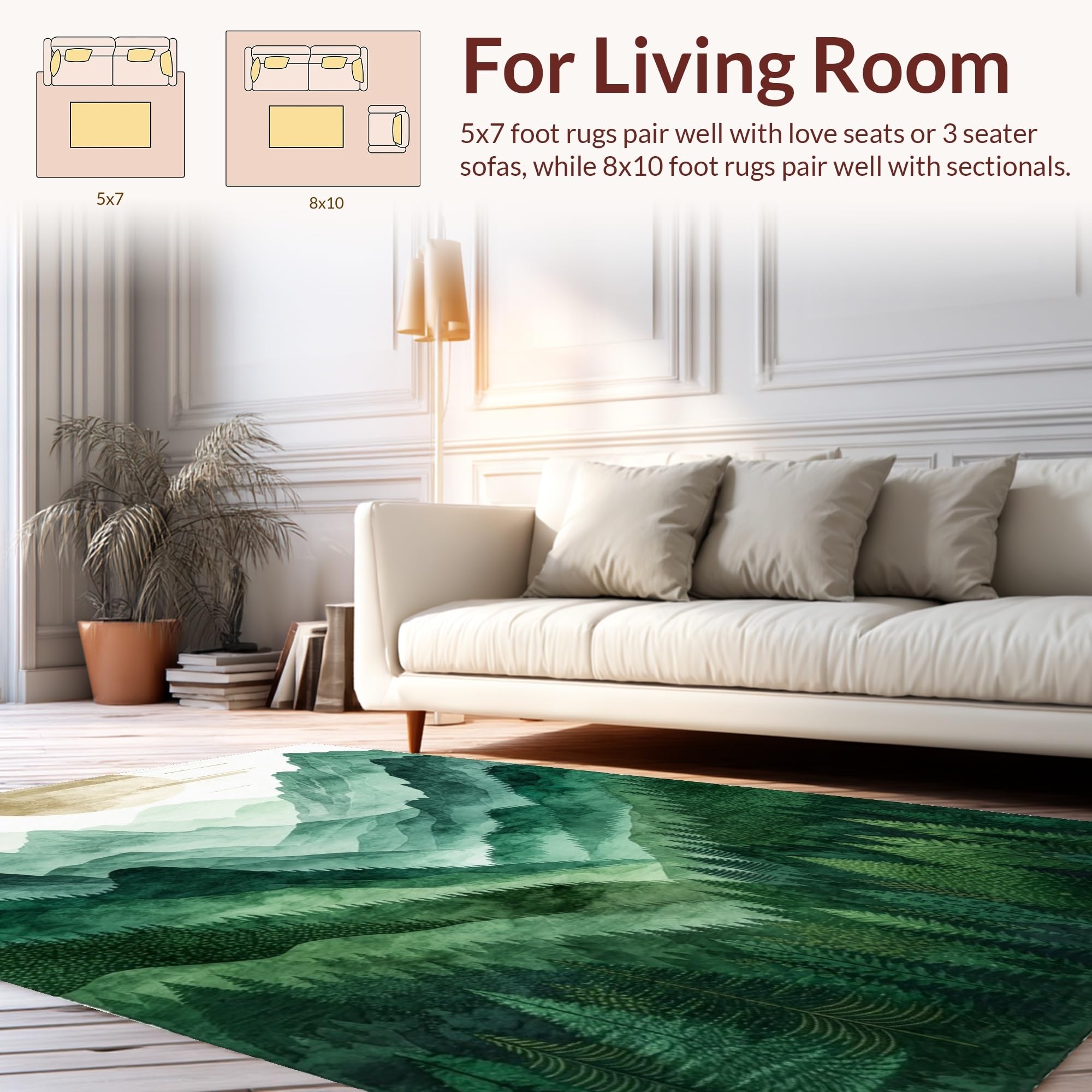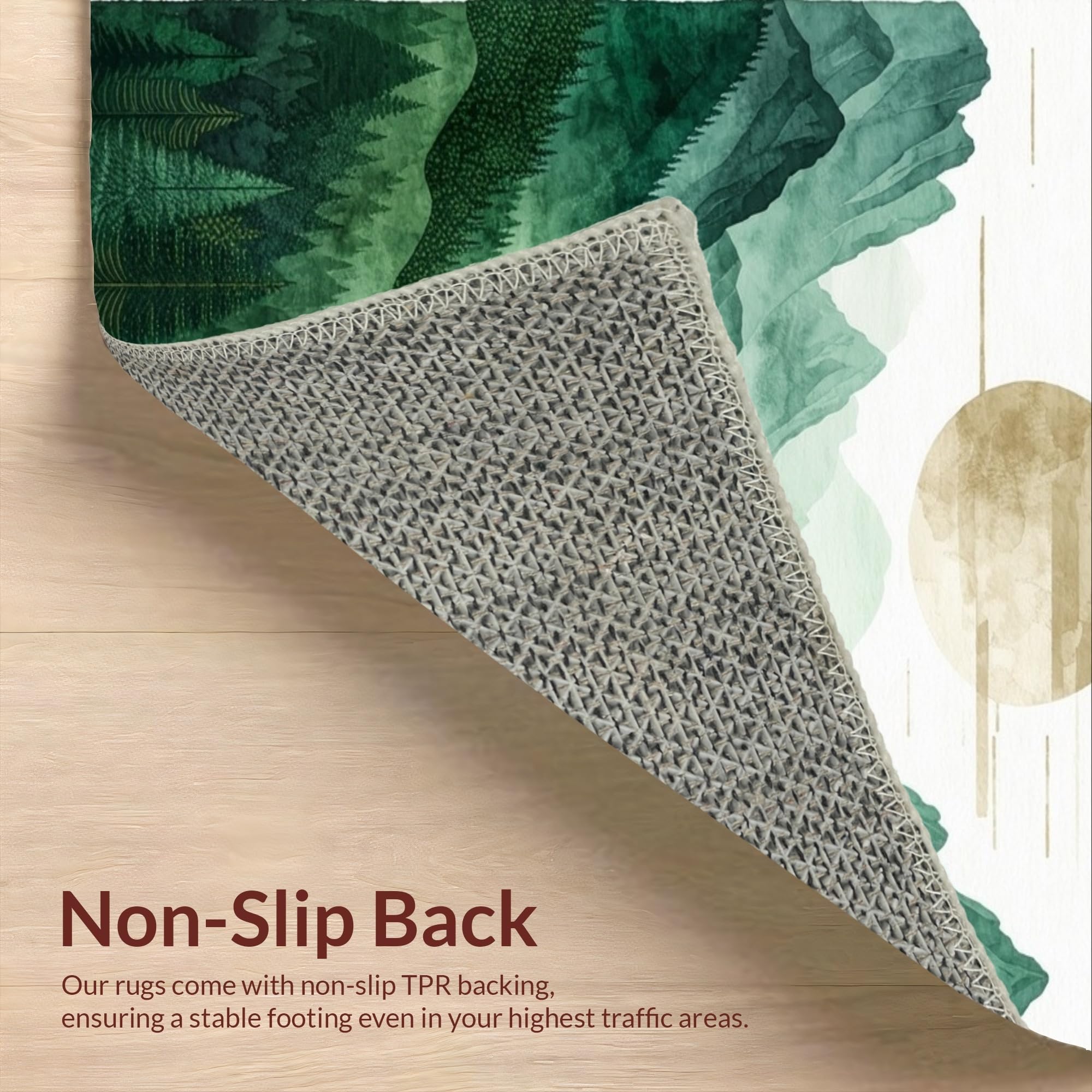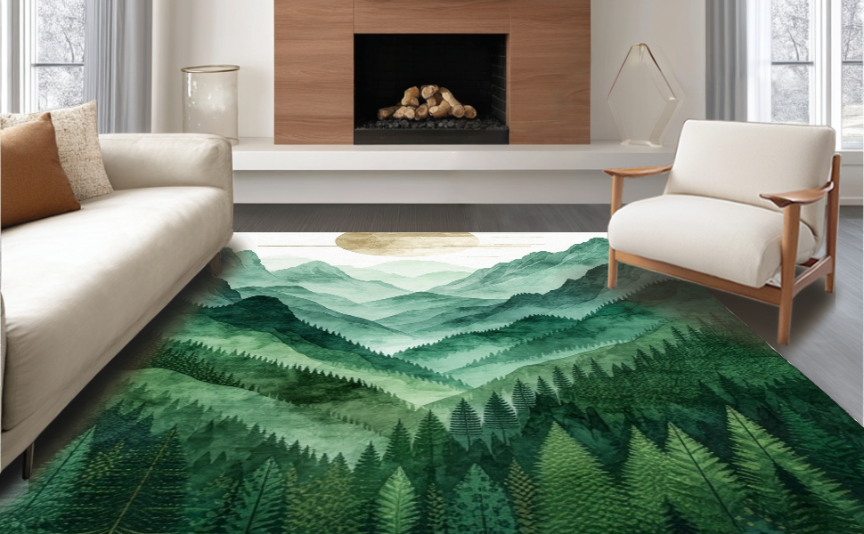 Ultra Soft Area Rug, Non Slip, Stain Resistant, Washable Area Rugs for Living Room, Bedroom, Earthy Watercolor Mountain Landscape(Green) Overview: