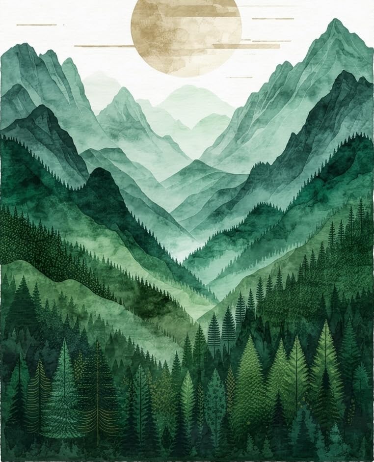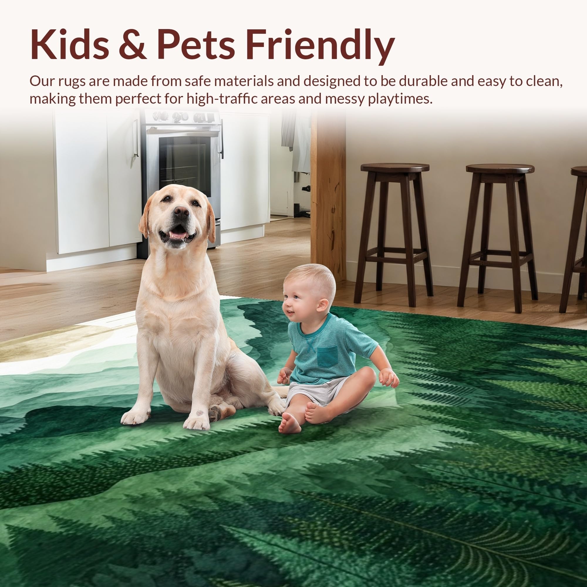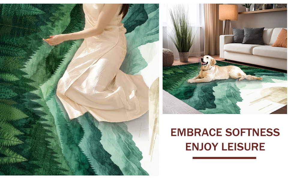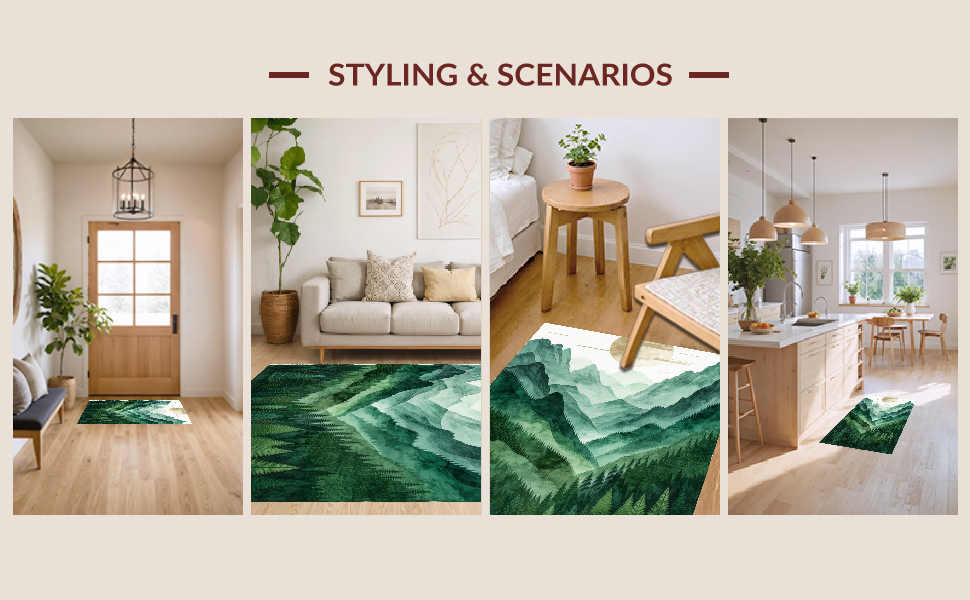 Ultra Soft Area Rug, Non Slip, Stain Resistant, Washable Area Rugs for Living Room, Bedroom, Earthy Watercolor Mountain Landscape(Green) Overview:
