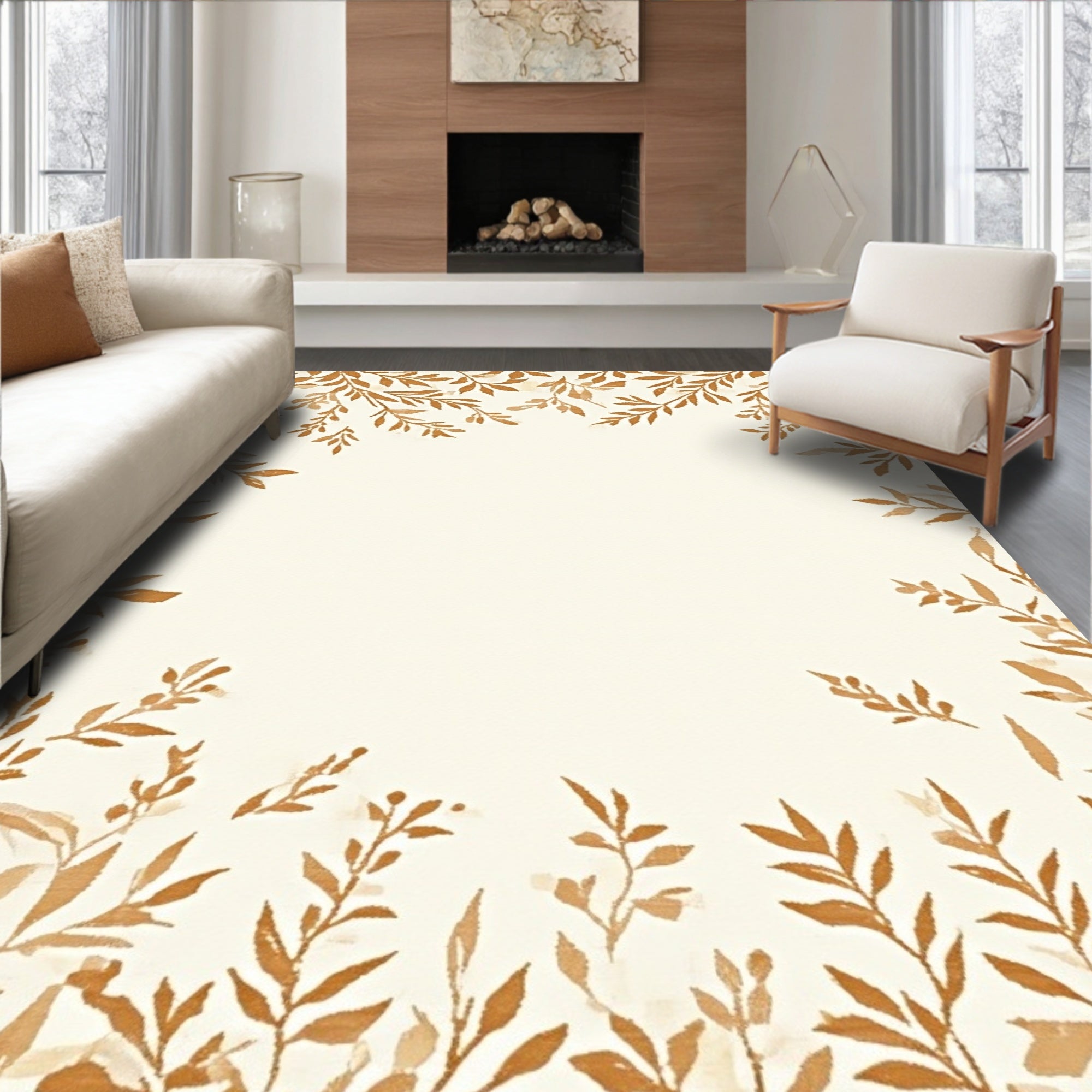 Ultra Soft Area Rug, Non Slip, Stain Resistant, Washable Area Rugs for Living Room, Bedroom, Easy Care Beige Brown Leaf Indoor(Beige) Overview: