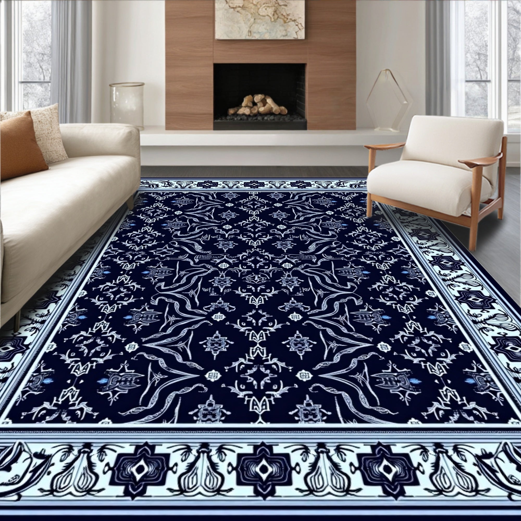 Ultra Soft Area Rug, Non Slip, Stain Resistant, Washable Area Rugs for Living Room, Bedroom, Easy Clean Subtle Paisley Damask Print(Black) Overview: