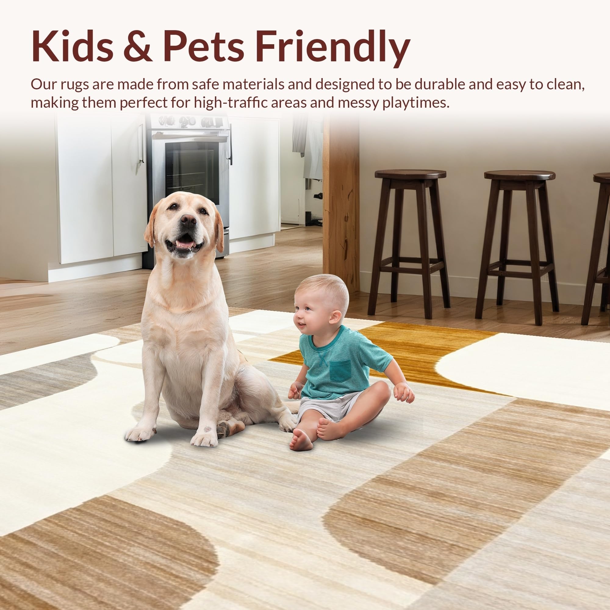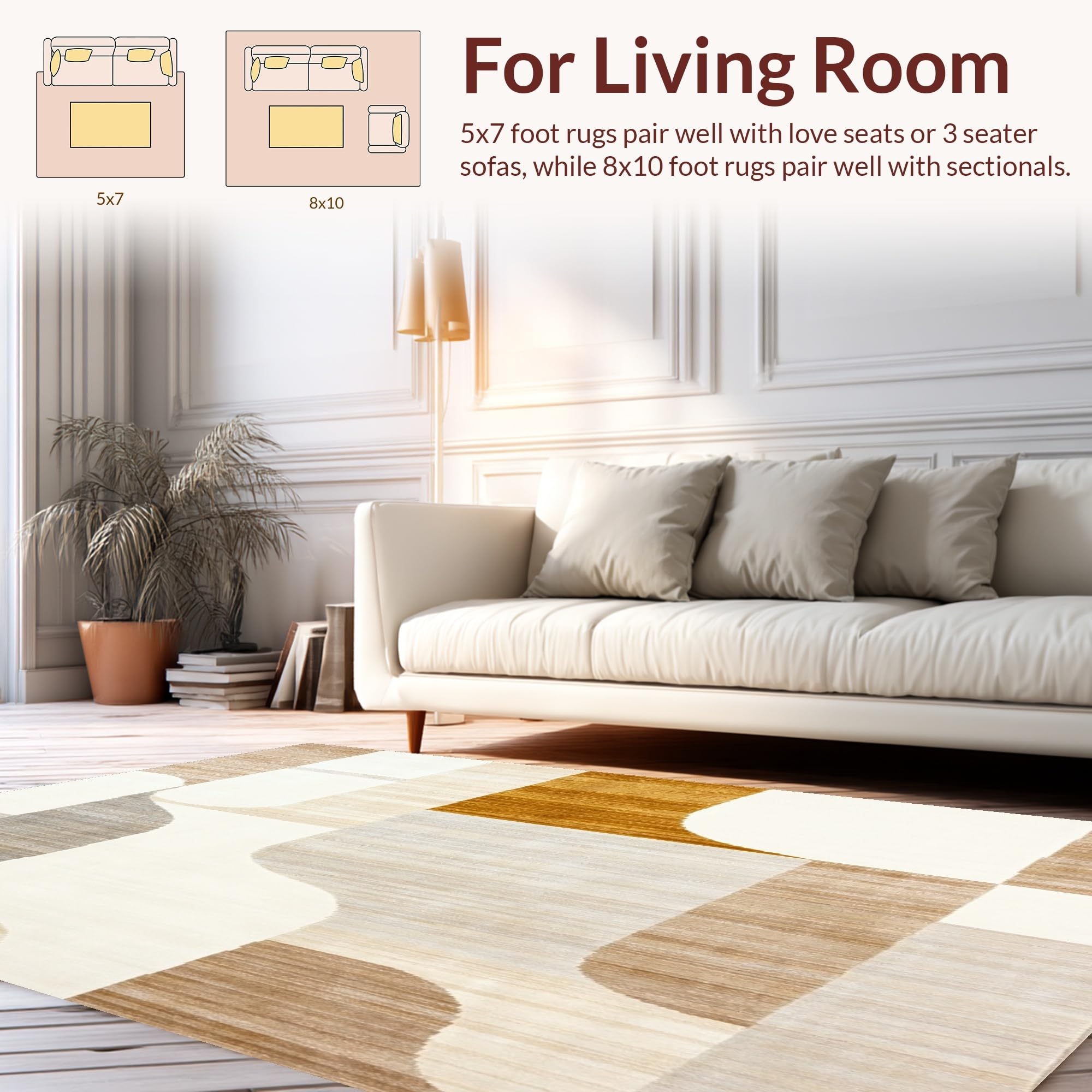 Ultra Soft Area Rug, Non Slip, Stain Resistant, Washable Area Rugs for Living Room, Bedroom, Easy Cleaning Abstract Sculptural Beige Cream Area(Beige) Overview: