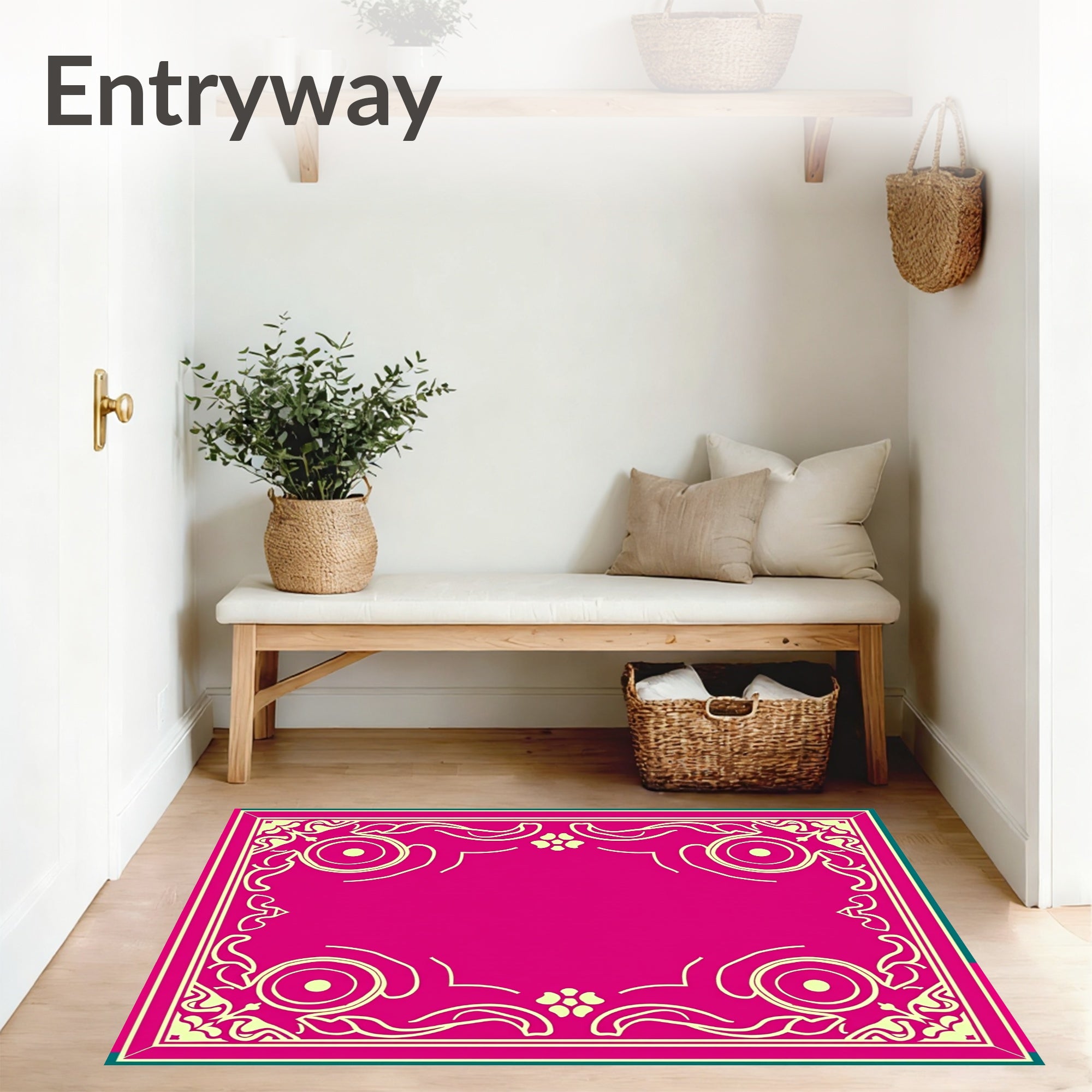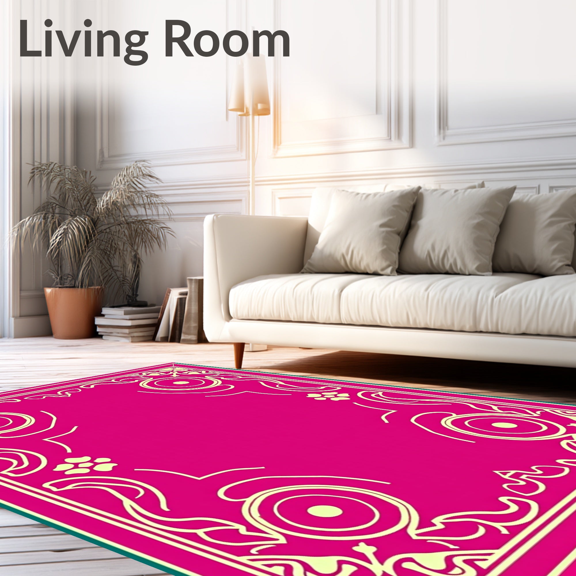 Ultra Soft Area Rug, Non Slip, Stain Resistant, Washable Area Rugs for Living Room, Bedroom, Eccentric Furry Friend Design Unconventional Yuletide Accent(Pink) Overview: