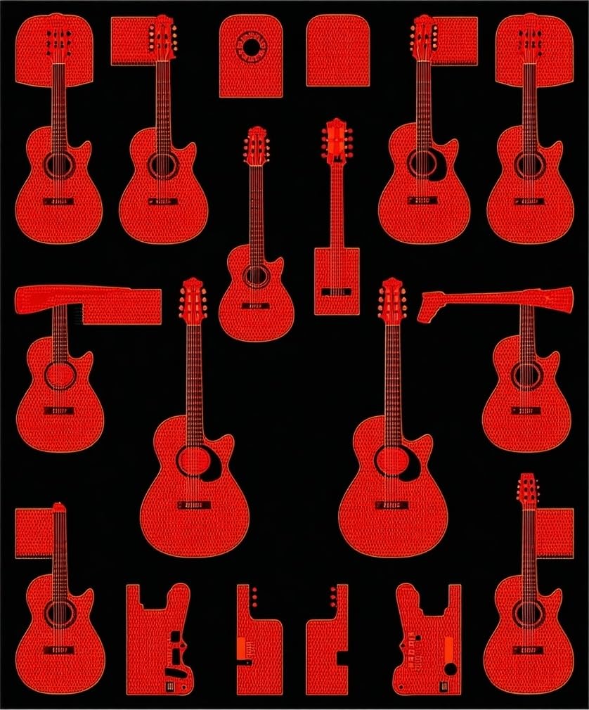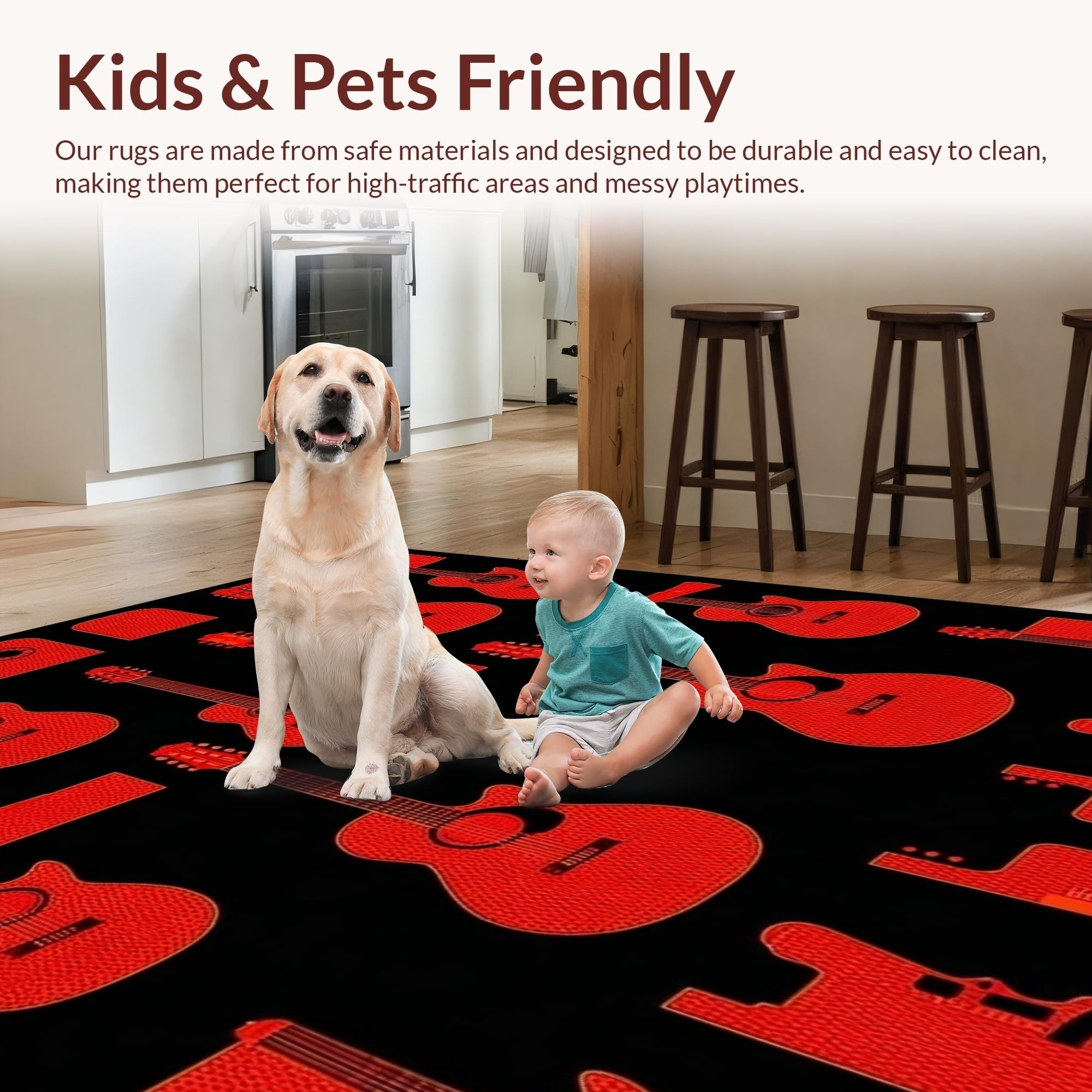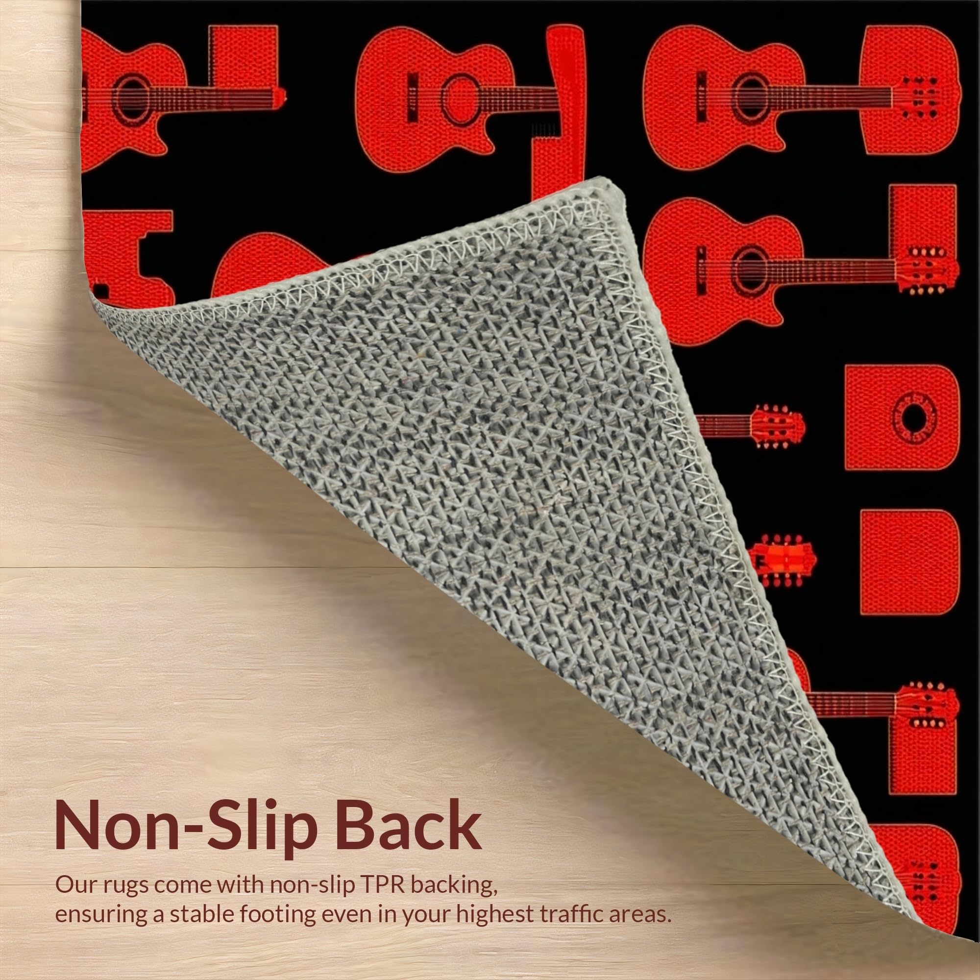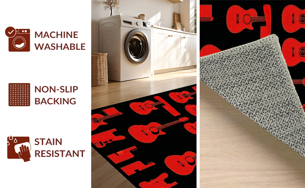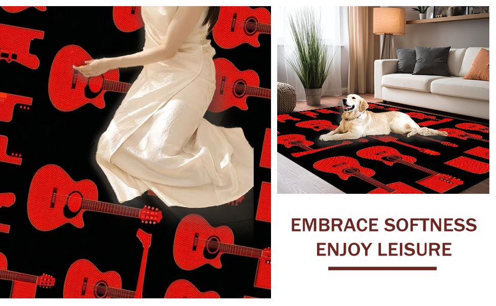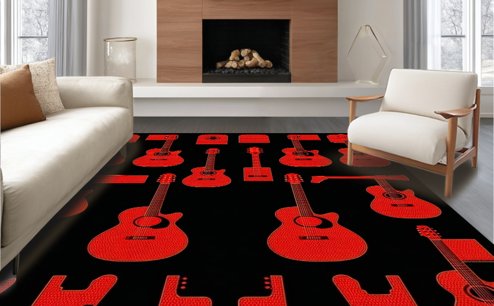 Ultra Soft Area Rug, Non Slip, Stain Resistant, Washable Area Rugs for Living Room, Bedroom, Eclectic Abstract Musical Design Elements(Red) Overview: