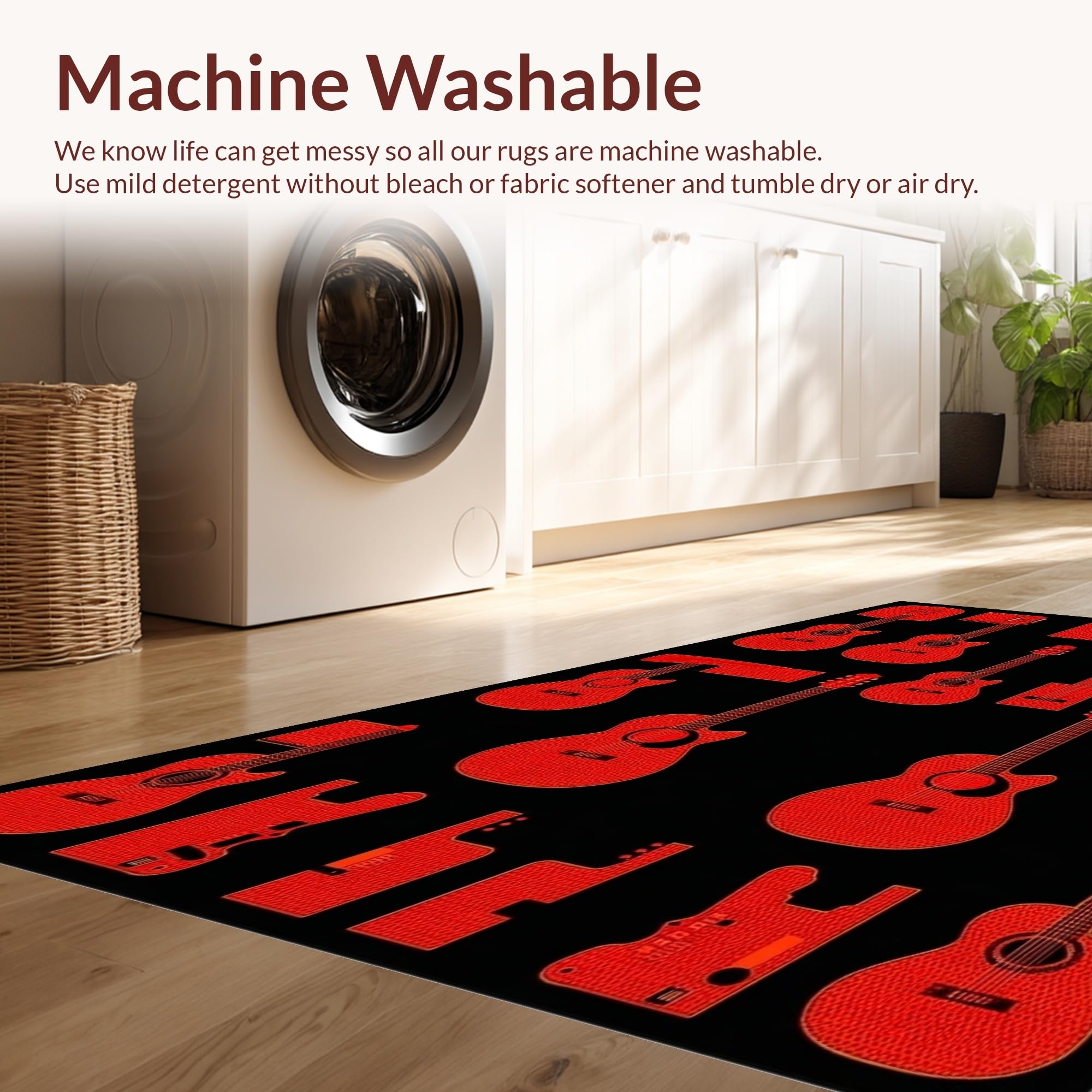 - Machine Washable: Our rugs can be easily thrown in the wash machine.