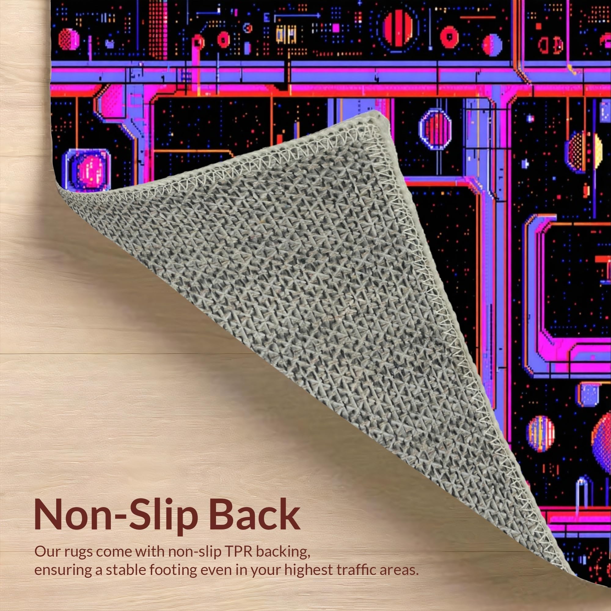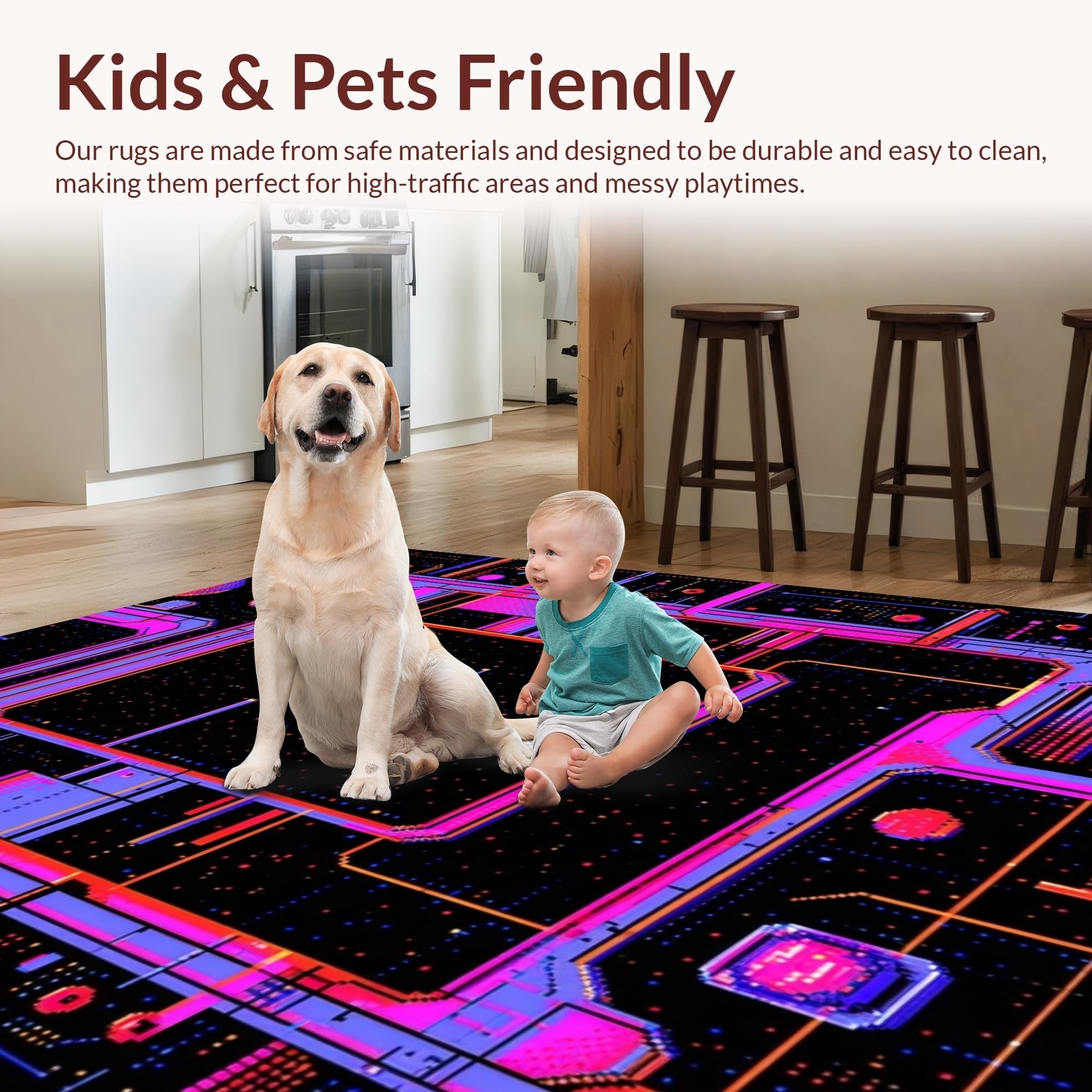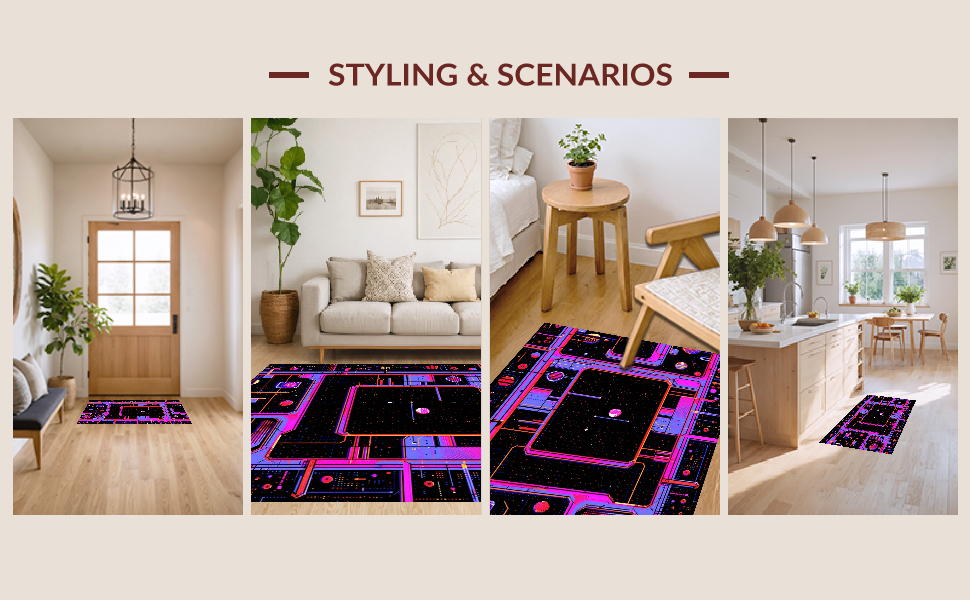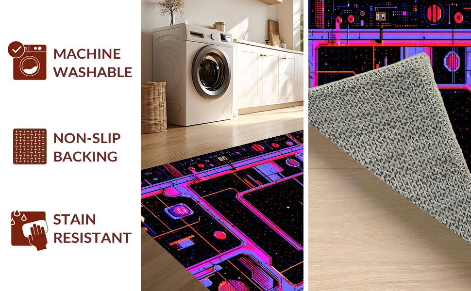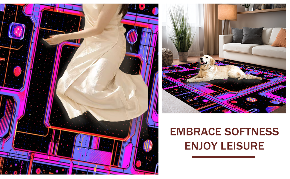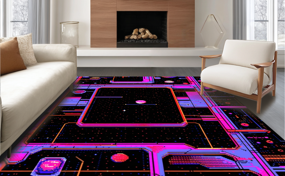 Ultra Soft Area Rug, Non Slip, Stain Resistant, Washable Area Rugs for Living Room, Bedroom, Eclectic Arcade Color Fusion(Black) Overview: