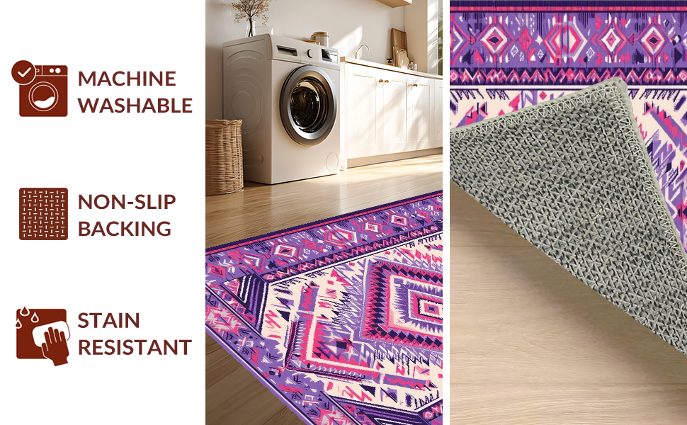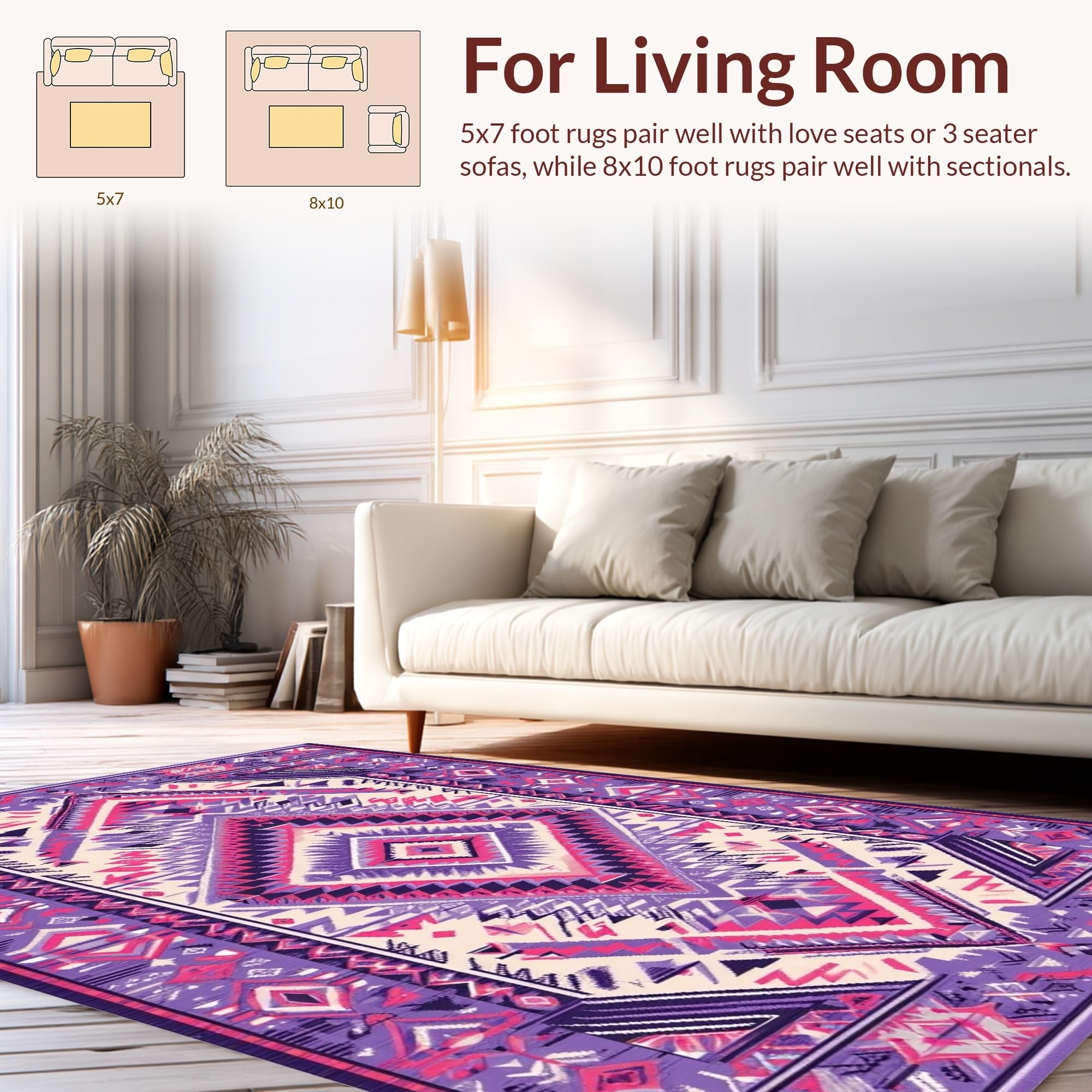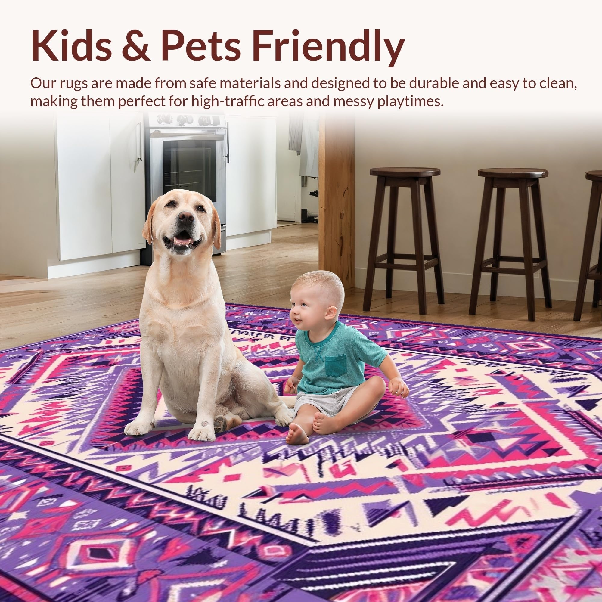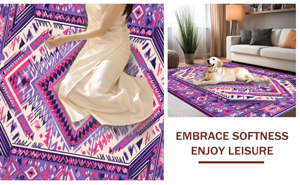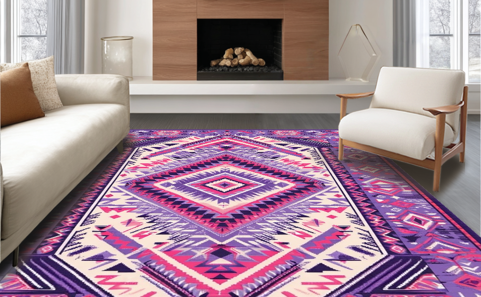 Ultra Soft Area Rug, Non Slip, Stain Resistant, Washable Area Rugs for Living Room, Bedroom, Eclectic Aztec Vibrant Patterns(Purple) Overview:
