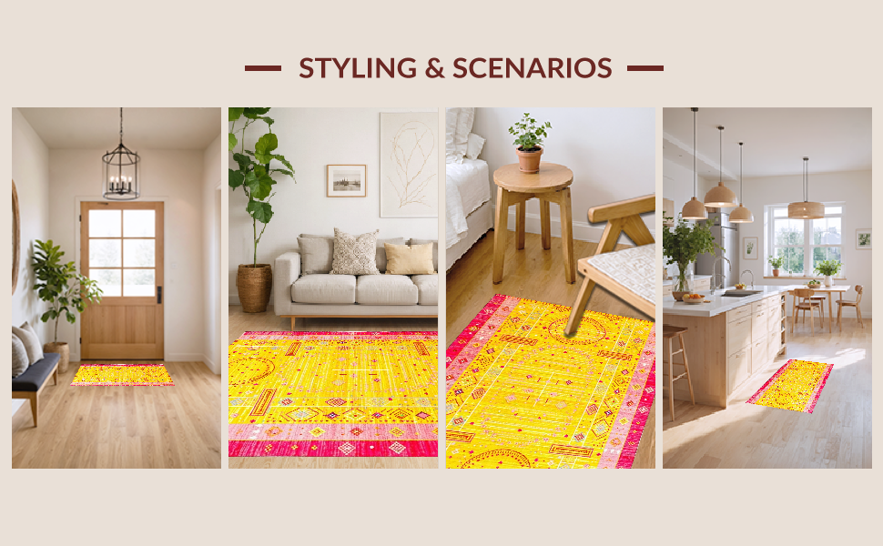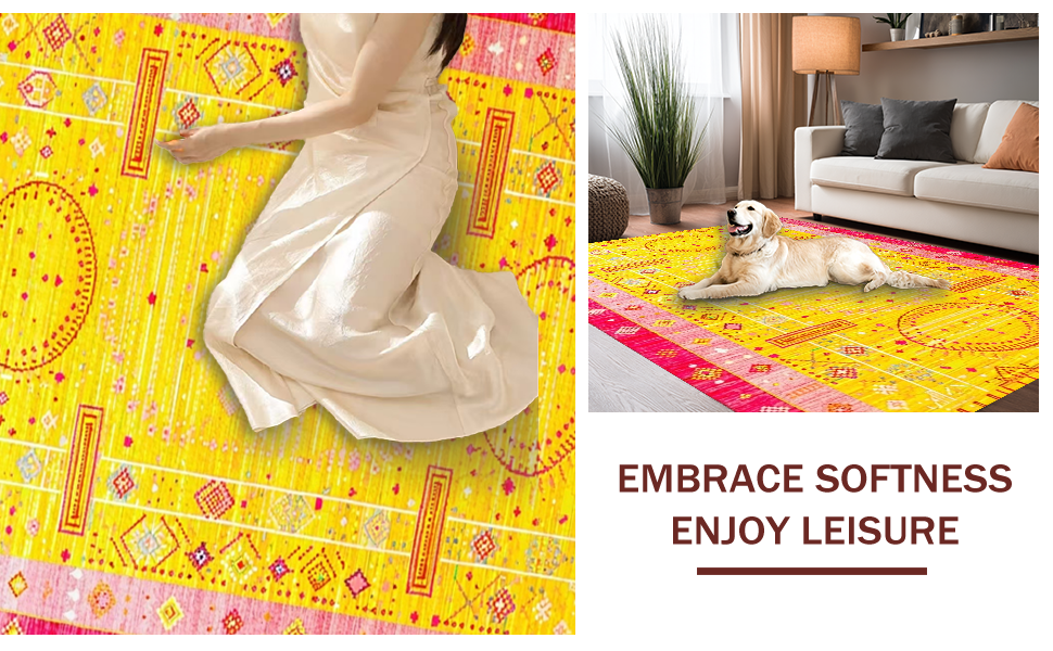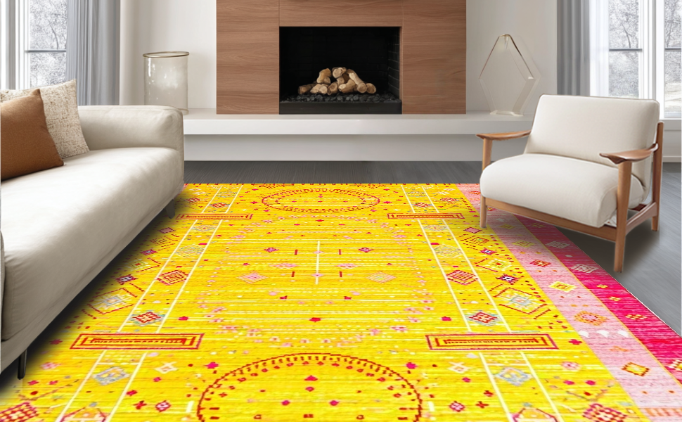 Ultra Soft Area Rug, Non Slip, Stain Resistant, Washable Area Rugs for Living Room, Bedroom, Eclectic Bright Sun Ray Pattern(Yellow) Overview: