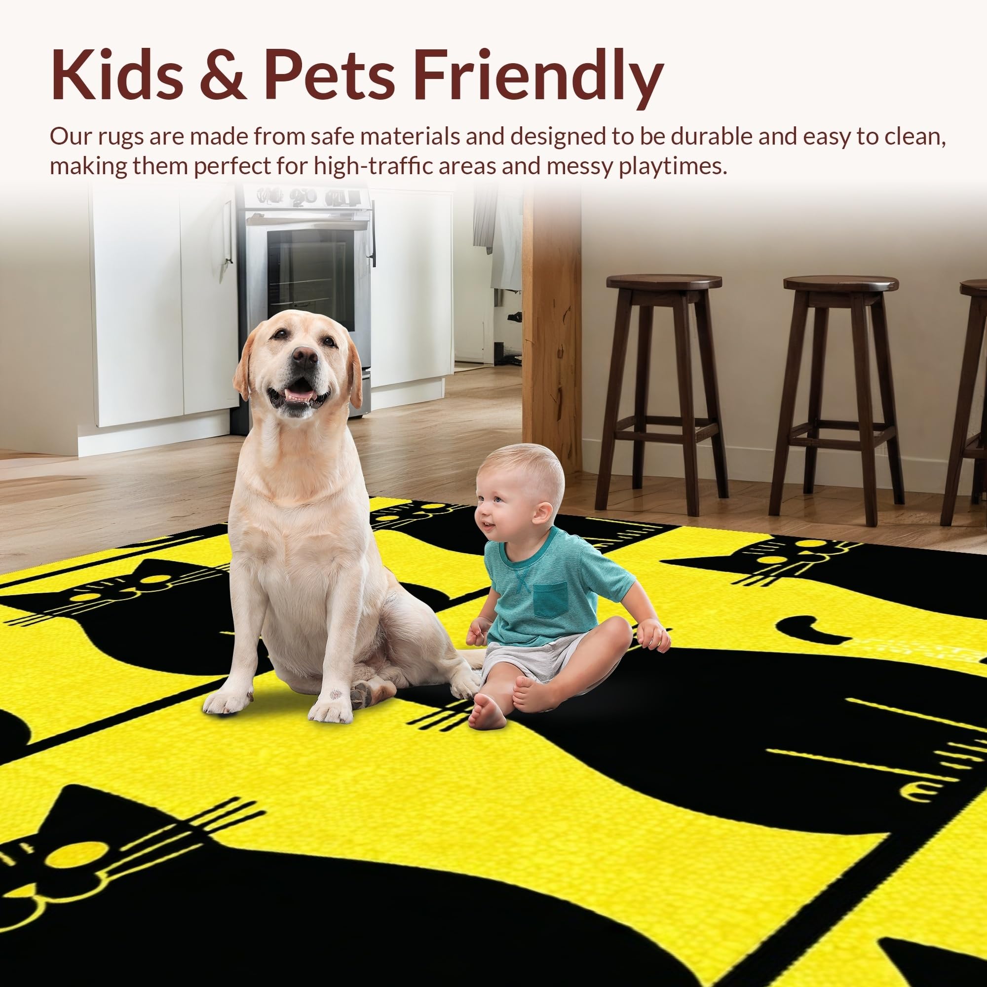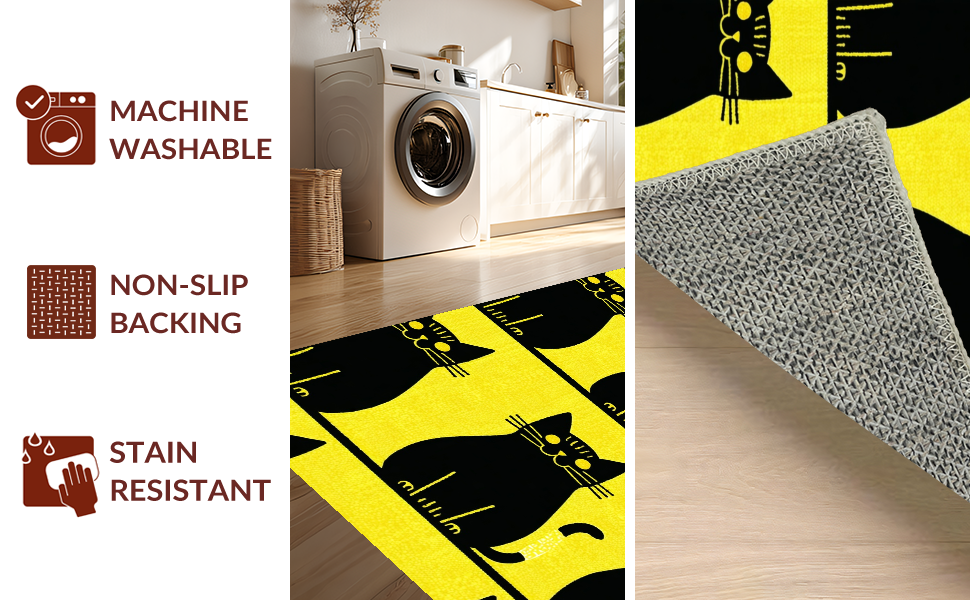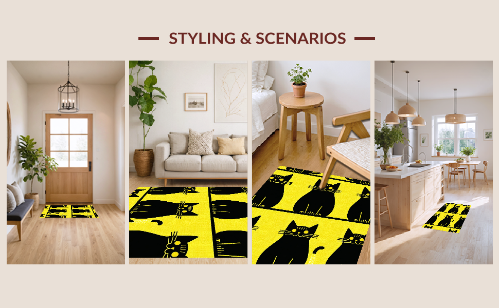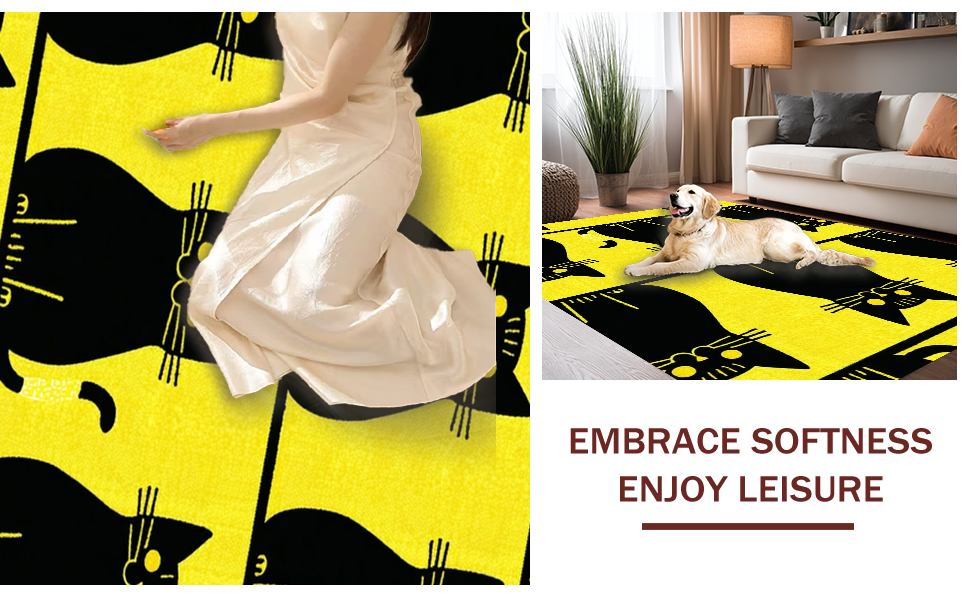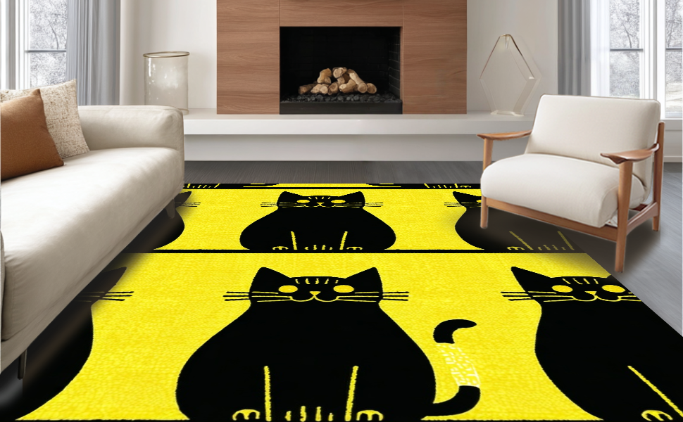 Ultra Soft Area Rug, Non Slip, Stain Resistant, Washable Area Rugs for Living Room, Bedroom, Eclectic Cat-Centric Decorative Piece(Yellow) Overview: