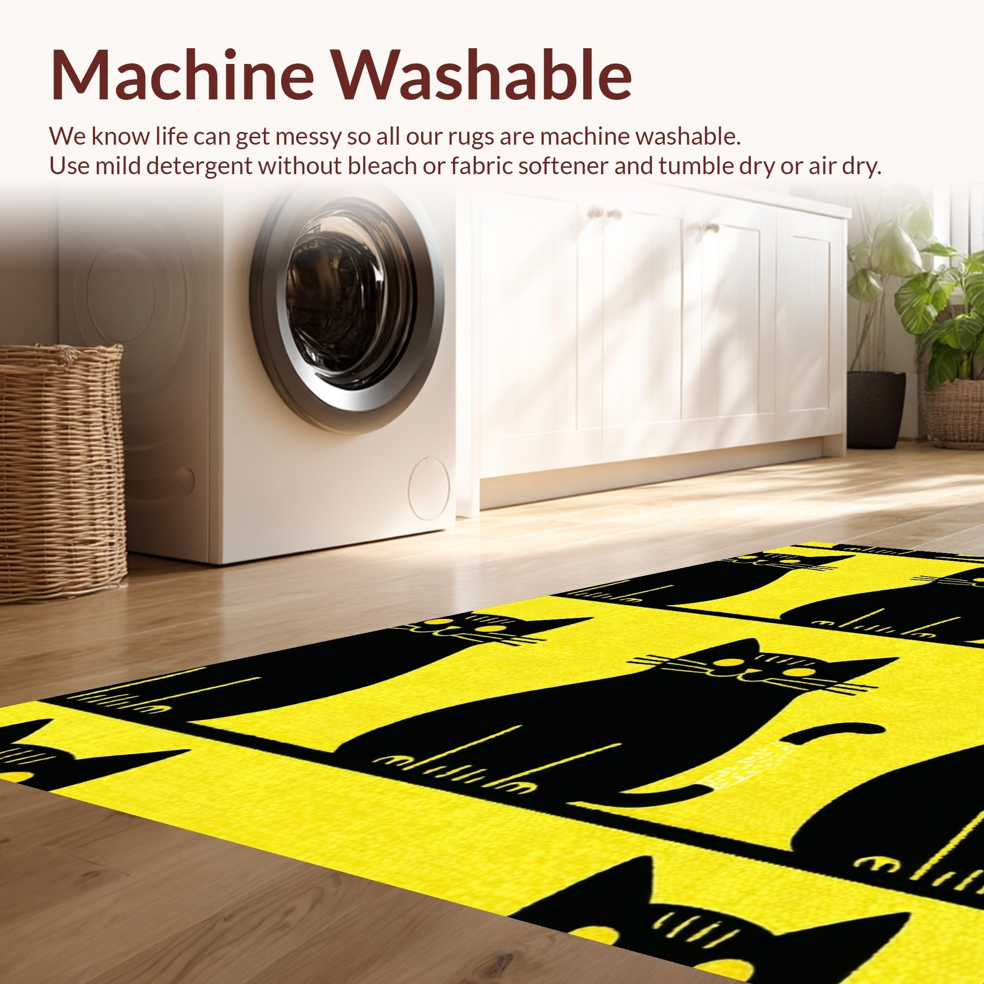- Machine Washable: Our rugs can be easily thrown in the wash machine.