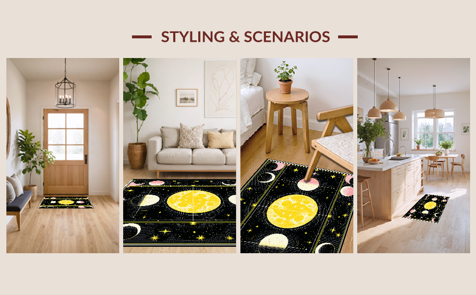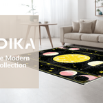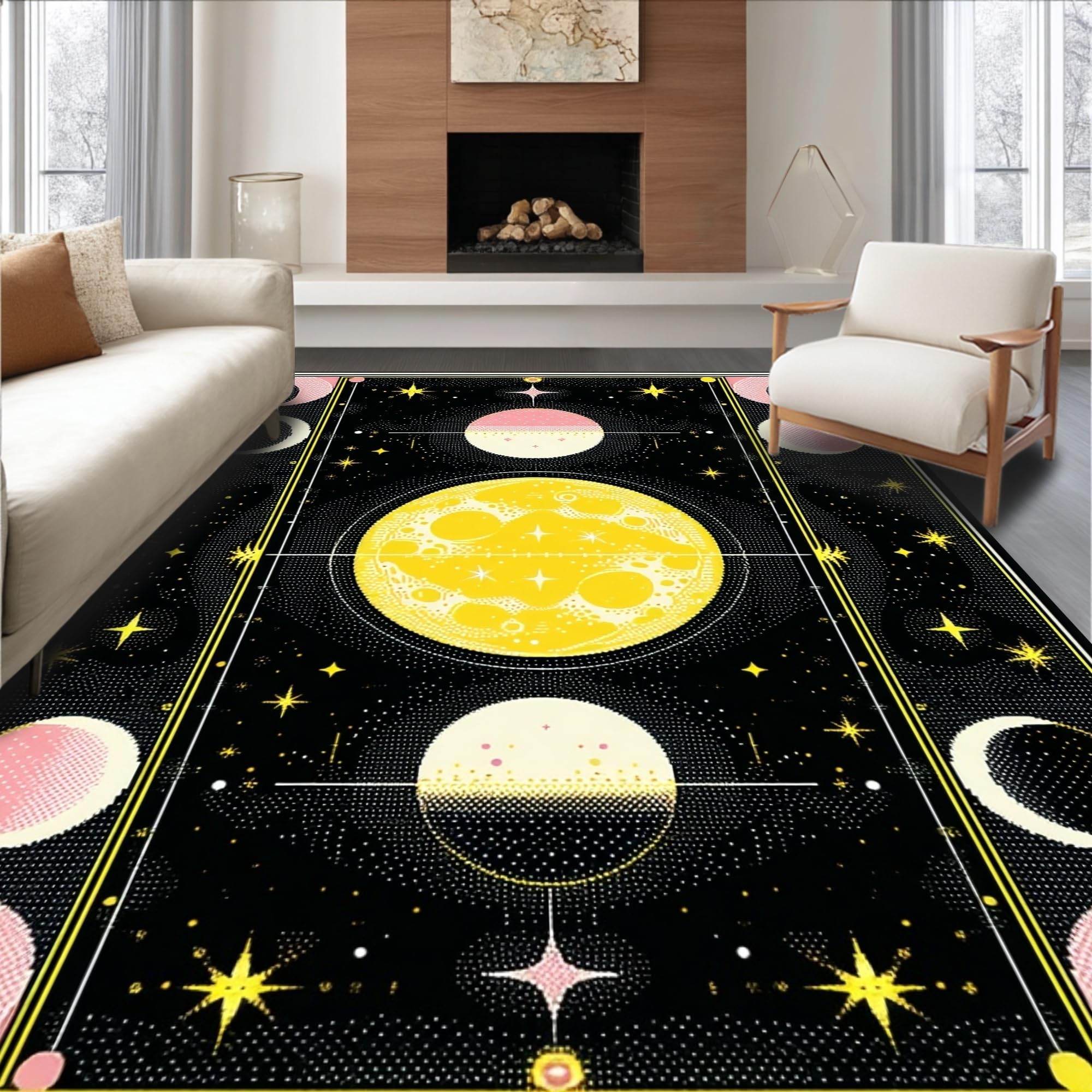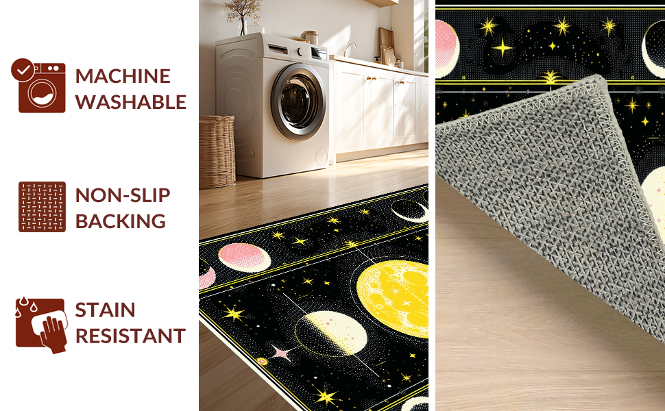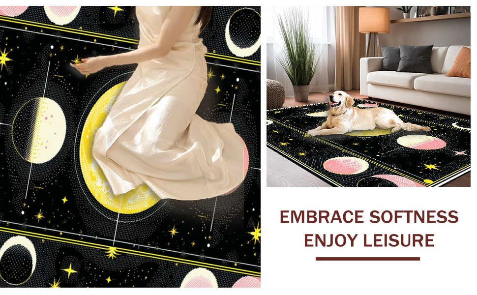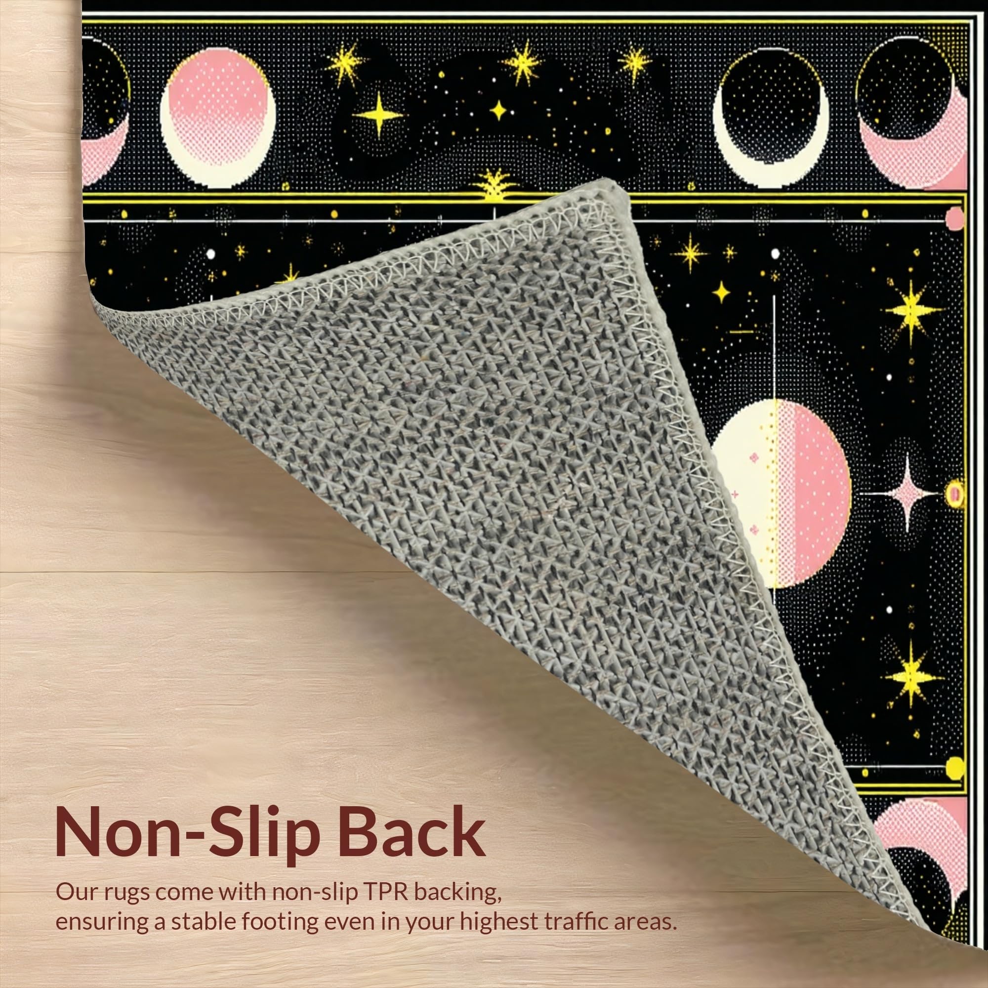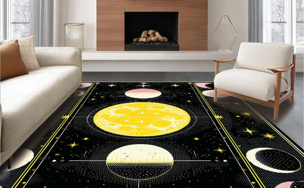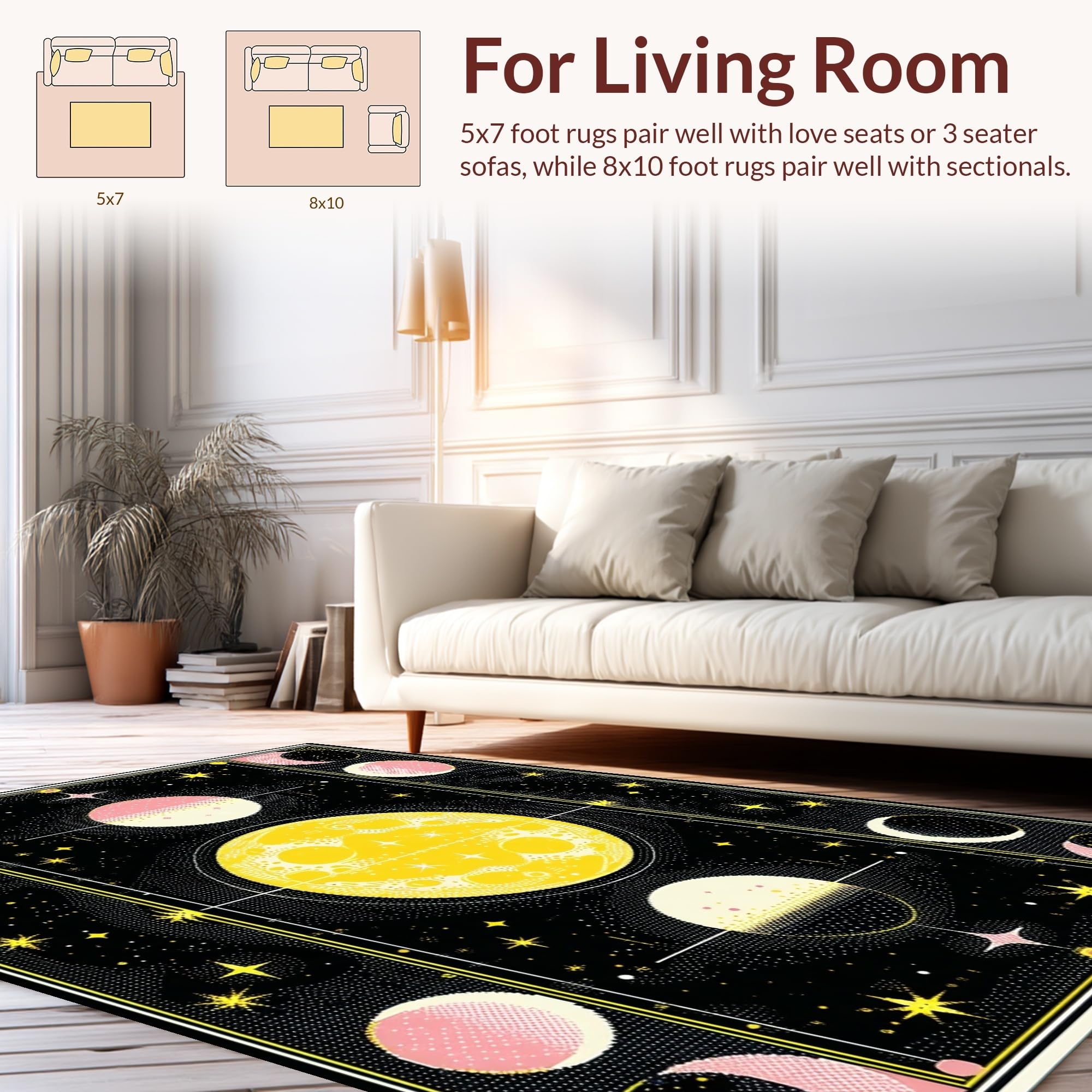 Ultra Soft Area Rug, Non Slip, Stain Resistant, Washable Area Rugs for Living Room, Bedroom, Eclectic Celestial Floral Motif(Black) Overview: