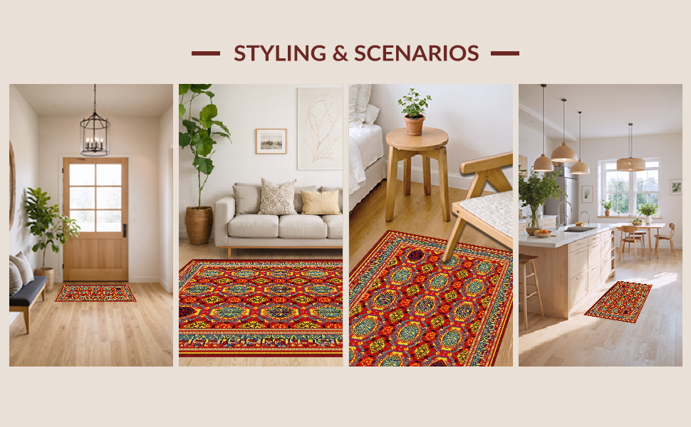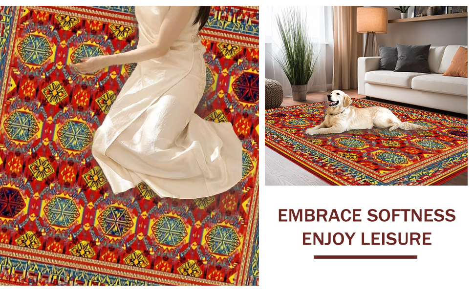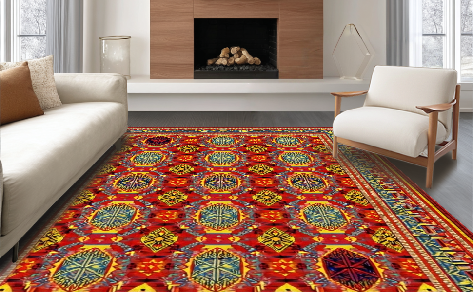 Ultra Soft Area Rug, Non Slip, Stain Resistant, Washable Area Rugs for Living Room, Bedroom, Eclectic Color Splash Tapestry Look(Red) Overview: