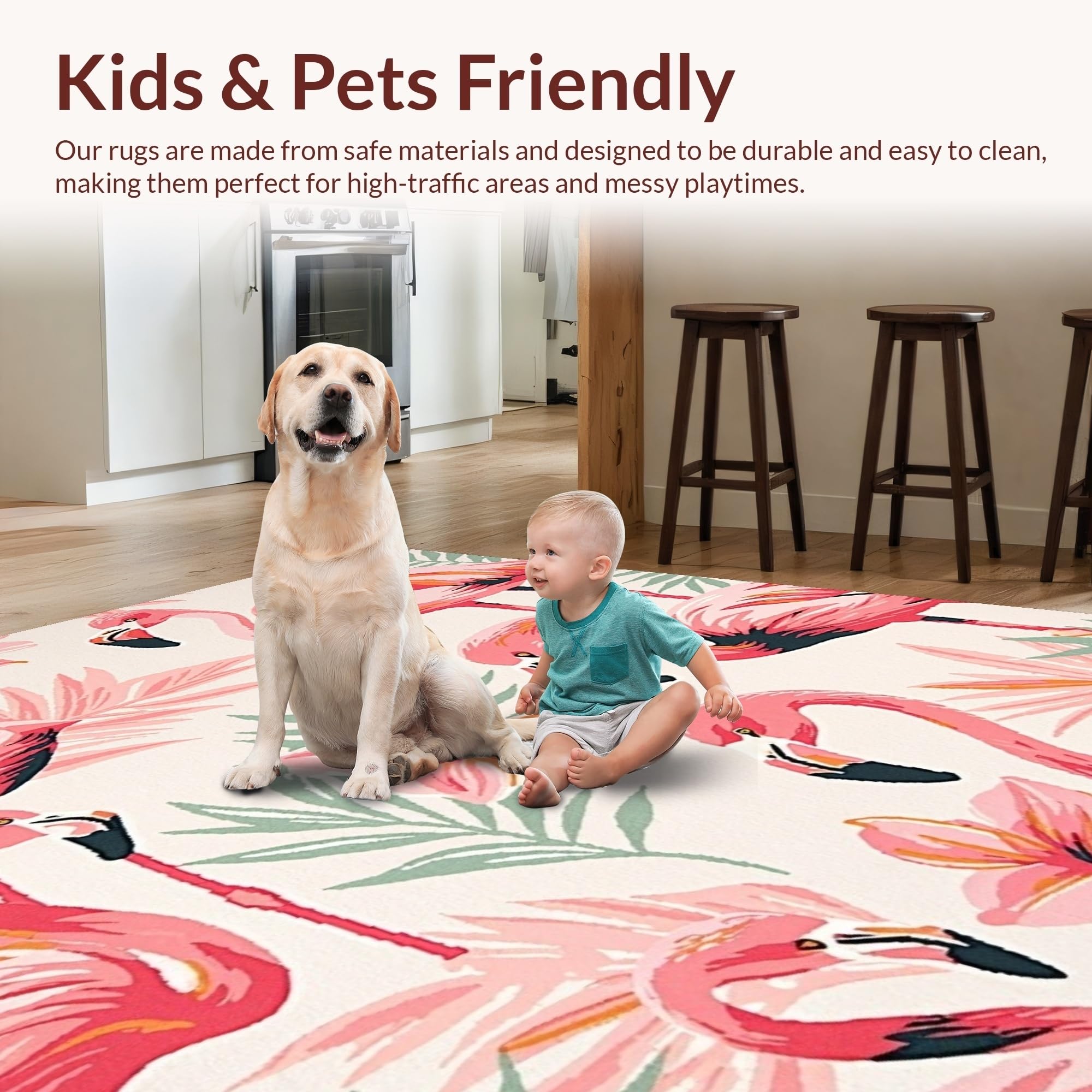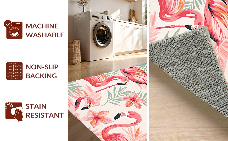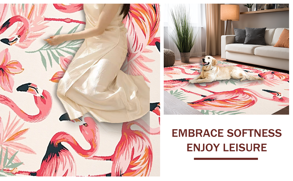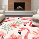 Ultra Soft Area Rug, Non Slip, Stain Resistant, Washable Area Rugs for Living Room, Bedroom, Eclectic Colorful Avian Artwork(Pink) Overview: