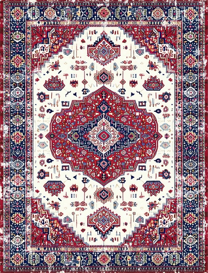 Ultra Soft Area Rug, Non Slip, Stain Resistant, Washable Area Rugs for Living Room, Bedroom, Eclectic Colorful Circular Motif(White) Overview: