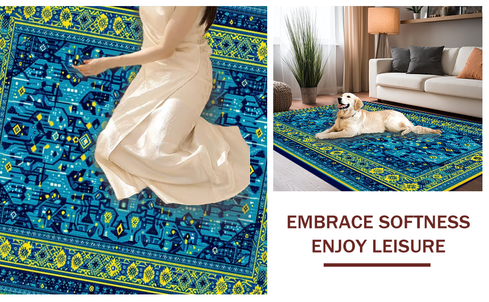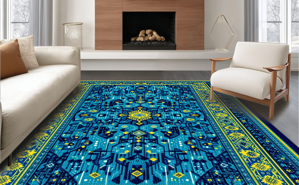 Ultra Soft Area Rug, Non Slip, Stain Resistant, Washable Area Rugs for Living Room, Bedroom, Eclectic Colorful Ethereal Swirls(Blue) Overview: