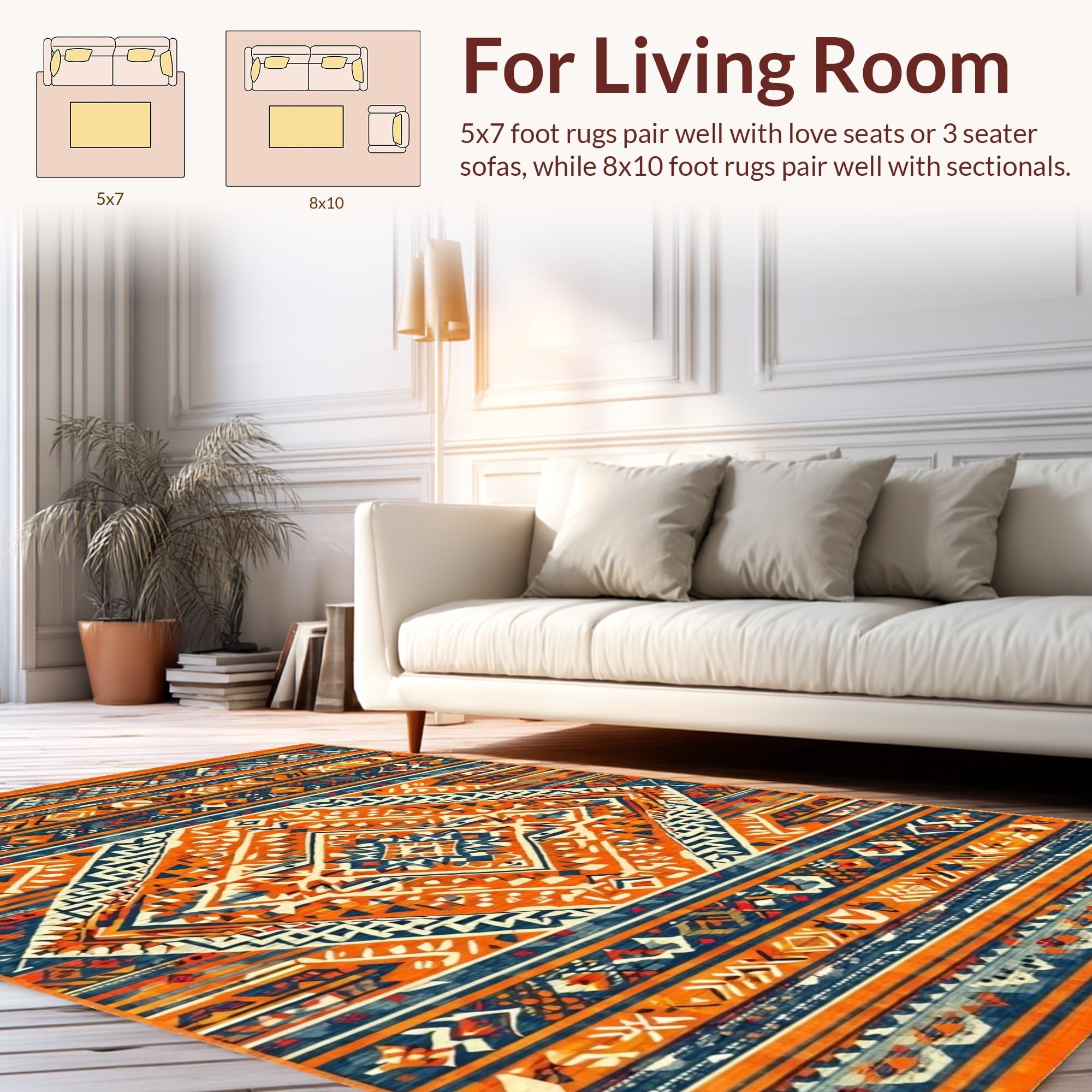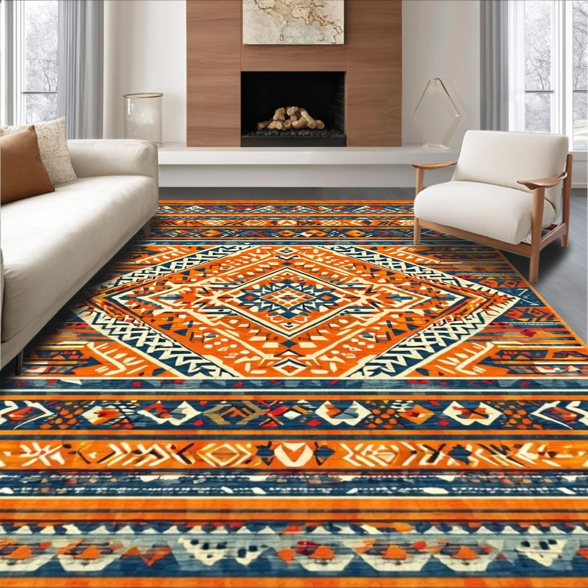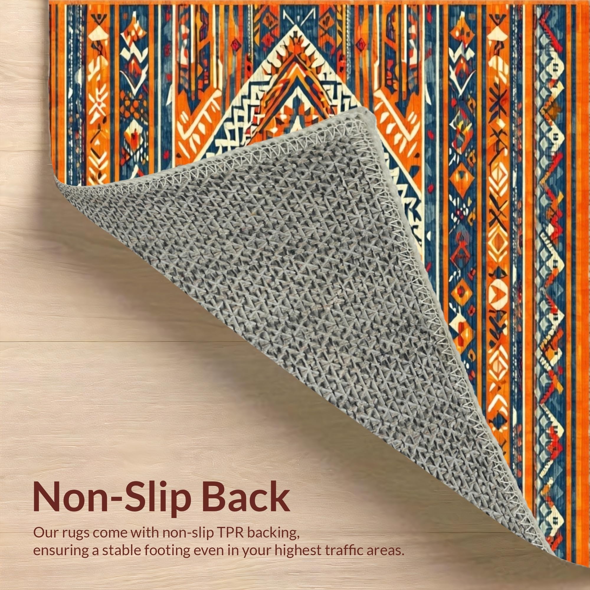 Ultra Soft Area Rug, Non Slip, Stain Resistant, Washable Area Rugs for Living Room, Bedroom, Eclectic Colorful Geometric Motif(Orange) Overview: