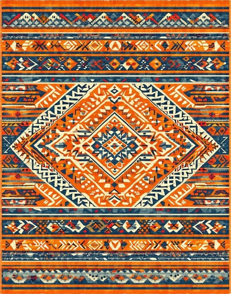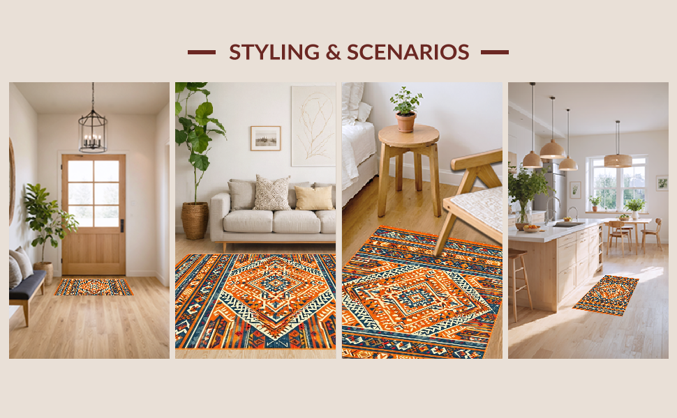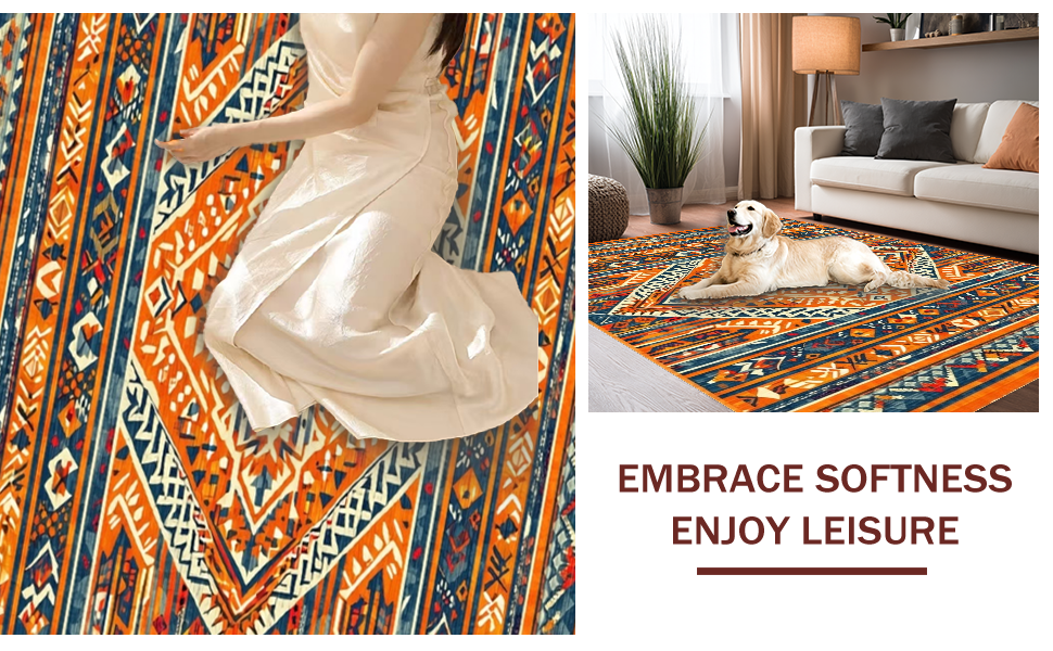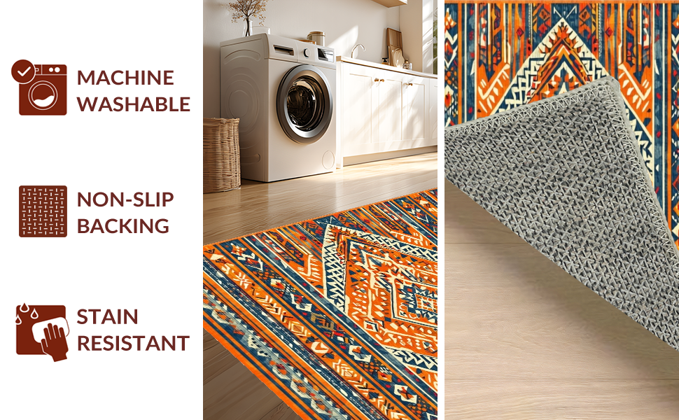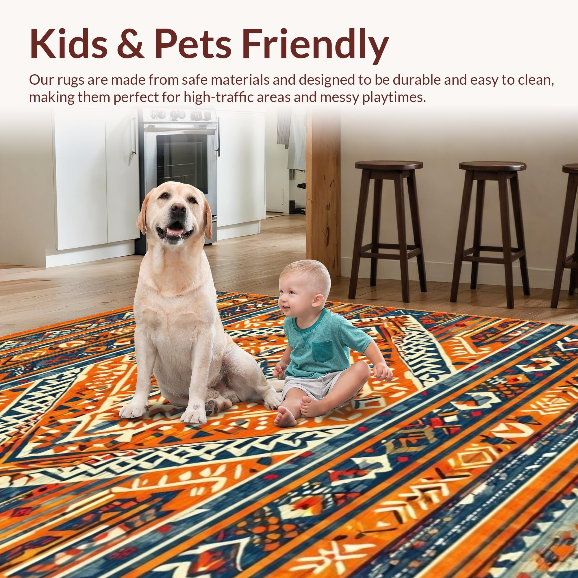 Ultra Soft Area Rug, Non Slip, Stain Resistant, Washable Area Rugs for Living Room, Bedroom, Eclectic Colorful Geometric Motif(Orange) Overview: