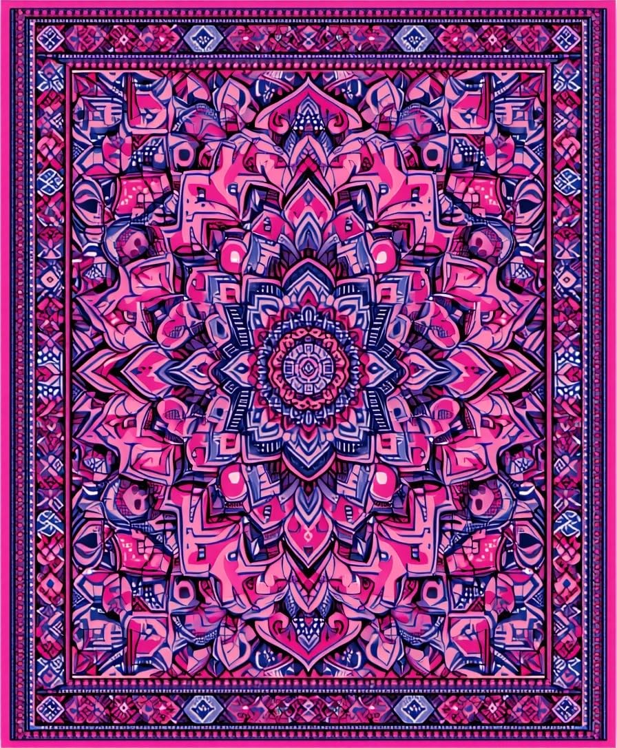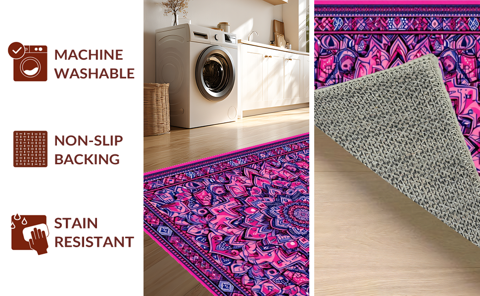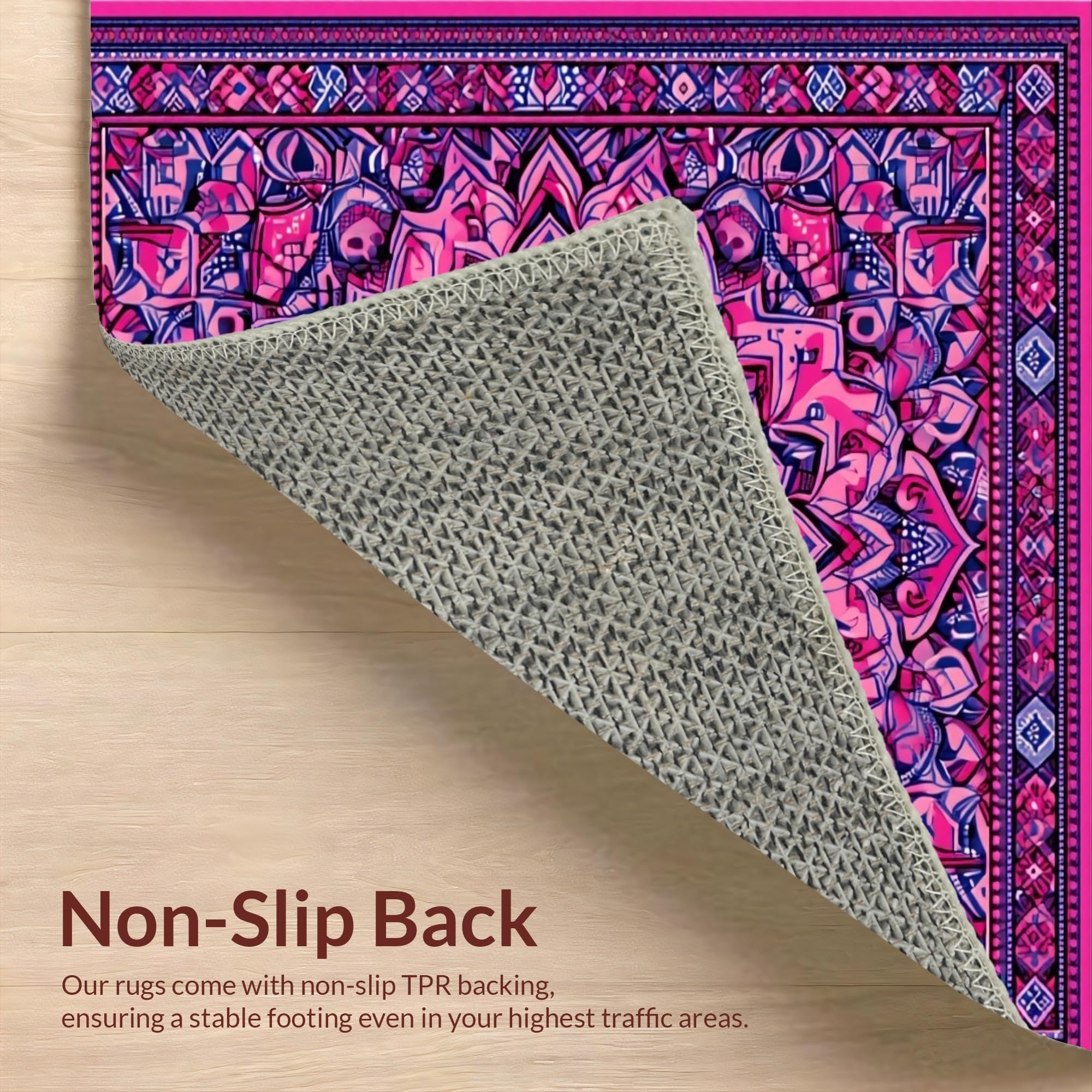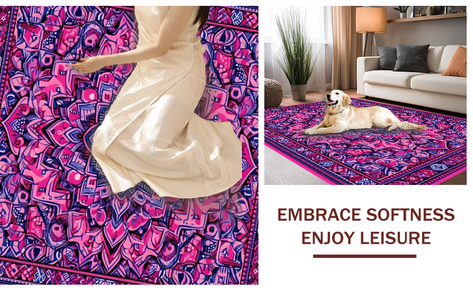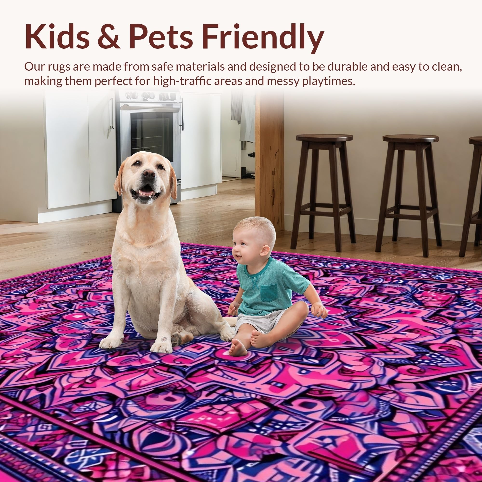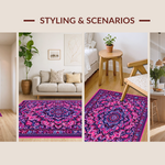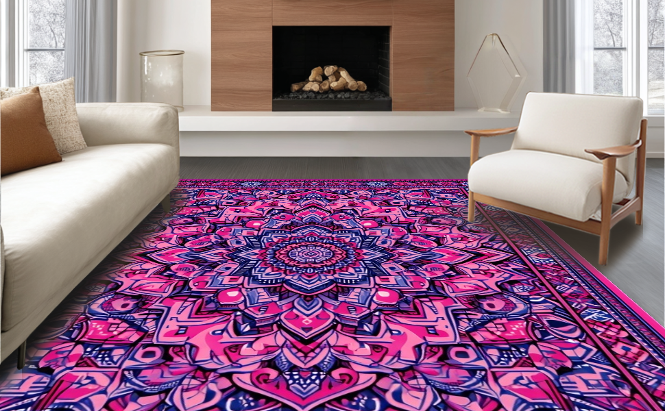 Ultra Soft Area Rug, Non Slip, Stain Resistant, Washable Area Rugs for Living Room, Bedroom, Eclectic Colorful Medallion Style(Pink) Overview: