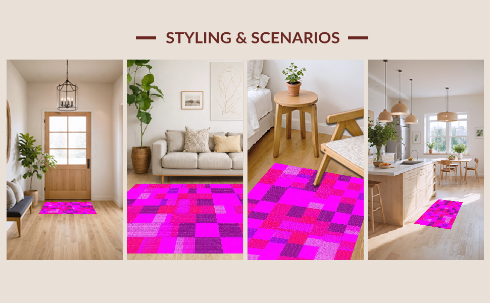 Ultra Soft Area Rug, Non Slip, Stain Resistant, Washable Area Rugs for Living Room, Bedroom, Eclectic Colorful Patterned Creativity(Pink) Overview: