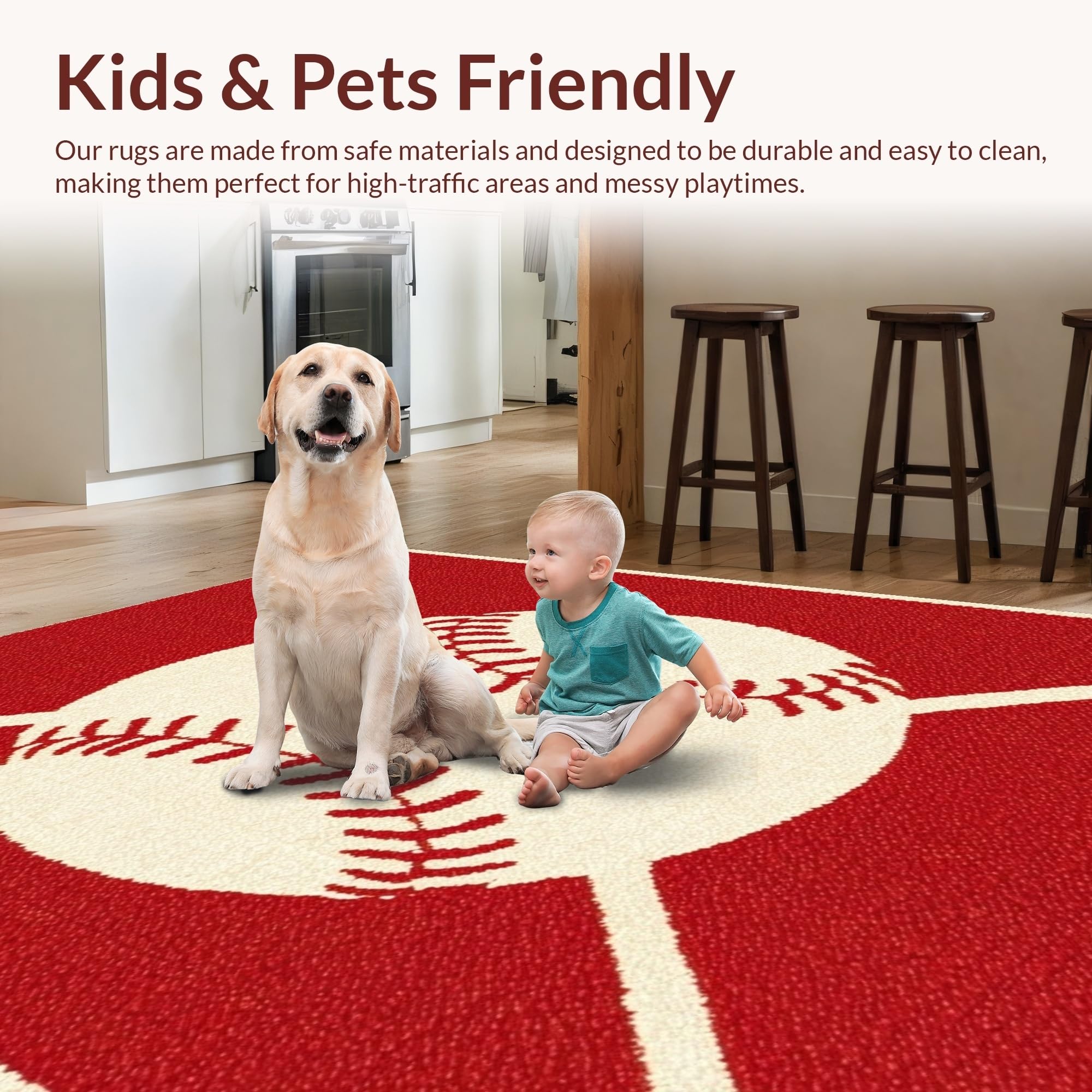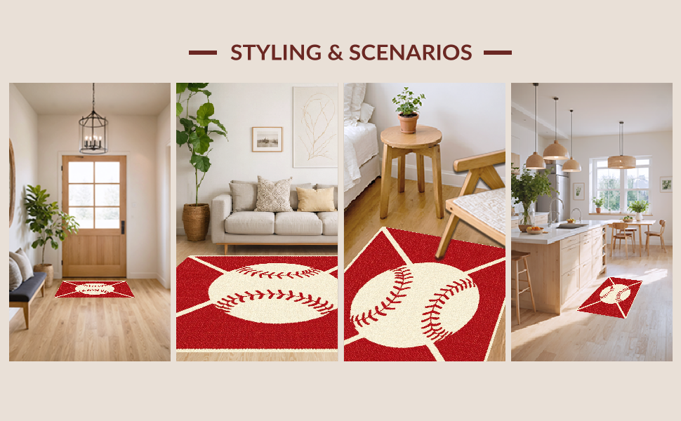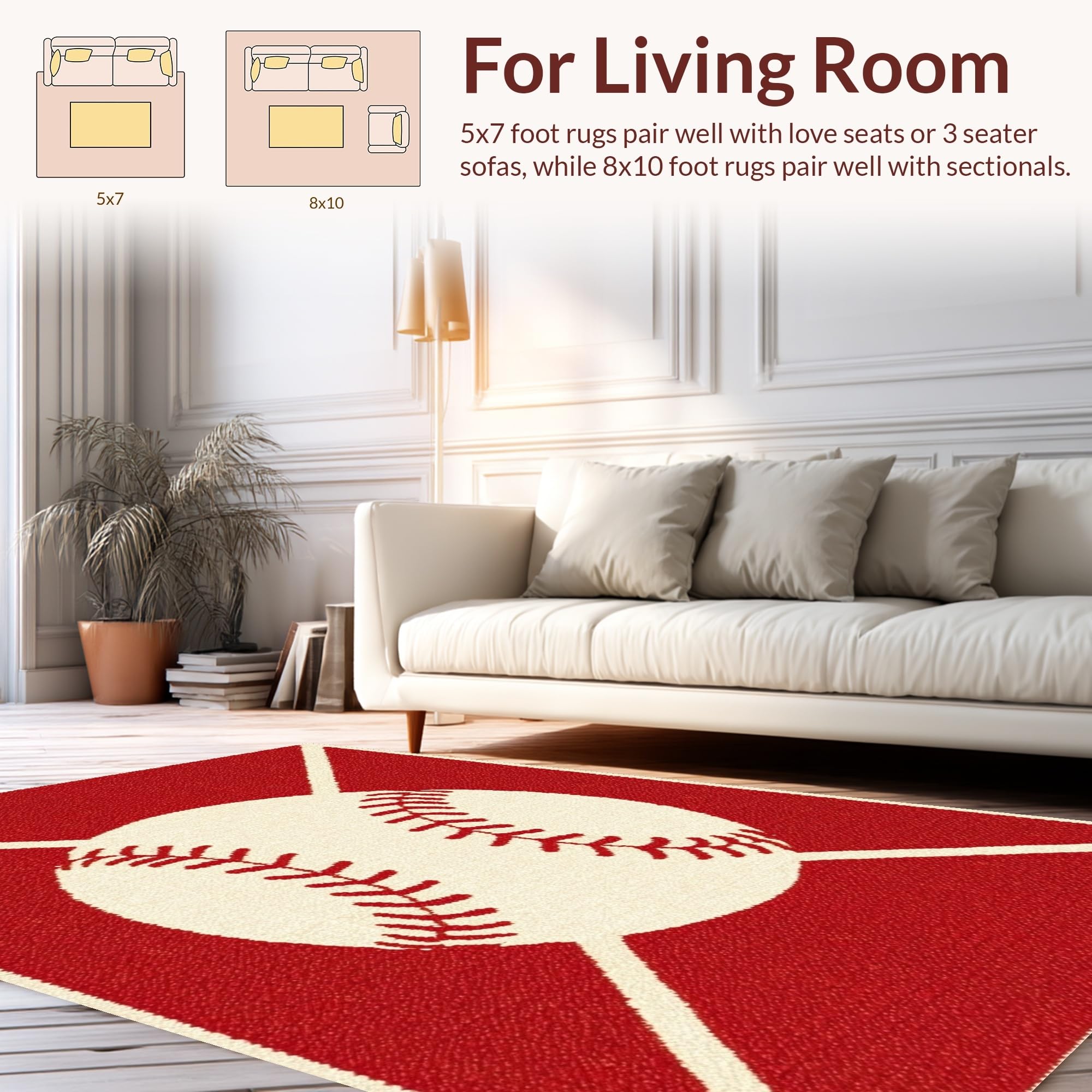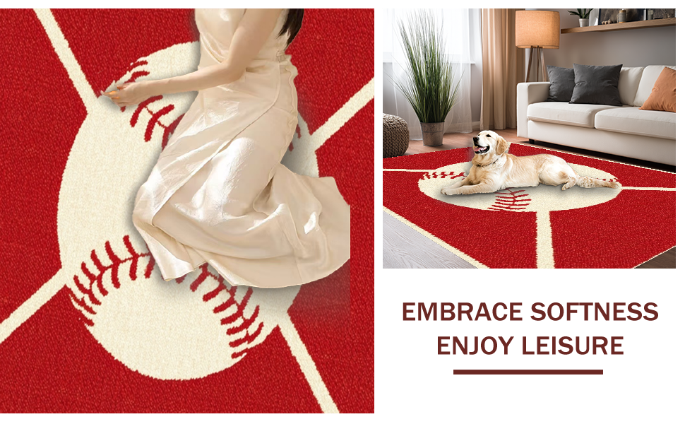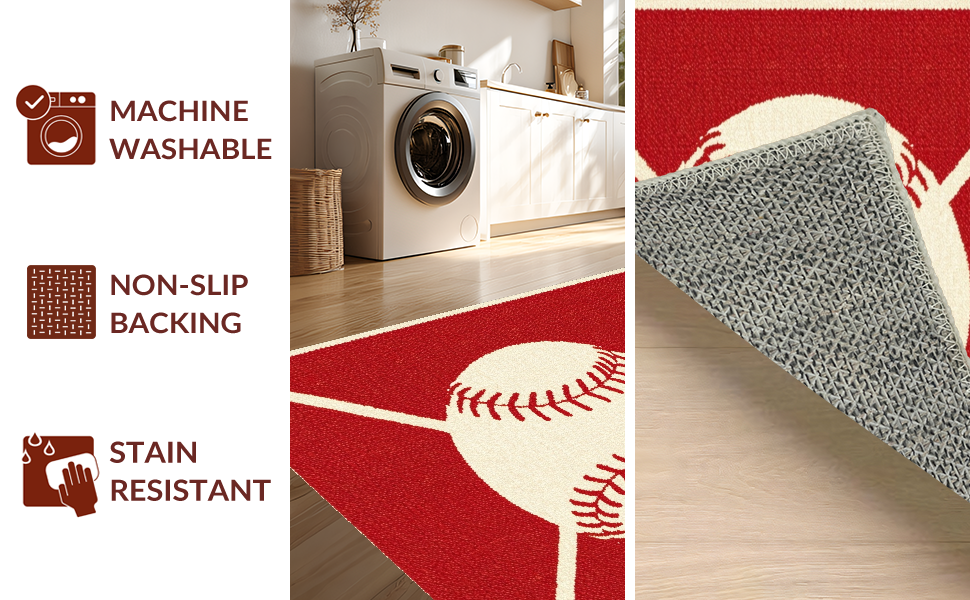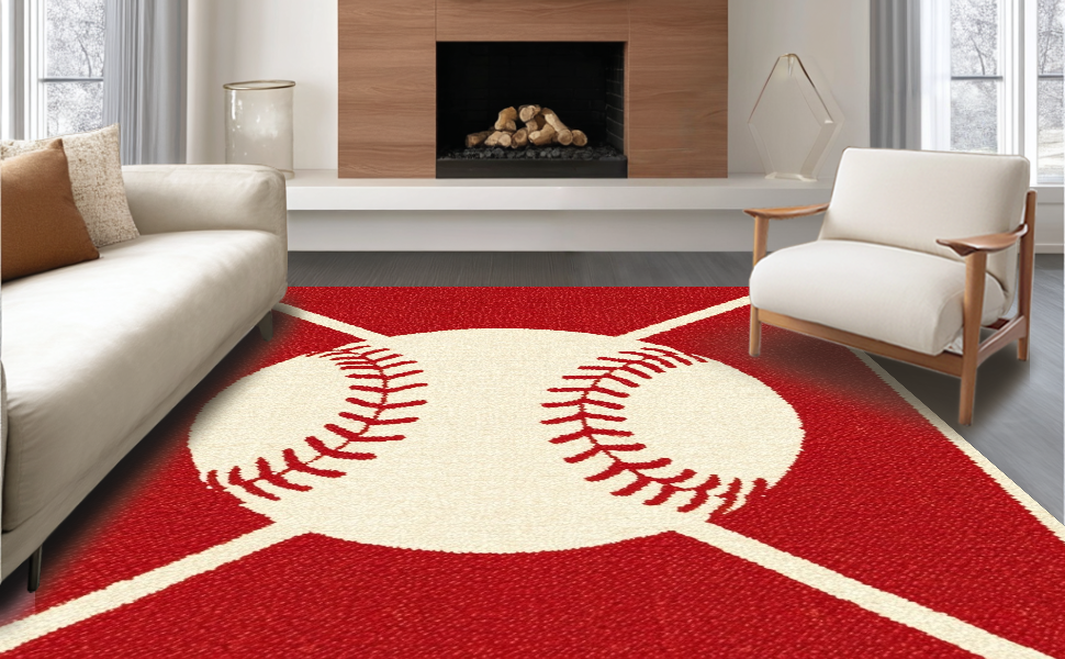 Ultra Soft Area Rug, Non Slip, Stain Resistant, Washable Area Rugs for Living Room, Bedroom, Eclectic Colorful Sports Emblem(Red) Overview: