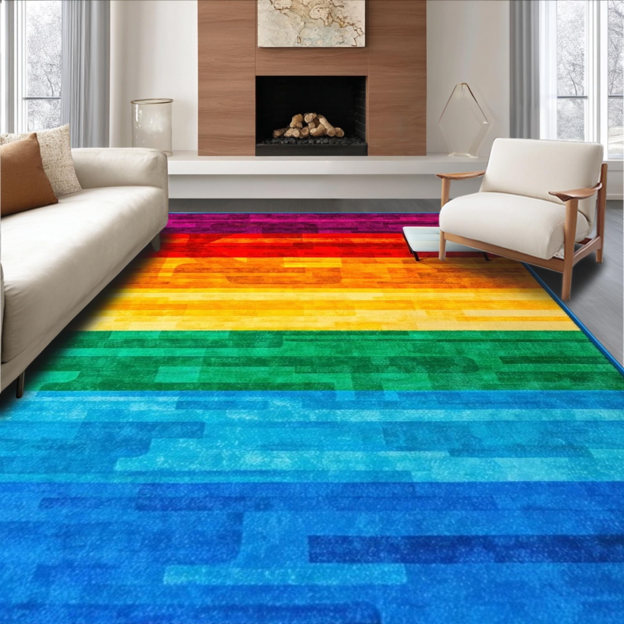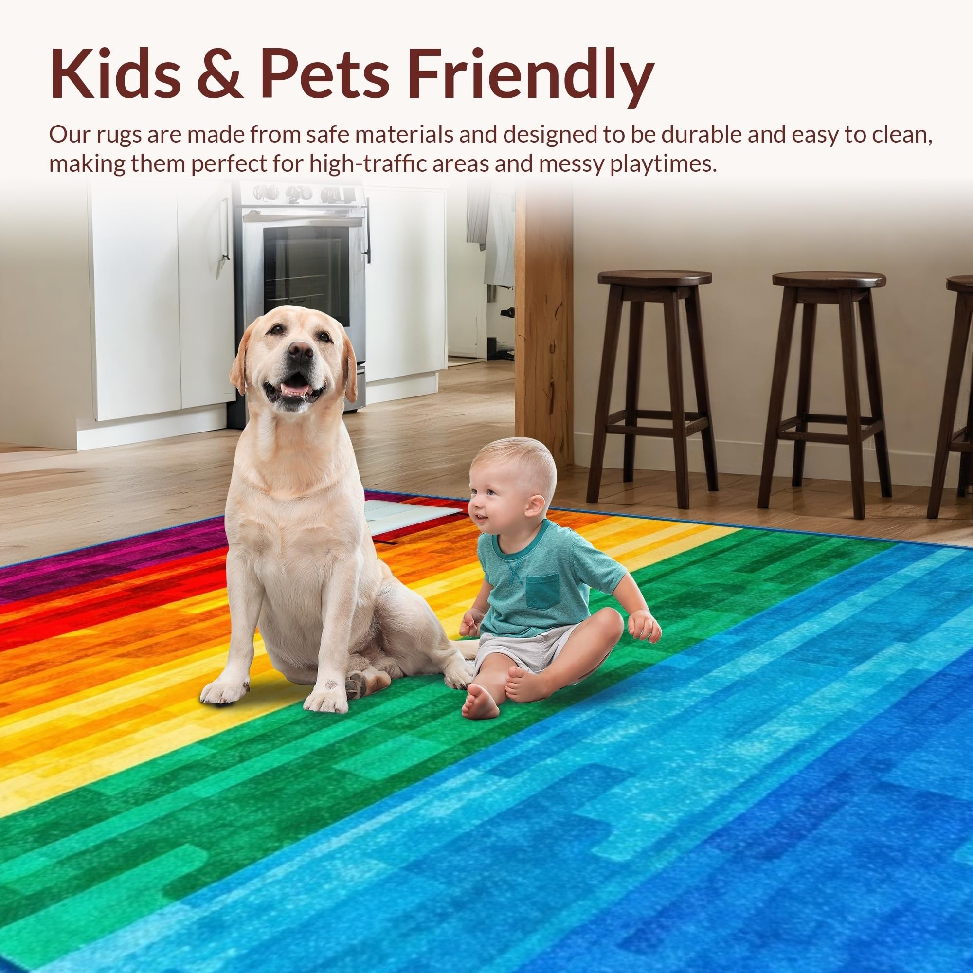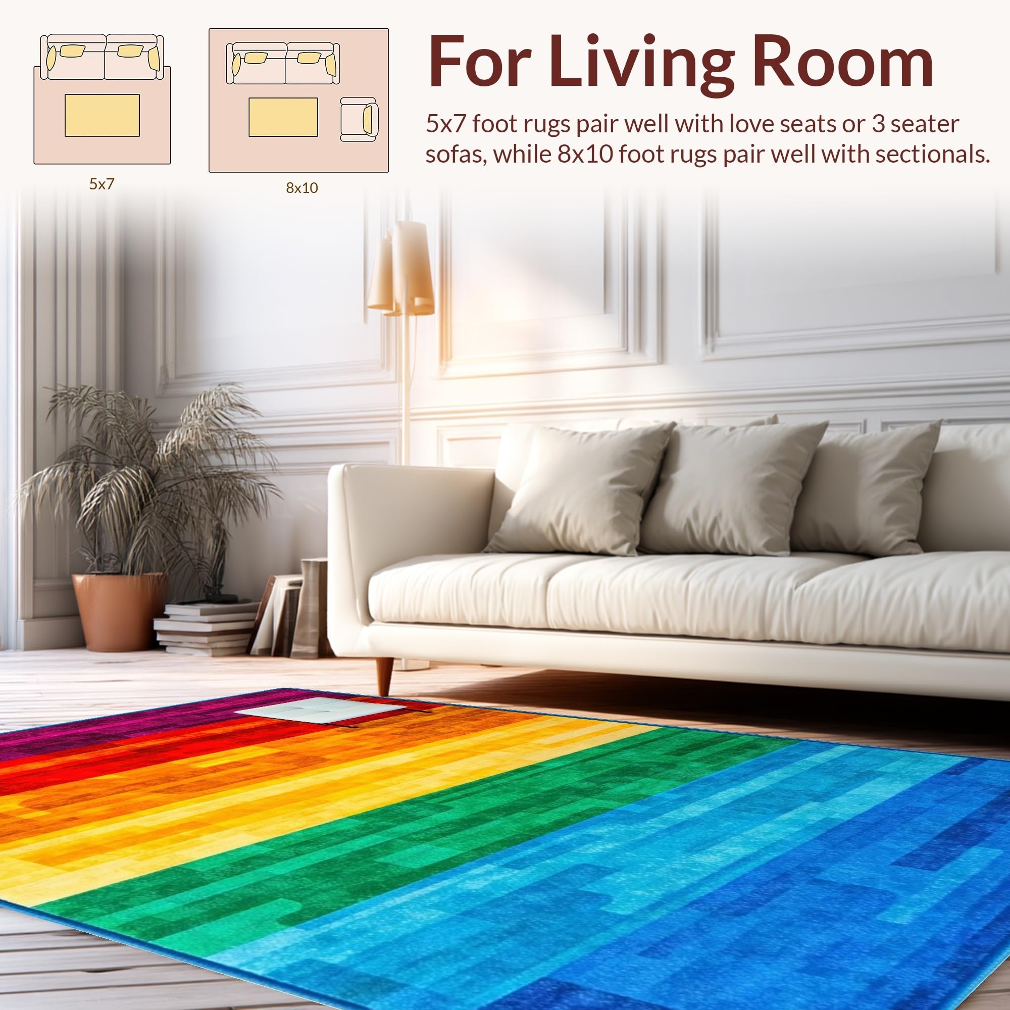 Ultra Soft Area Rug, Non Slip, Stain Resistant, Washable Area Rugs for Living Room, Bedroom, Eclectic Colorful Typographic Style(Red) Overview: