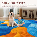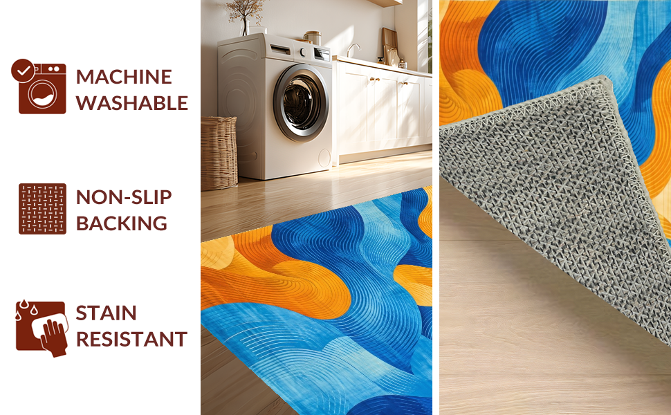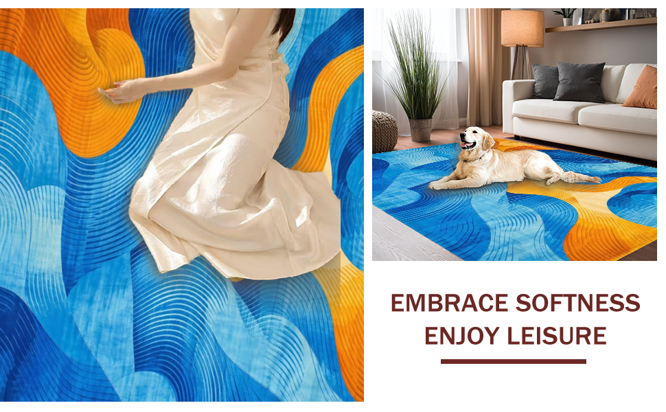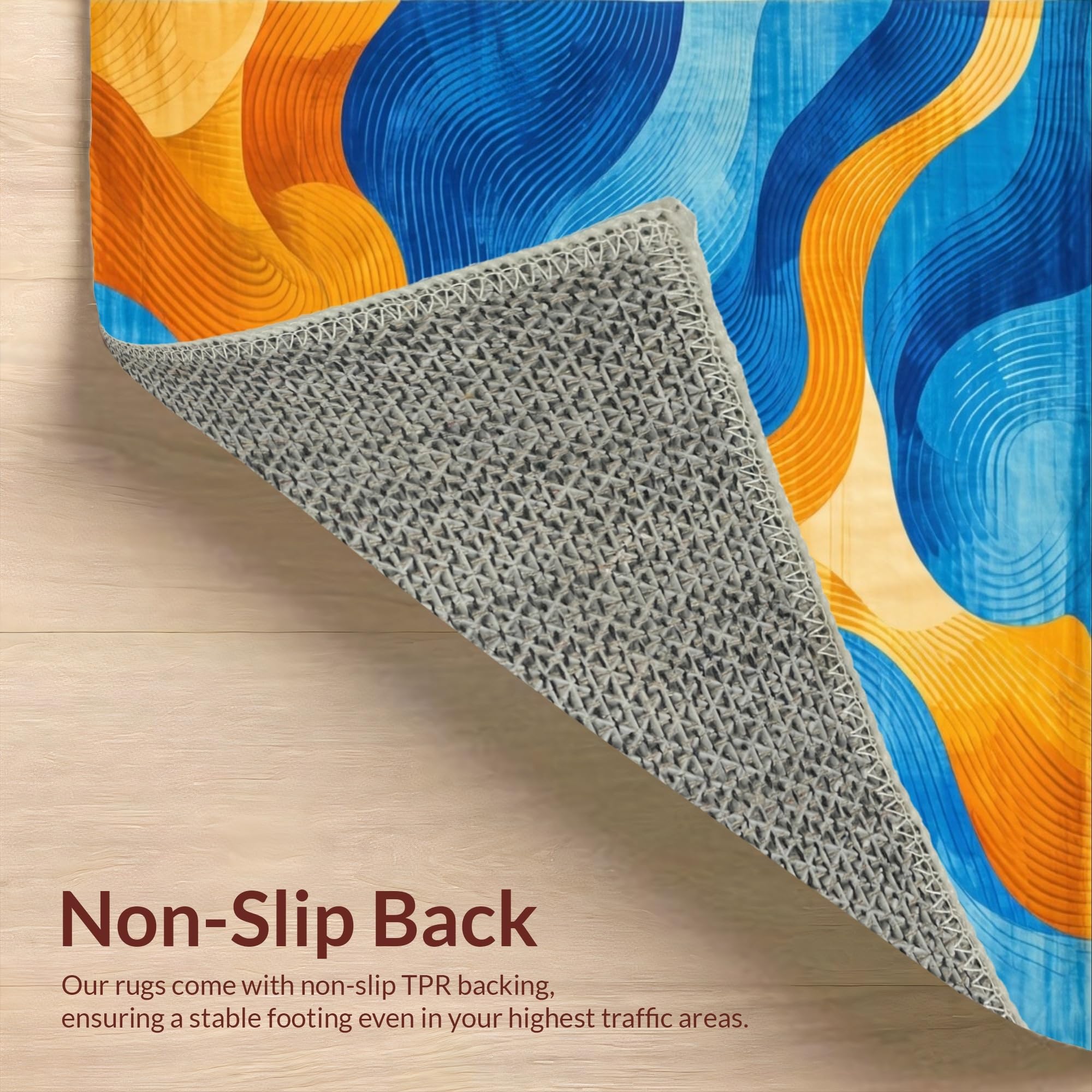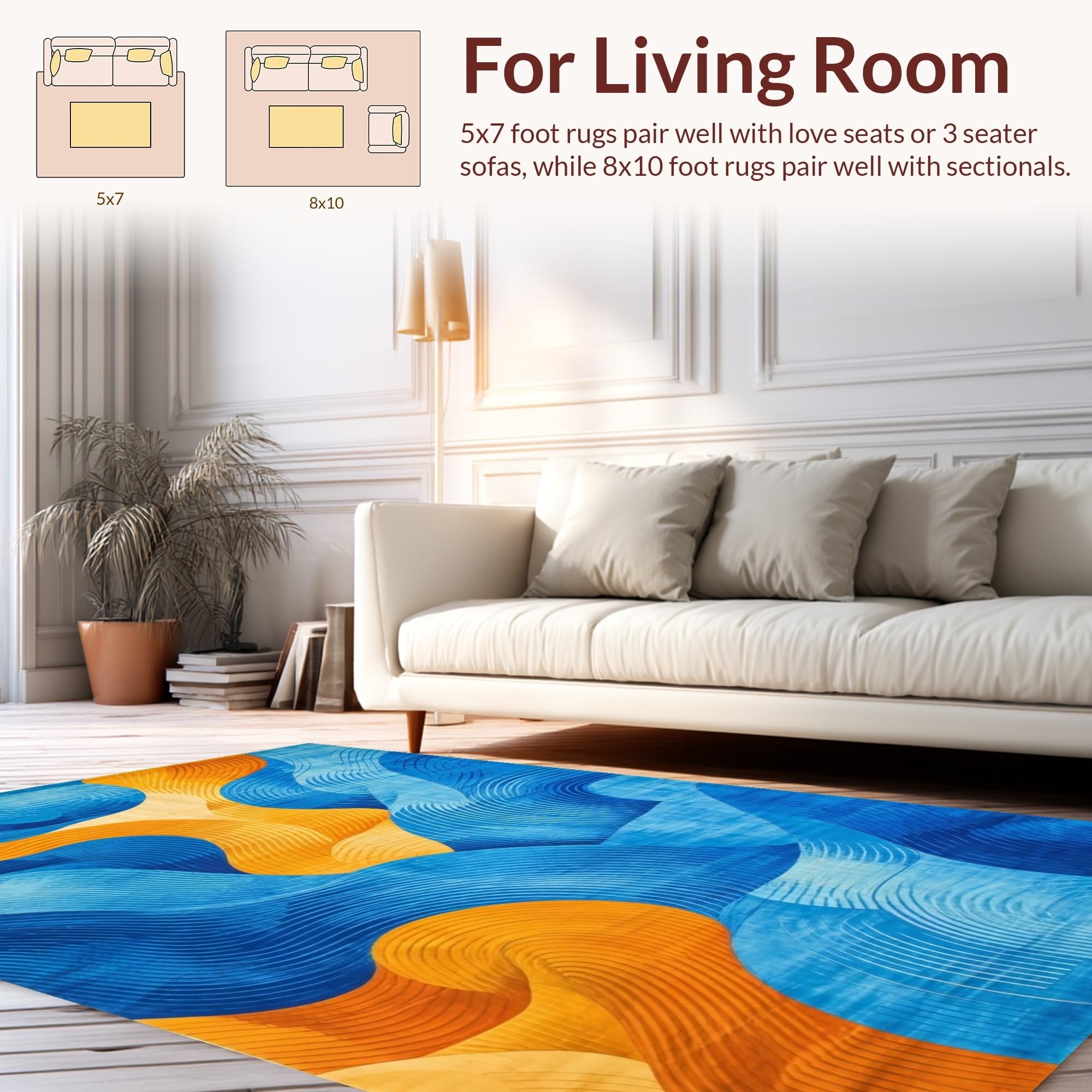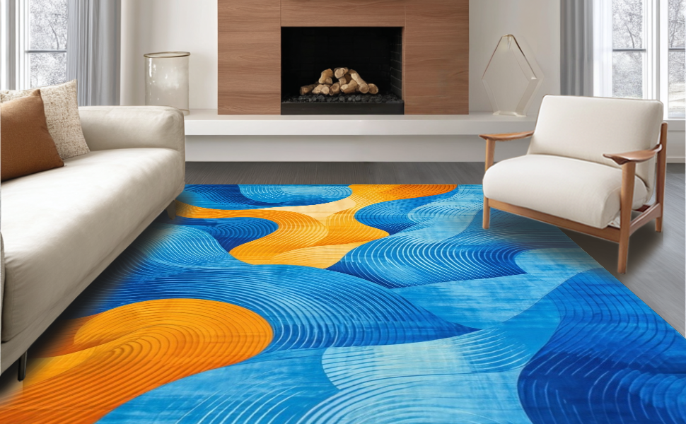Ultra Soft Area Rug, Non Slip, Stain Resistant, Washable Area Rugs for Living Room, Bedroom, Eclectic Colorful Wave Motif(Blue) Overview: