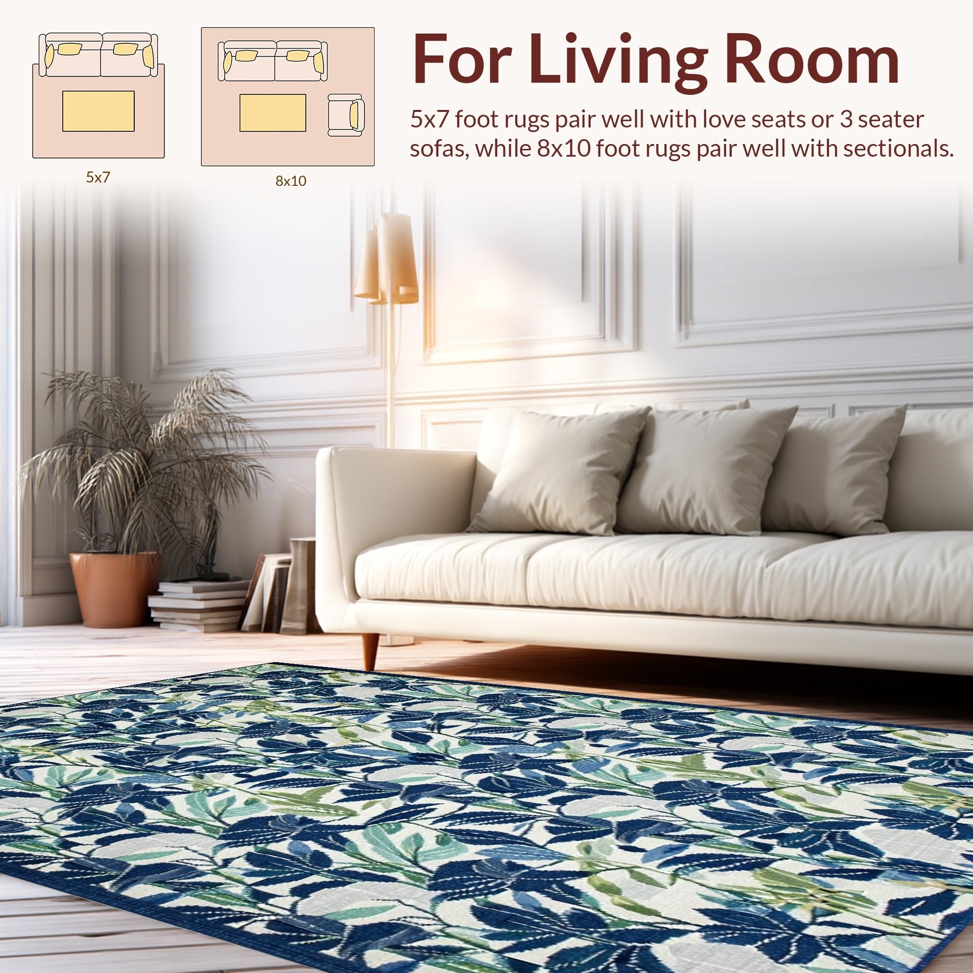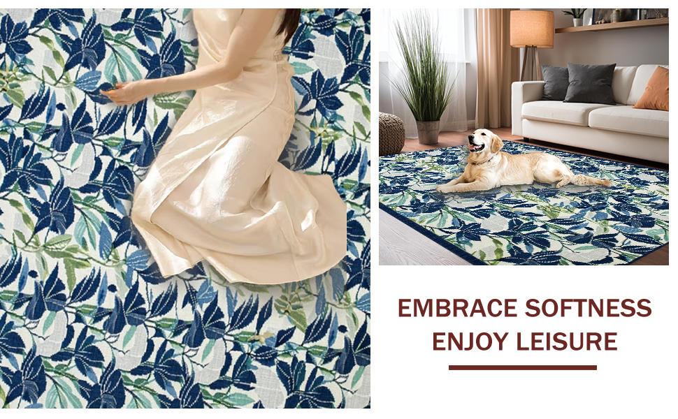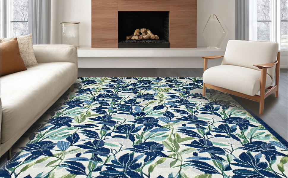 Ultra Soft Area Rug, Non Slip, Stain Resistant, Washable Area Rugs for Living Room, Bedroom, Eclectic Contemporary Bloom Design(Blue) Overview: